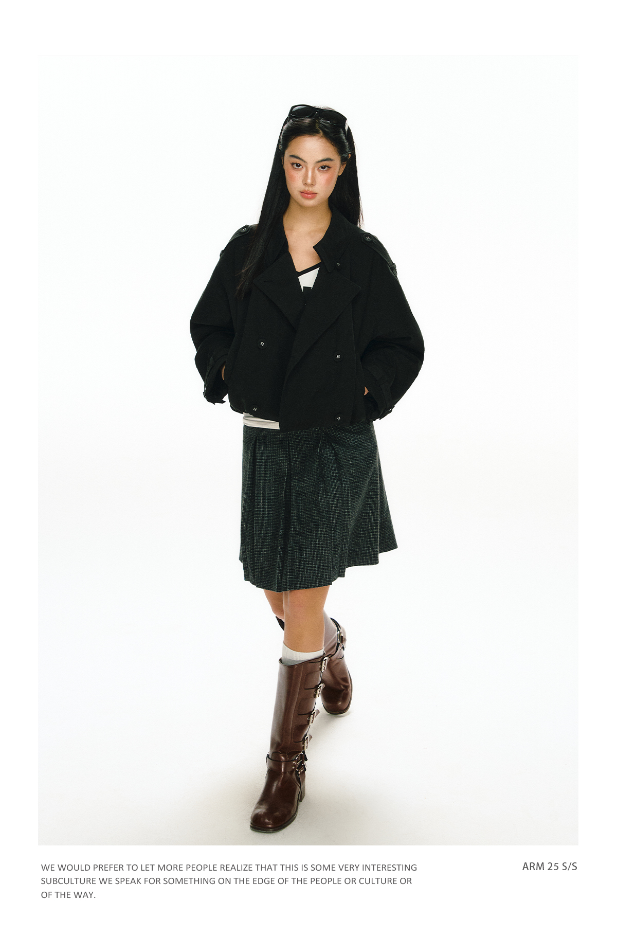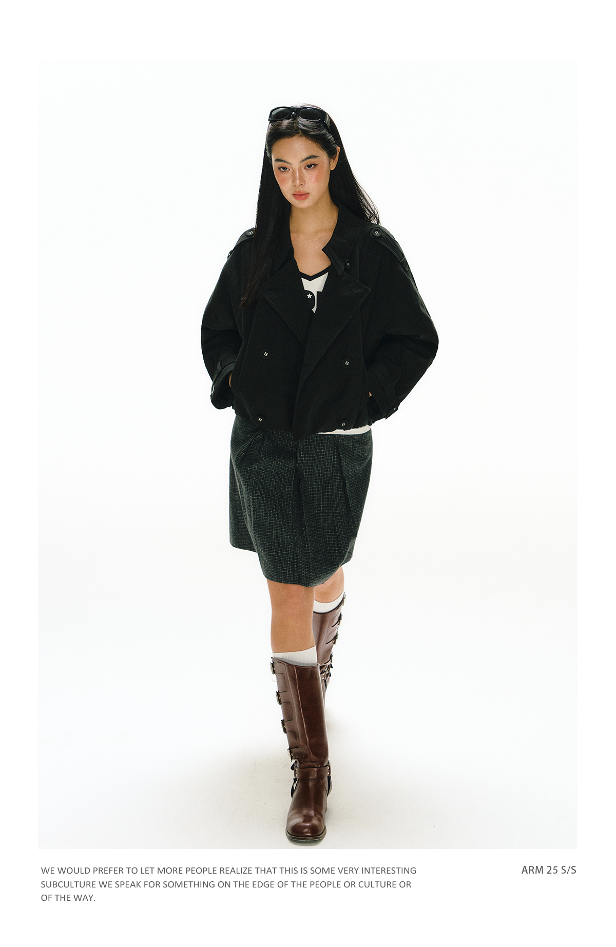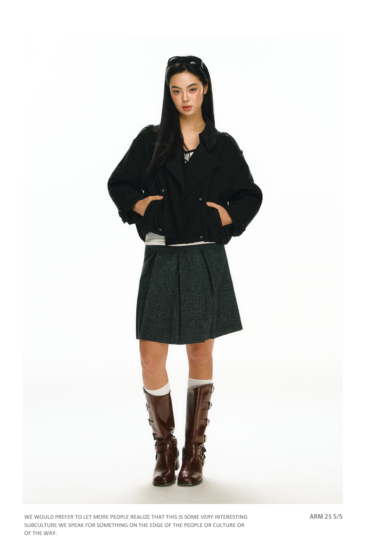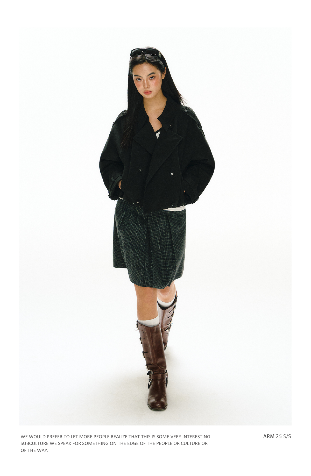 Ariseism 美式复古设计感黑色大衣式夹棉外套女秋冬新款修身上衣