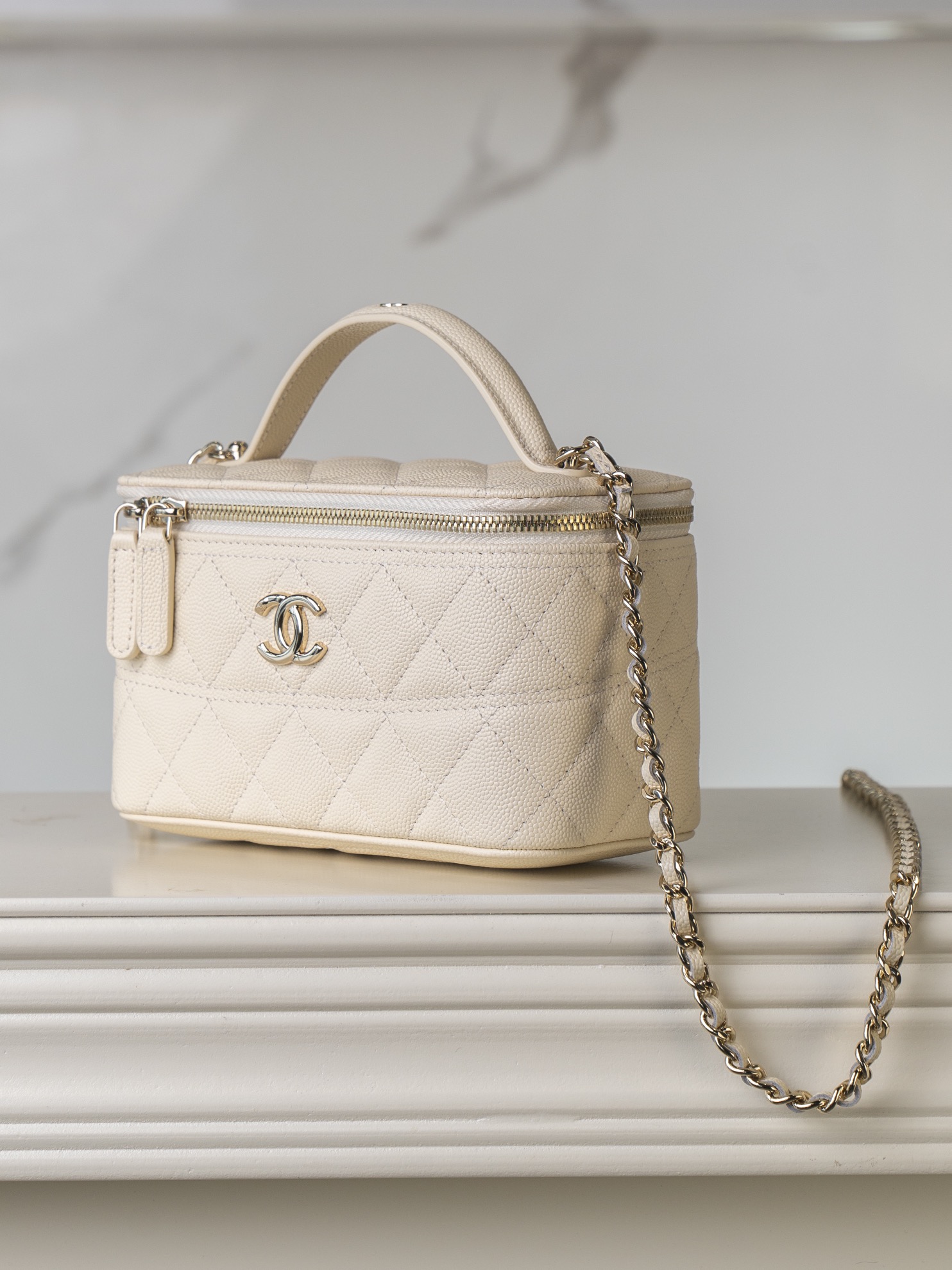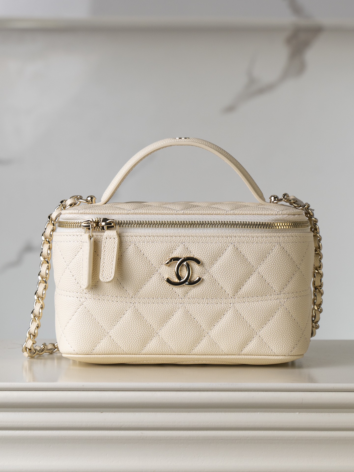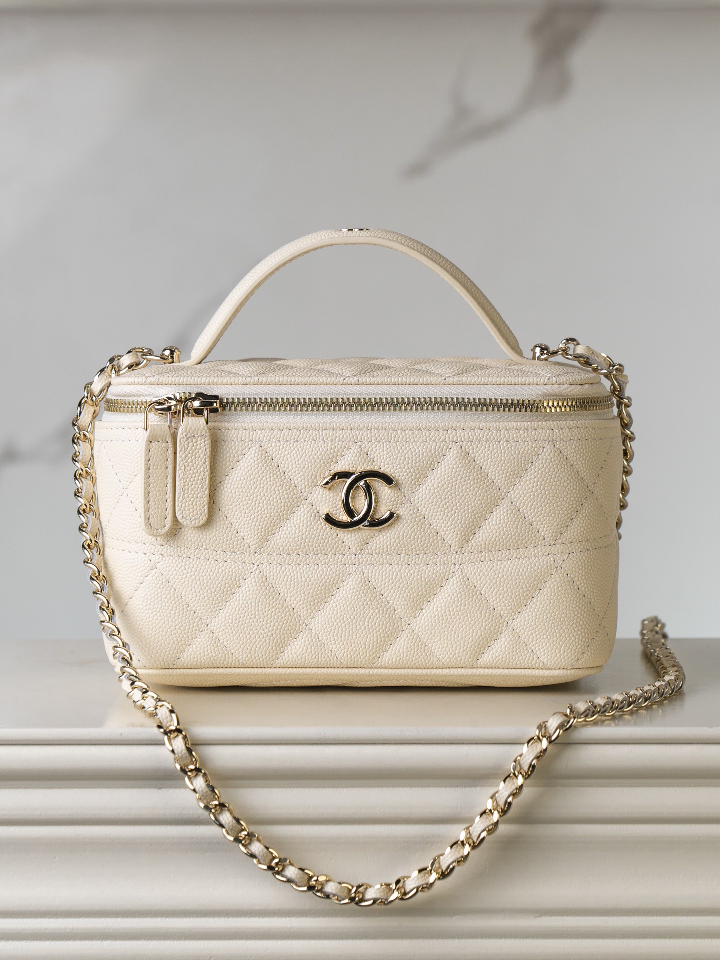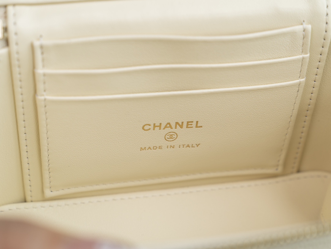 𝐂𝐡𝐚𝐧𝐞𝐥 𝟐𝟓𝐜 新款 手柄盒子包 荔枝牛 方盒子的造型、搭配标志性双C Logo、简约大气手柄处还有小 𝐥𝐨𝐠𝐨 超精致 荔枝牛皮非常抗造〰️ 搭配浅金色五金, 颜值非常抗打!可以装得下手机,🉑斜挎、手拎!颜色很柔和,如同被阳光照耀过的云朵☁️ 温柔又治愈 小tip:米白色会比纯白更耐脏哦〰️ 尺寸:𝟏𝟕𝐱𝟗.𝟓𝐱𝟖𝐜𝐦