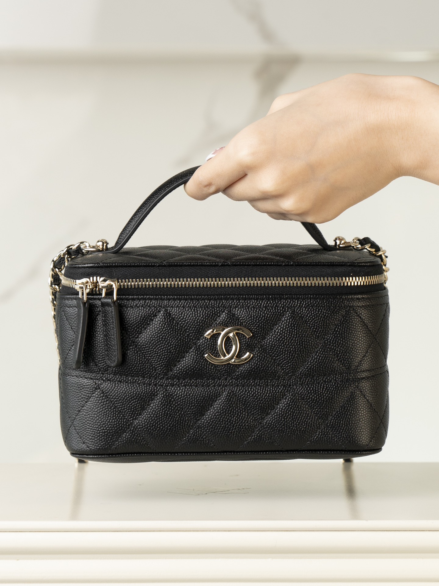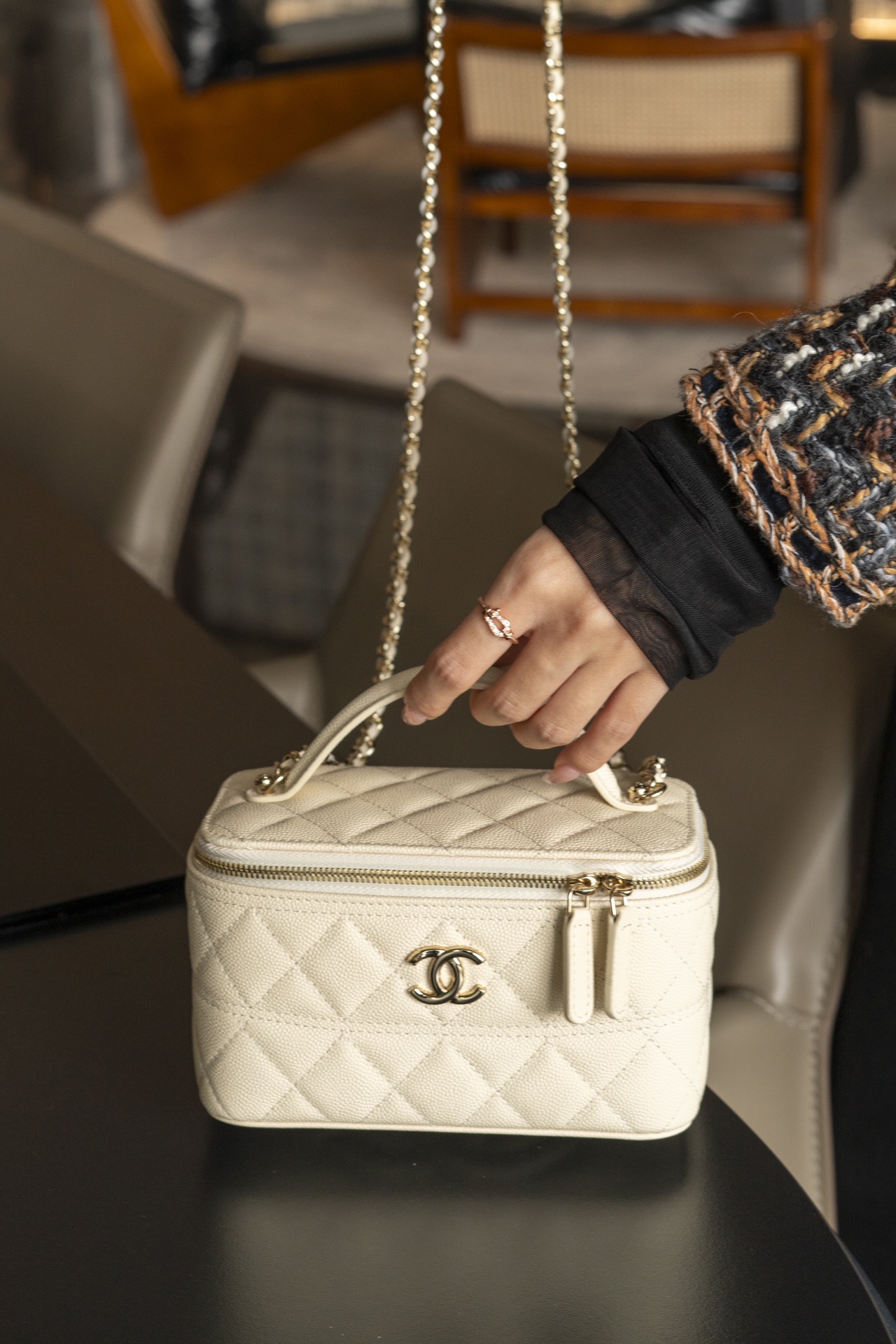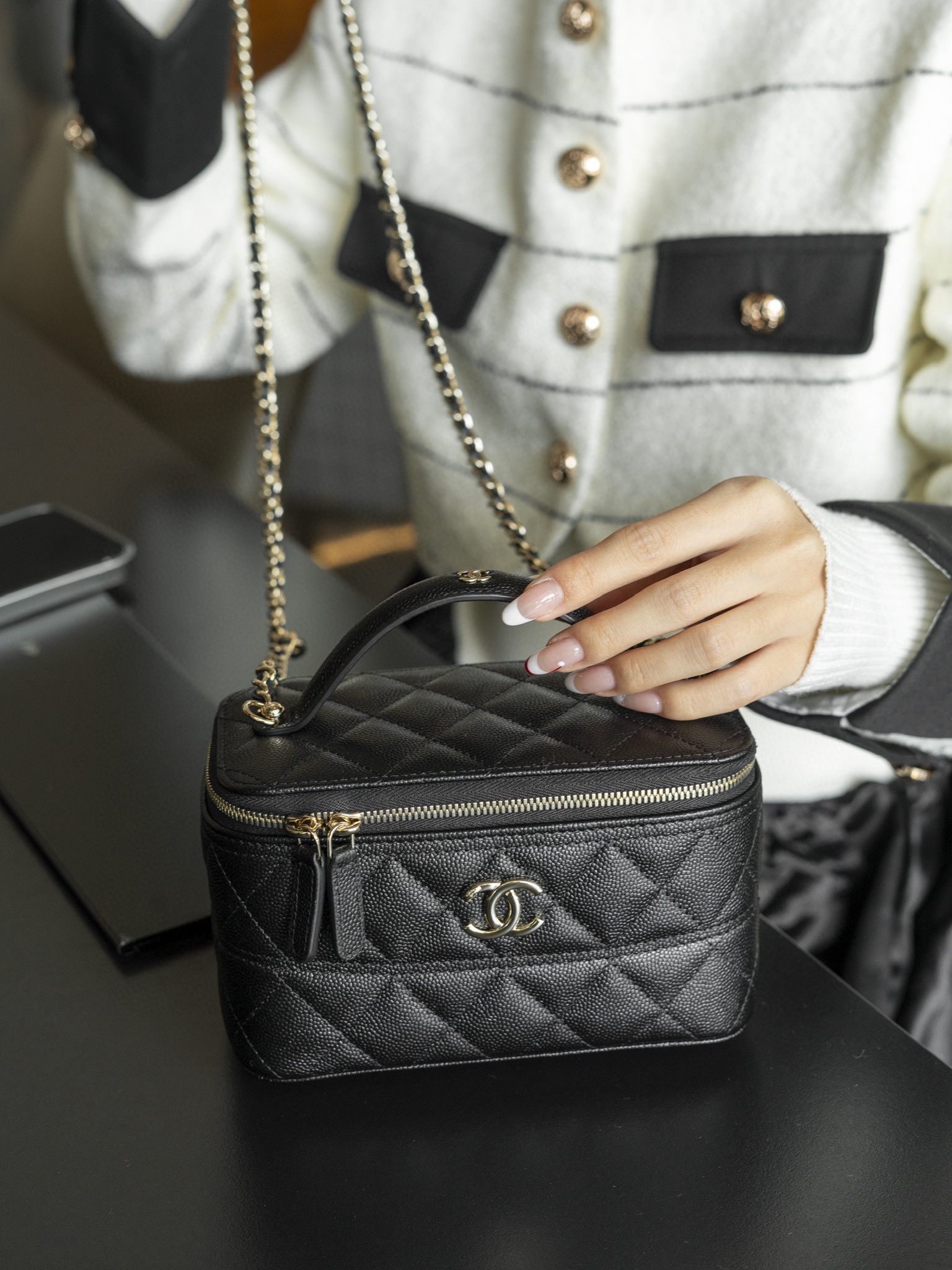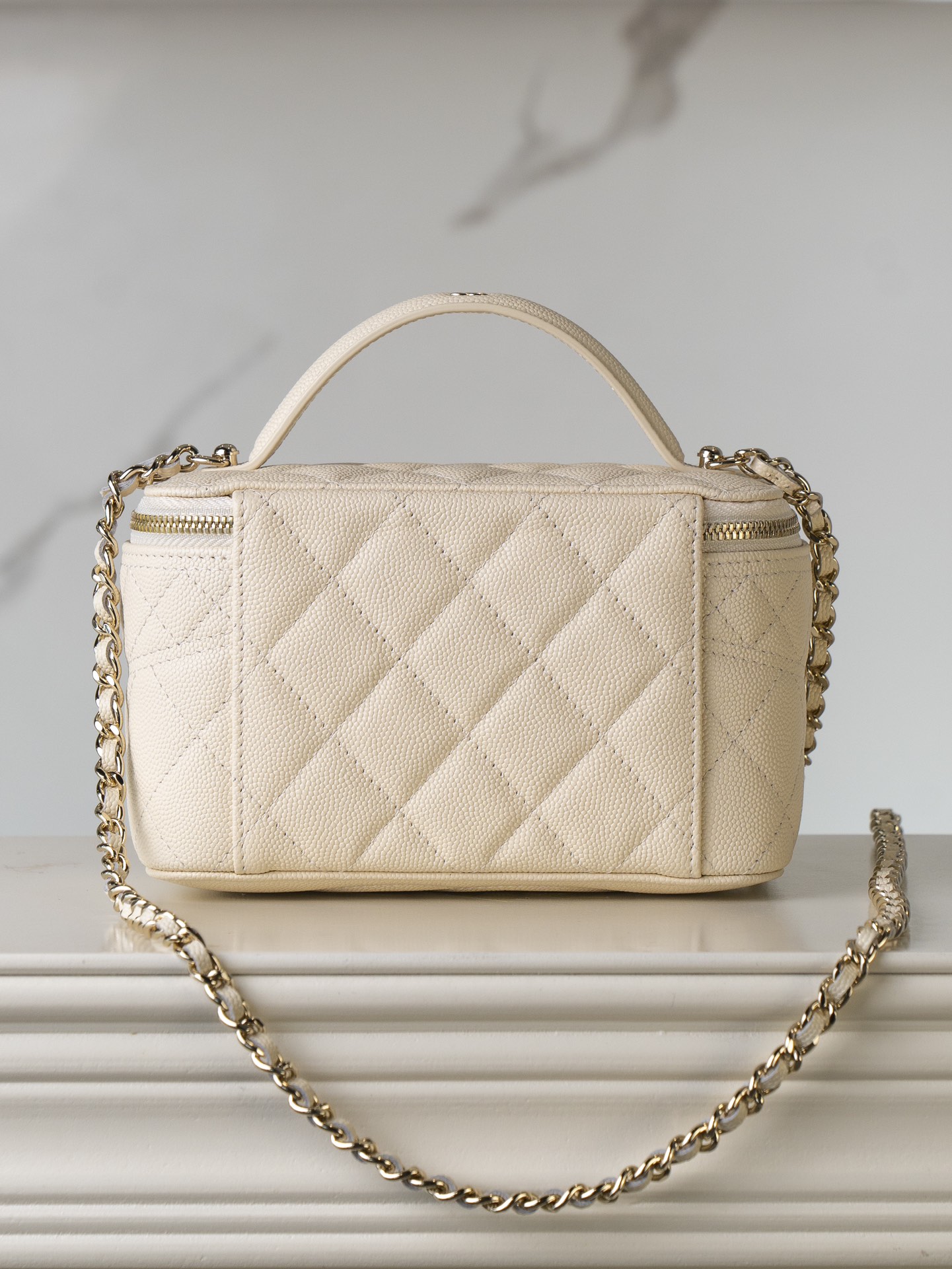 𝐂𝐡𝐚𝐧𝐞𝐥 𝟐𝟓𝐜 新款 手柄盒子包 荔枝牛 方盒子的造型、搭配标志性双C Logo、简约大气手柄处还有小 𝐥𝐨𝐠𝐨 超精致 荔枝牛皮非常抗造〰️ 搭配浅金色五金, 颜值非常抗打!可以装得下手机,🉑斜挎、手拎!颜色很柔和,如同被阳光照耀过的云朵☁️ 温柔又治愈 小tip:米白色会比纯白更耐脏哦〰️ 尺寸:𝟏𝟕𝐱𝟗.𝟓𝐱𝟖𝐜𝐦