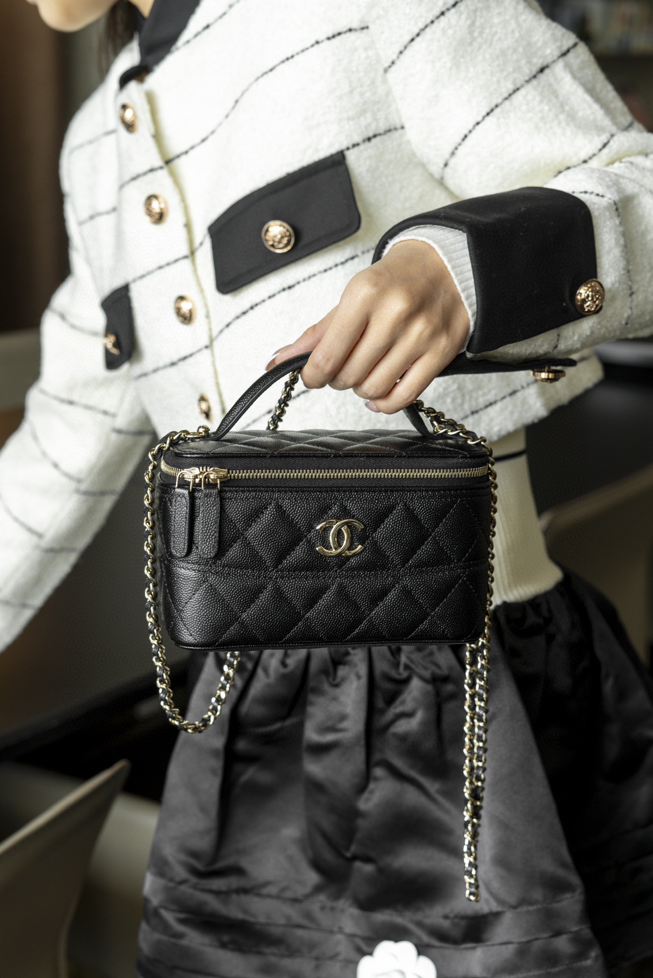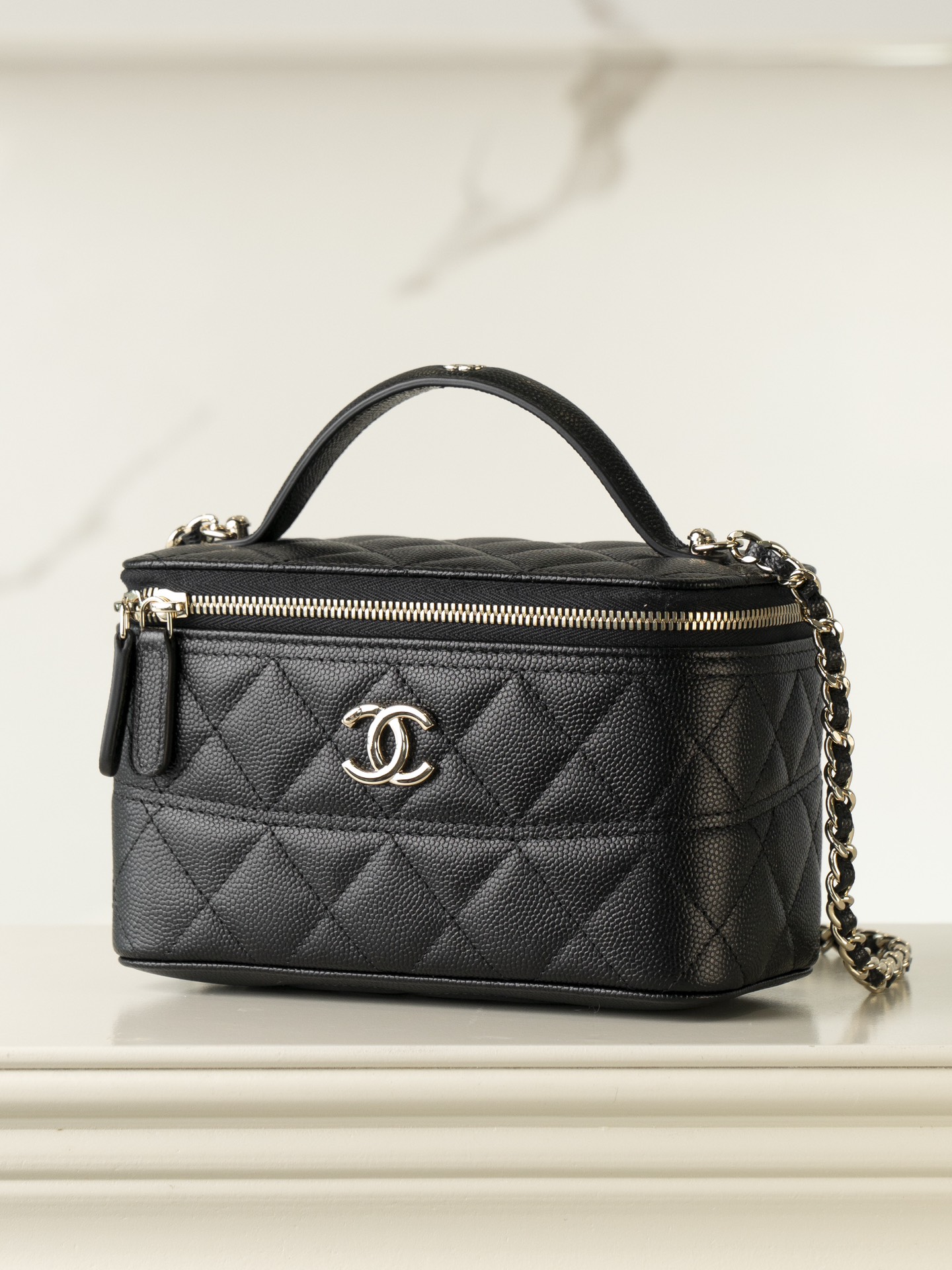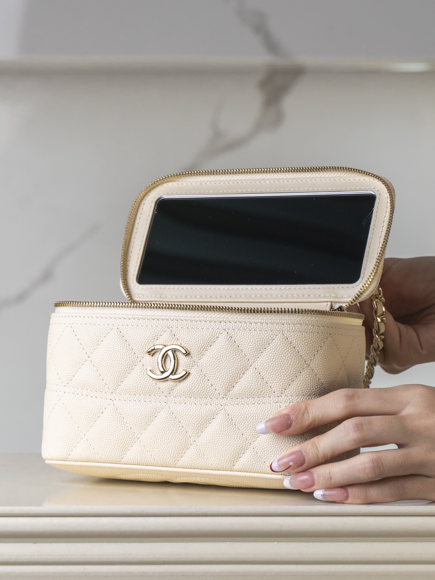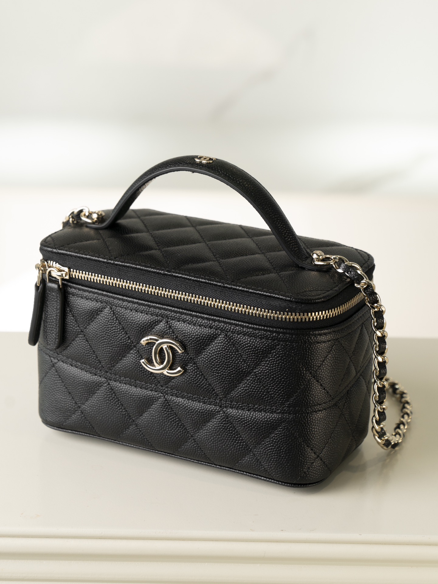 𝐂𝐡𝐚𝐧𝐞𝐥 𝟐𝟓𝐜 新款 手柄盒子包 荔枝牛 方盒子的造型、搭配标志性双C Logo、简约大气手柄处还有小 𝐥𝐨𝐠𝐨 超精致 荔枝牛皮非常抗造〰️ 搭配浅金色五金, 颜值非常抗打!可以装得下手机,🉑斜挎、手拎!颜色很柔和,如同被阳光照耀过的云朵☁️ 温柔又治愈 小tip:米白色会比纯白更耐脏哦〰️ 尺寸:𝟏𝟕𝐱𝟗.𝟓𝐱𝟖𝐜𝐦
