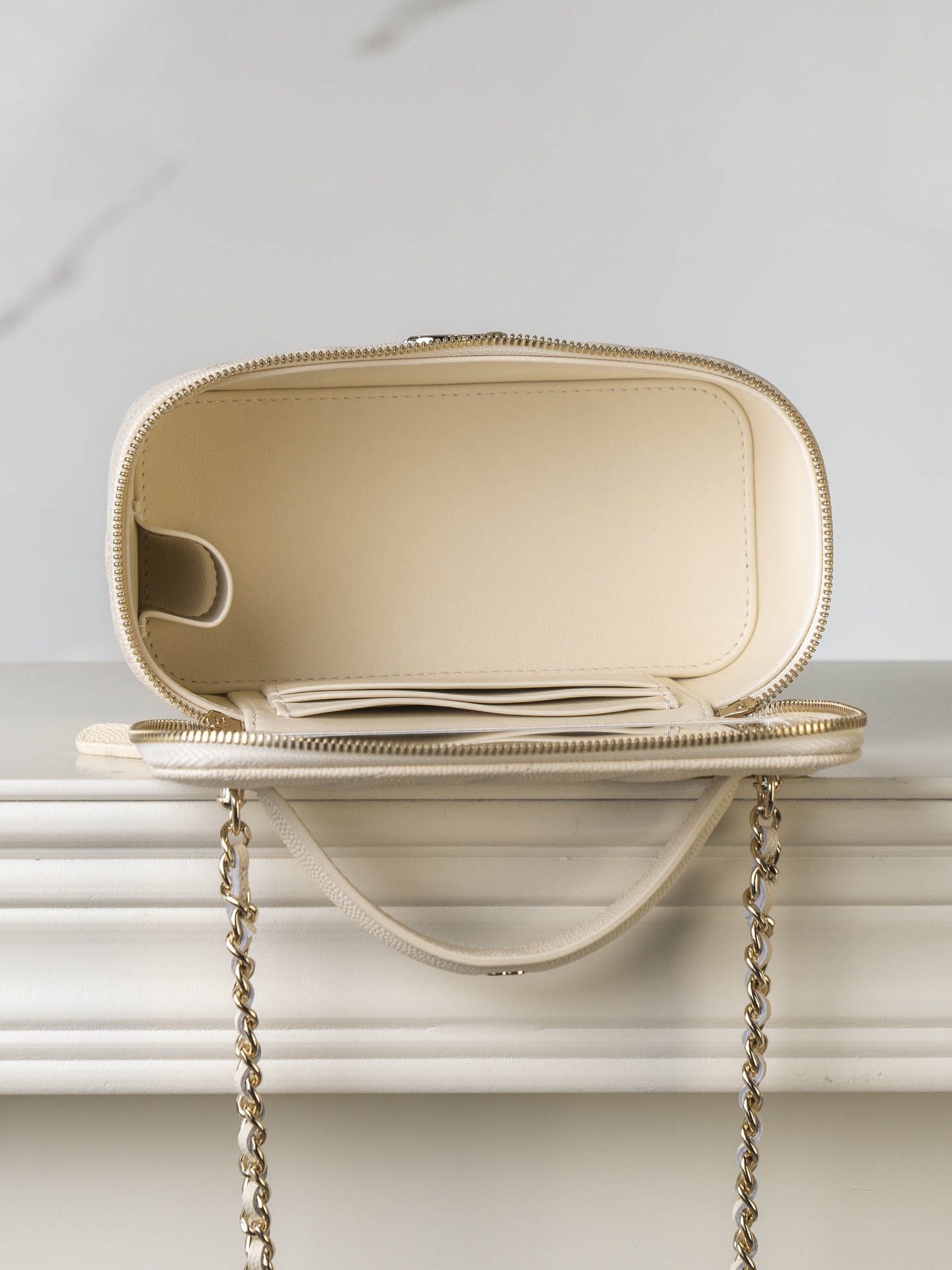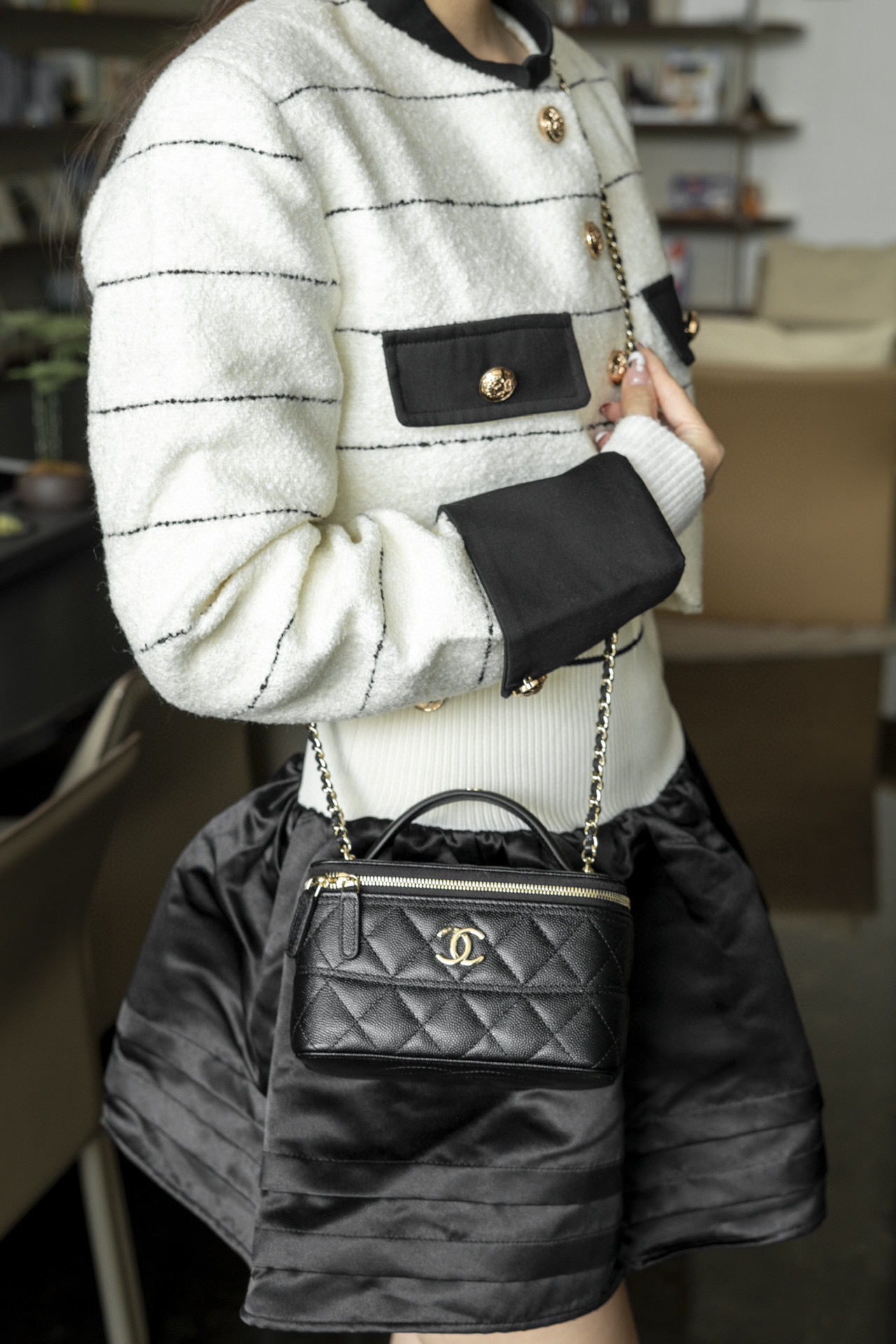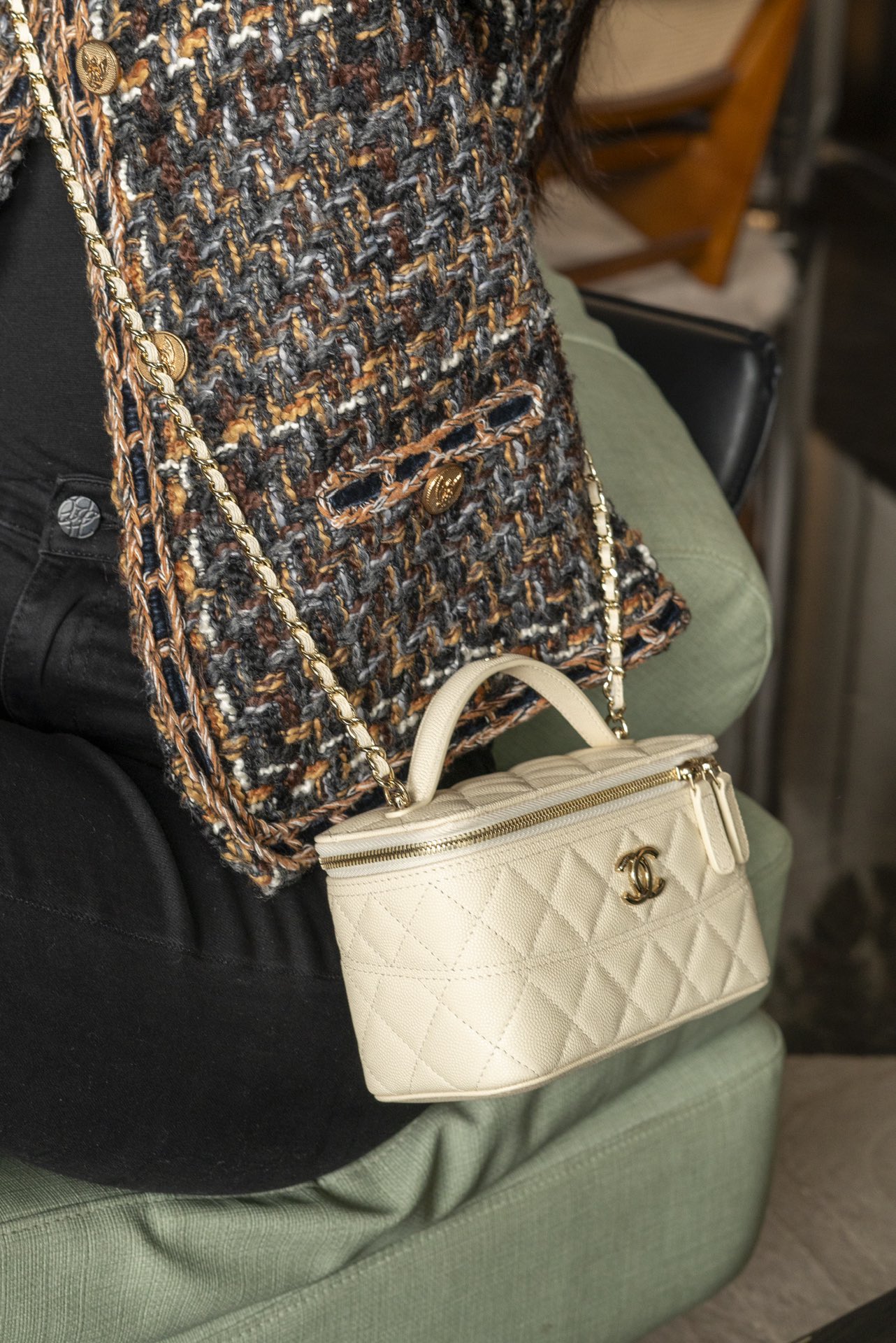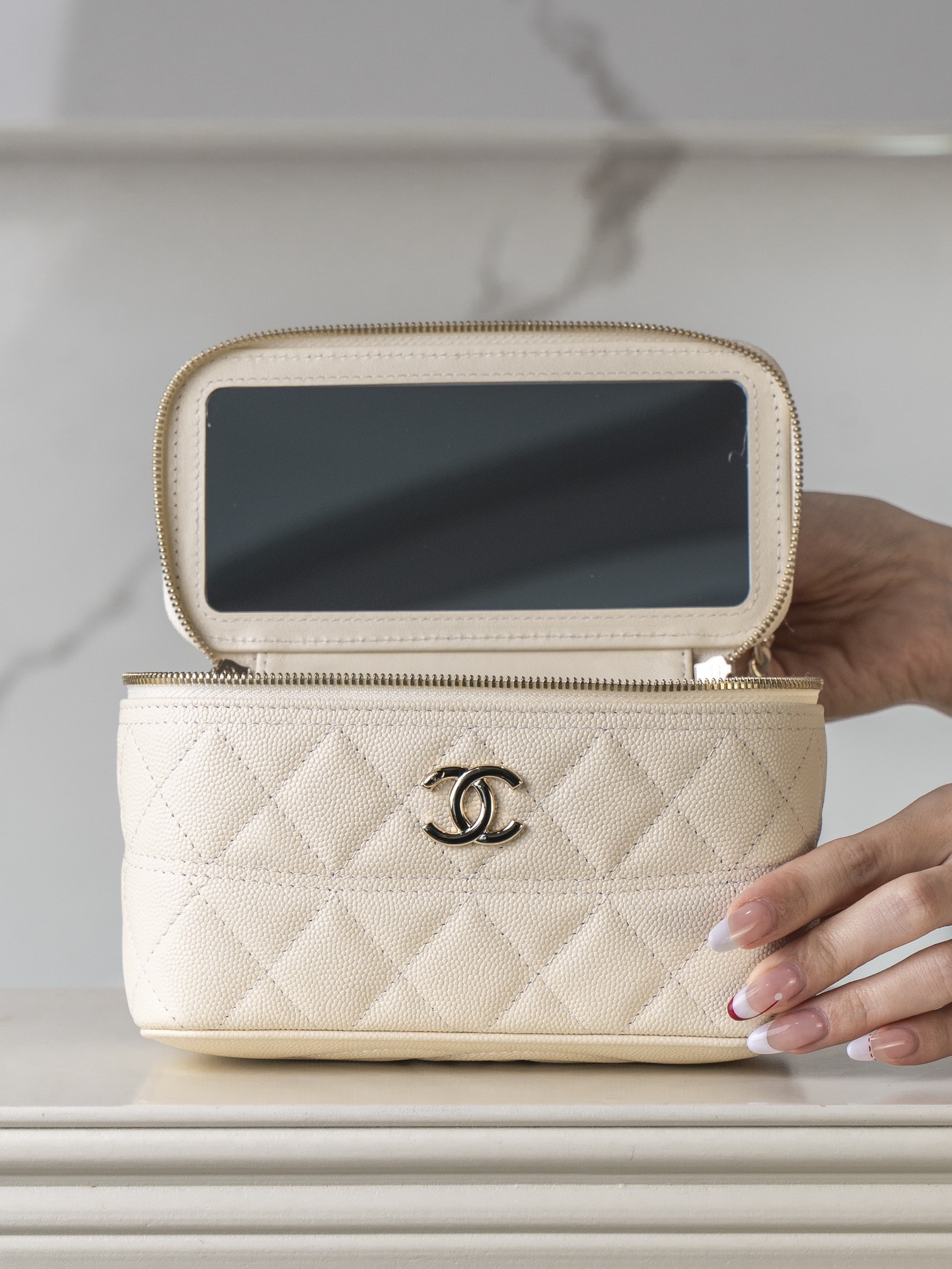𝐂𝐡𝐚𝐧𝐞𝐥 𝟐𝟓𝐜 新款 手柄盒子包 荔枝牛 方盒子的造型、搭配标志性双C Logo、简约大气手柄处还有小 𝐥𝐨𝐠𝐨 超精致 荔枝牛皮非常抗造〰️ 搭配浅金色五金, 颜值非常抗打!可以装得下手机,🉑斜挎、手拎!颜色很柔和,如同被阳光照耀过的云朵☁️ 温柔又治愈 小tip:米白色会比纯白更耐脏哦〰️ 尺寸:𝟏𝟕𝐱𝟗.𝟓𝐱𝟖𝐜𝐦