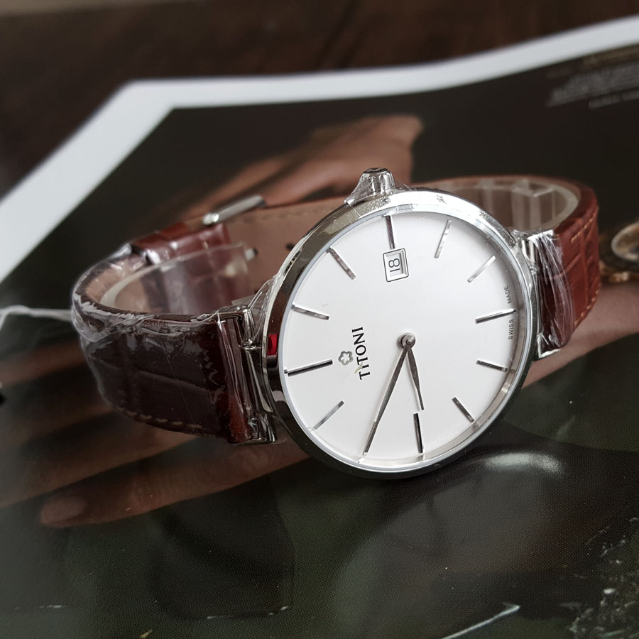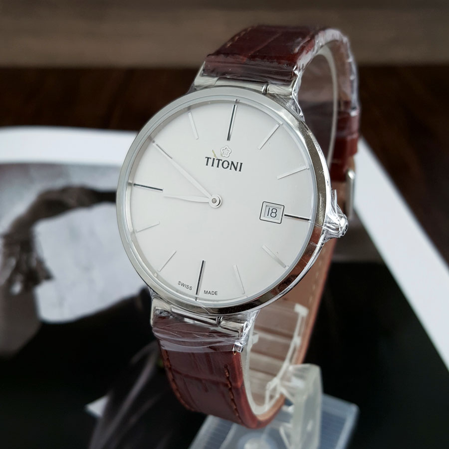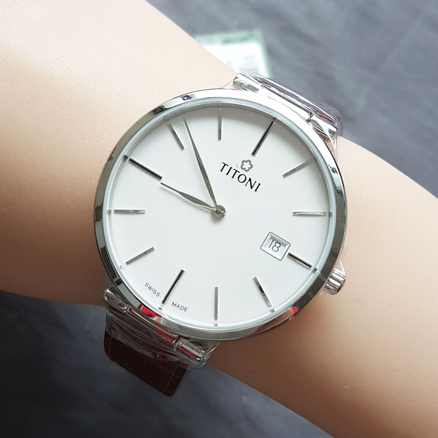 【99新】TITONI 梅花82718 S-ST-606自动机械机芯日期显示39MM(男款)Slenderline纤薄系列精钢160426NJ52