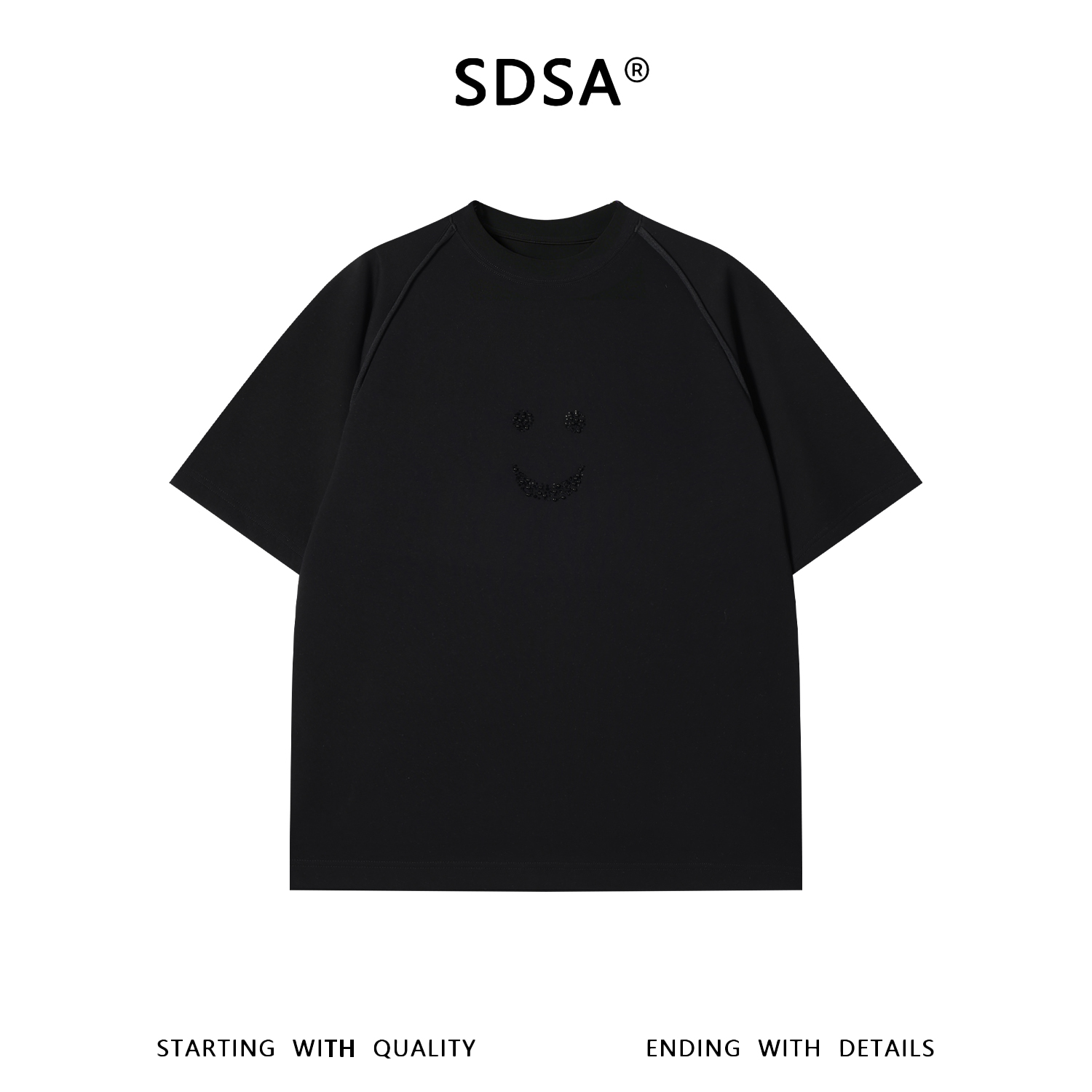 SDSA男装2026新款高贵轻奢潮牌烫钻笑脸宽松圆领短袖T恤百搭时尚