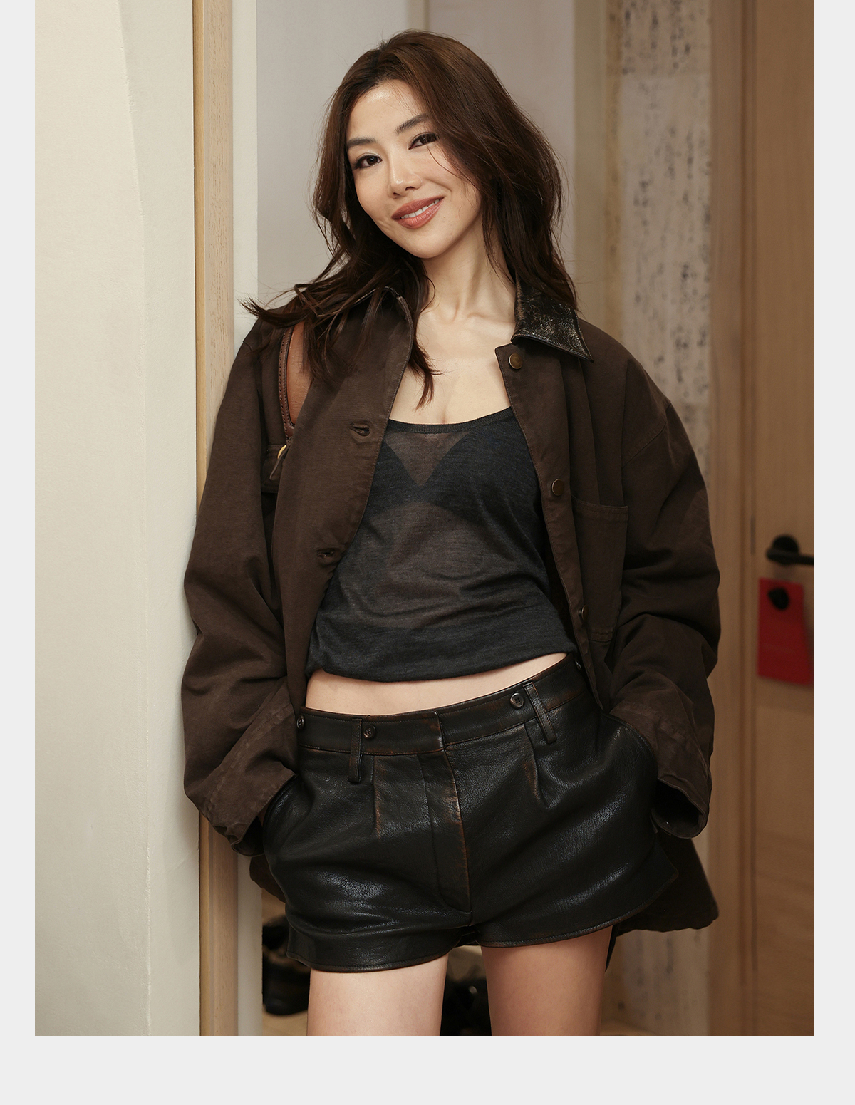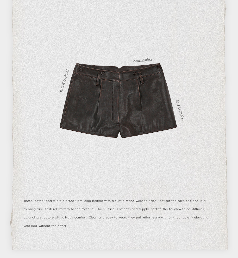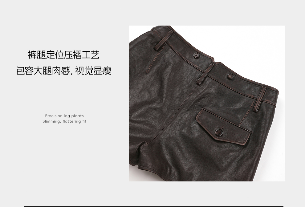 ROMI STUDIO“秀场皮裤”复古擦色羊皮高腰直筒皮短裤RWDSXL2811