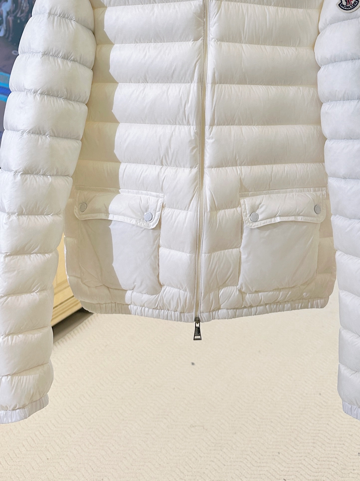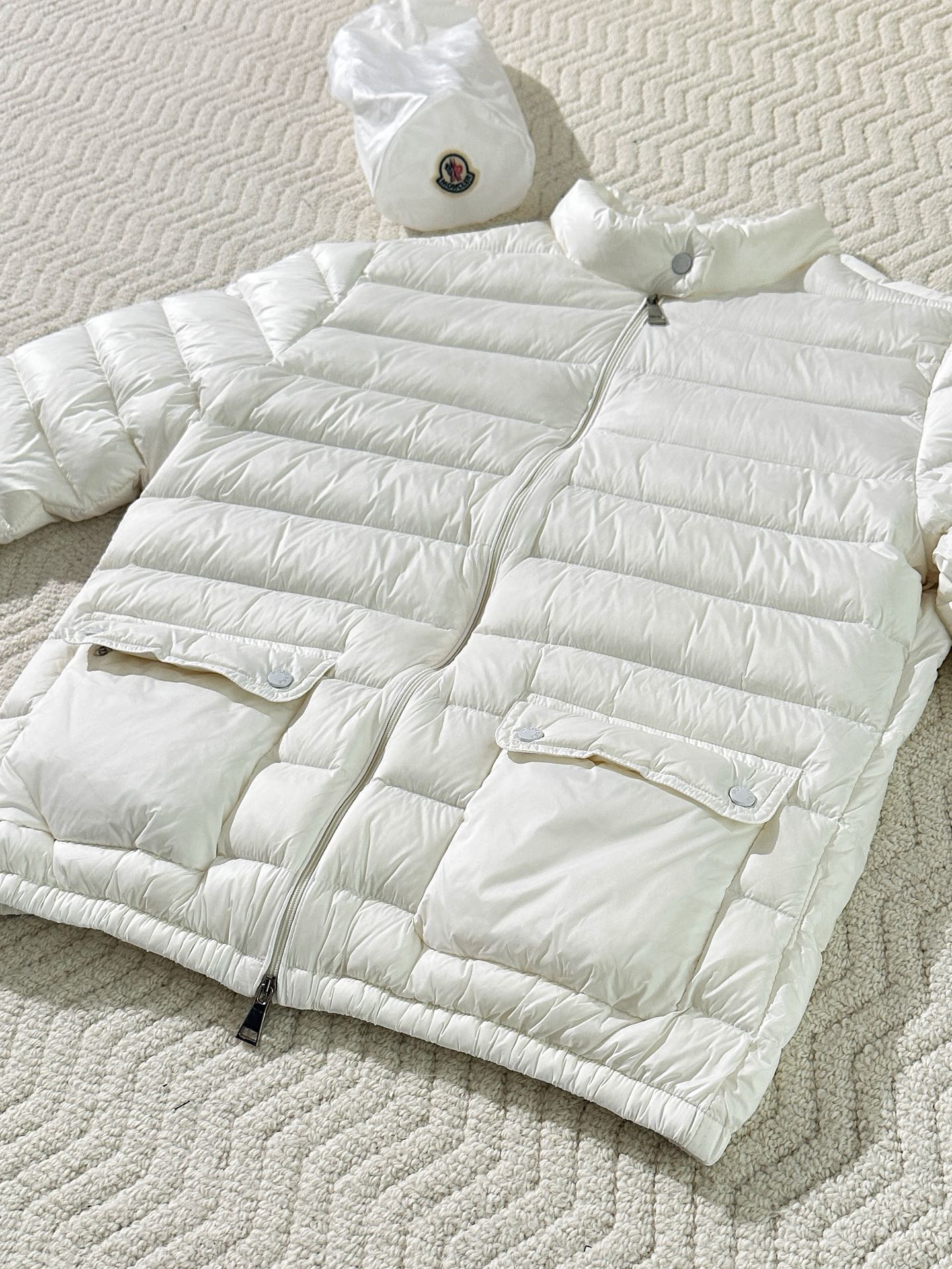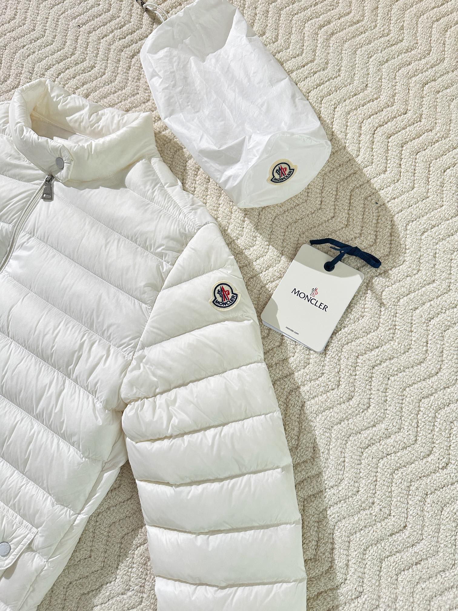 蒙口Moncler Lans可折叠短款女士羽绒服夹克外套,特级颈部95白鹅绒,码数0-1-2-3-4-5 女款 ✅⚠️三色今年重新全部购入原版开发,全网最高版本,大家都知道这款2018年我们都开始做,中间停了2年没做,结果太多客户催着做。。今年决定重新购入原版再次升级,里外均采用原厂nylon léger面料➕特级颈部95白鹅绒➕原渠道辅料➕做工全部再次升级,秒杀一切全网的通货。轻薄款无内胆布的羽绒服,最考验就是羽绒蓬松度面料及做工,这款加起来做了5年技术已经非常成熟,钻绒这些根本不存在。 ⚠️面料:采用进口原厂面料,极为轻盈,同时高密度纺织技术可有效防止羽绒钻出,兼具保暖性与耐用性。且该面料经过防水处理,具有良好的防水性和透气性,能在保持干爽的同时,让身体保持舒适的呼吸状态,高蓬松度的白鹅绒且折叠后,便于携带,非常适合日常穿着和旅行使用。 ⚠️羽绒: 客供进口特级颈部95白鹅绒填充,白鹅绒中最顶级品质,具有卓越的保暖性能和舒适体验,绒子含量:高达95%以上,几乎不含杂质和羽丝,蓬松度:可达800-900FP,远超普通鹅绒的500-700FP,清洁度:1000+,无异味,卫生标准极高。产地:通常来自北纬45-53°黄金产绒带的优质白鹅。保暖性极强:能牢牢锁住空气,形成高效保暖层,保暖效果是普通羽绒的3倍,轻盈柔软:触感如婴儿皮肤般QQ软软,上有轻盈无压迫感,回弹性卓越:压缩后迅速回弹,持久保持饱满蓬松状态,使用寿命长。透气性佳:具备吸湿排湿功能,保持身体干爽舒适 作为专为女士设计的Moncler经典款式,标志性单品,以品牌的功能性优雅提升日常衣橱。Lans羽绒夹克呈现流线型廓形,适合各种季节和潮流。四季皆宜的基础款保暖单品。采用轻质原厂尼龙制成,长方格绗缝彰显隽永设计。玩转几何元素,贴袋设计令经典方格块绗缝更添活力气息。搭配绗缝,点缀Moncler毡艺商标,拉链开合,衣领设有同色调按扣开合,两个翻盖贴袋,配送收纳袋,轻便简洁收纳,轻松拎走不占地方,功能实用,轻盈保暖,易于收纳。 产品详情: •采用原厂nylon léger面料制成 •原厂Nylon léger衬里 •填充95特级颈部白鹅绒 •配送折叠收纳袋,可折叠 •按扣开合立领 •拉链开合 •按扣开合贴袋 •毛毡标识贴片