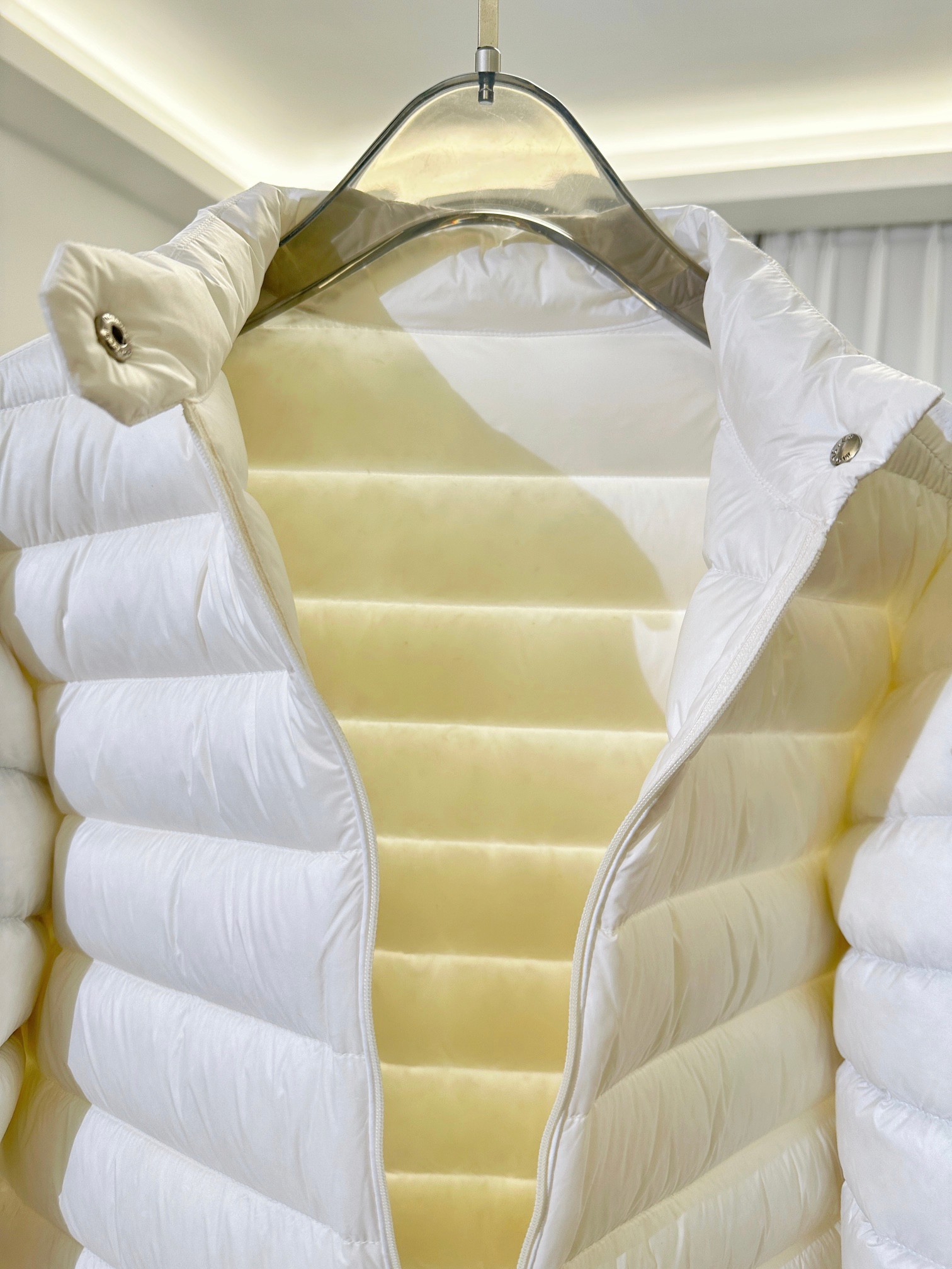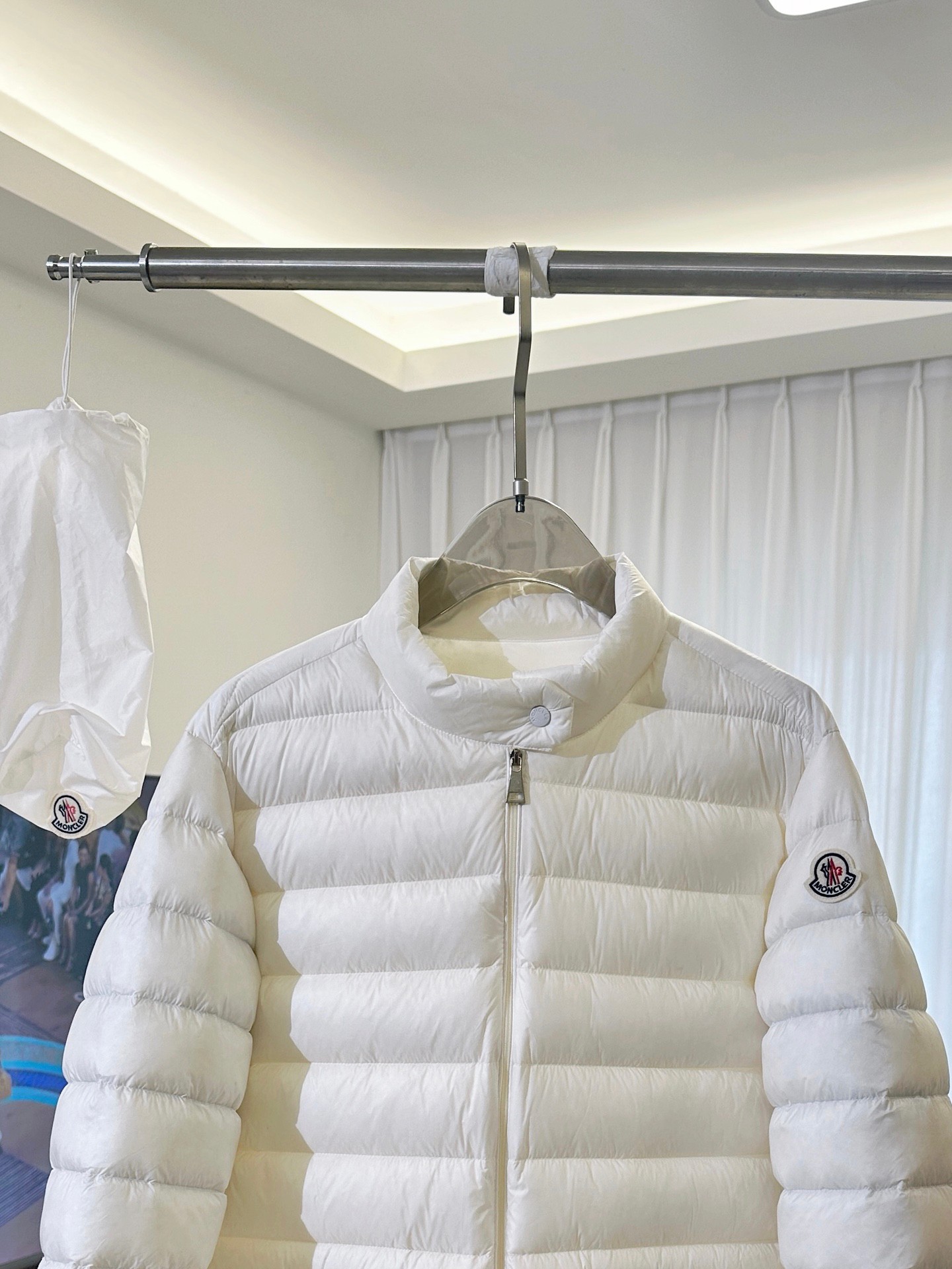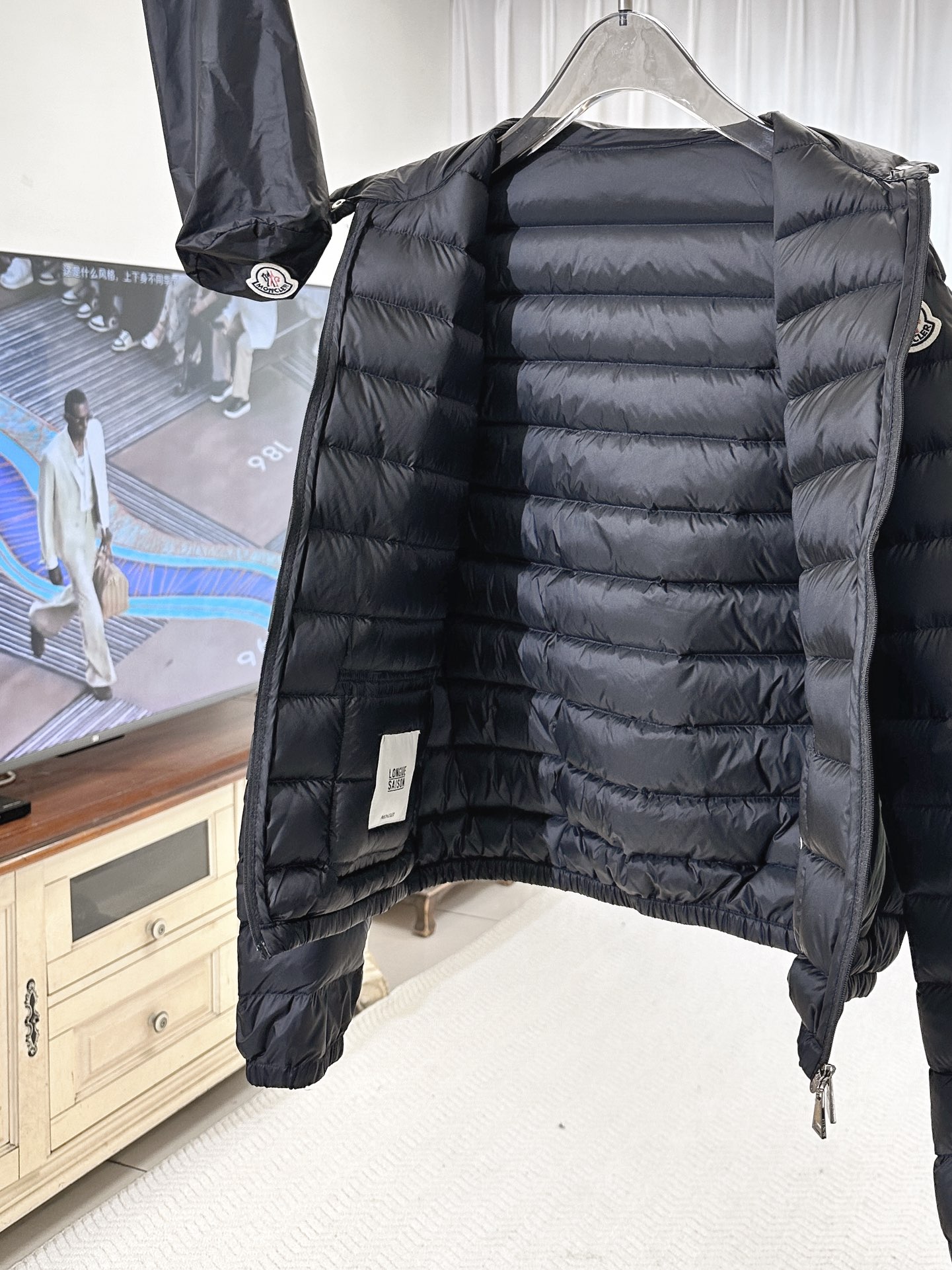 蒙口Moncler Lans可折叠短款女士羽绒服夹克外套,特级颈部95白鹅绒,码数0-1-2-3-4-5 女款 ✅⚠️三色今年重新全部购入原版开发,全网最高版本,大家都知道这款2018年我们都开始做,中间停了2年没做,结果太多客户催着做。。今年决定重新购入原版再次升级,里外均采用原厂nylon léger面料➕特级颈部95白鹅绒➕原渠道辅料➕做工全部再次升级,秒杀一切全网的通货。轻薄款无内胆布的羽绒服,最考验就是羽绒蓬松度面料及做工,这款加起来做了5年技术已经非常成熟,钻绒这些根本不存在。 ⚠️面料:采用进口原厂面料,极为轻盈,同时高密度纺织技术可有效防止羽绒钻出,兼具保暖性与耐用性。且该面料经过防水处理,具有良好的防水性和透气性,能在保持干爽的同时,让身体保持舒适的呼吸状态,高蓬松度的白鹅绒且折叠后,便于携带,非常适合日常穿着和旅行使用。 ⚠️羽绒: 客供进口特级颈部95白鹅绒填充,白鹅绒中最顶级品质,具有卓越的保暖性能和舒适体验,绒子含量:高达95%以上,几乎不含杂质和羽丝,蓬松度:可达800-900FP,远超普通鹅绒的500-700FP,清洁度:1000+,无异味,卫生标准极高。产地:通常来自北纬45-53°黄金产绒带的优质白鹅。保暖性极强:能牢牢锁住空气,形成高效保暖层,保暖效果是普通羽绒的3倍,轻盈柔软:触感如婴儿皮肤般QQ软软,上有轻盈无压迫感,回弹性卓越:压缩后迅速回弹,持久保持饱满蓬松状态,使用寿命长。透气性佳:具备吸湿排湿功能,保持身体干爽舒适 作为专为女士设计的Moncler经典款式,标志性单品,以品牌的功能性优雅提升日常衣橱。Lans羽绒夹克呈现流线型廓形,适合各种季节和潮流。四季皆宜的基础款保暖单品。采用轻质原厂尼龙制成,长方格绗缝彰显隽永设计。玩转几何元素,贴袋设计令经典方格块绗缝更添活力气息。搭配绗缝,点缀Moncler毡艺商标,拉链开合,衣领设有同色调按扣开合,两个翻盖贴袋,配送收纳袋,轻便简洁收纳,轻松拎走不占地方,功能实用,轻盈保暖,易于收纳。 产品详情: •采用原厂nylon léger面料制成 •原厂Nylon léger衬里 •填充95特级颈部白鹅绒 •配送折叠收纳袋,可折叠 •按扣开合立领 •拉链开合 •按扣开合贴袋 •毛毡标识贴片