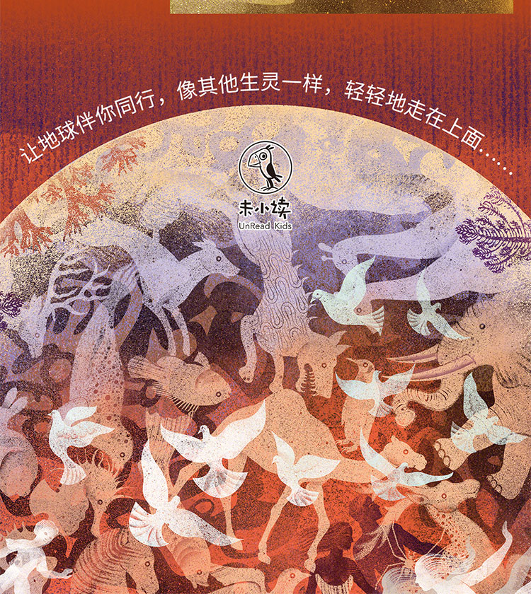 这是一本用画与诗为孩子打开感悟自然新视窗的人文诗意绘本。“让地球伴你同行,像其他生灵一样,轻轻地走在上面。”这句带着敬畏之心的诗句,是诗人J.帕特里克·刘易斯对读者温柔的提醒:尊重并爱护我们周围的世界。高山、湖泊、河流、草地、森林、沙漠,甚至是我们头顶上的天空——所有我们生活其中的自然环境,都在向我们透露着重要的启示,而我们需要用心去聆听,才能领略其中的深意。