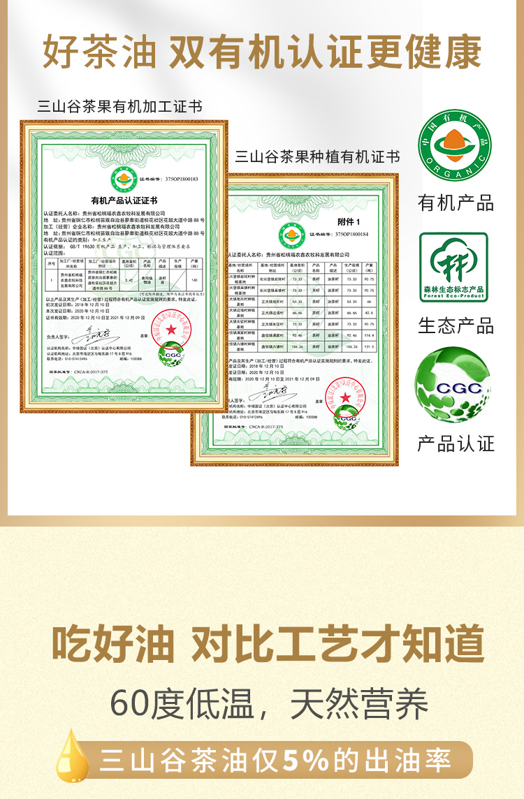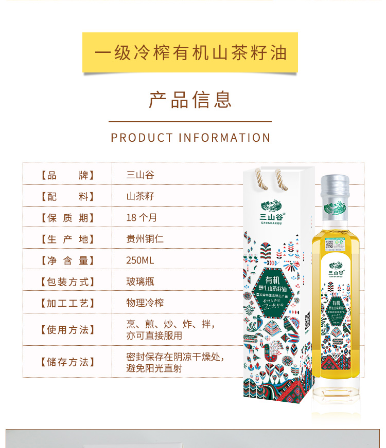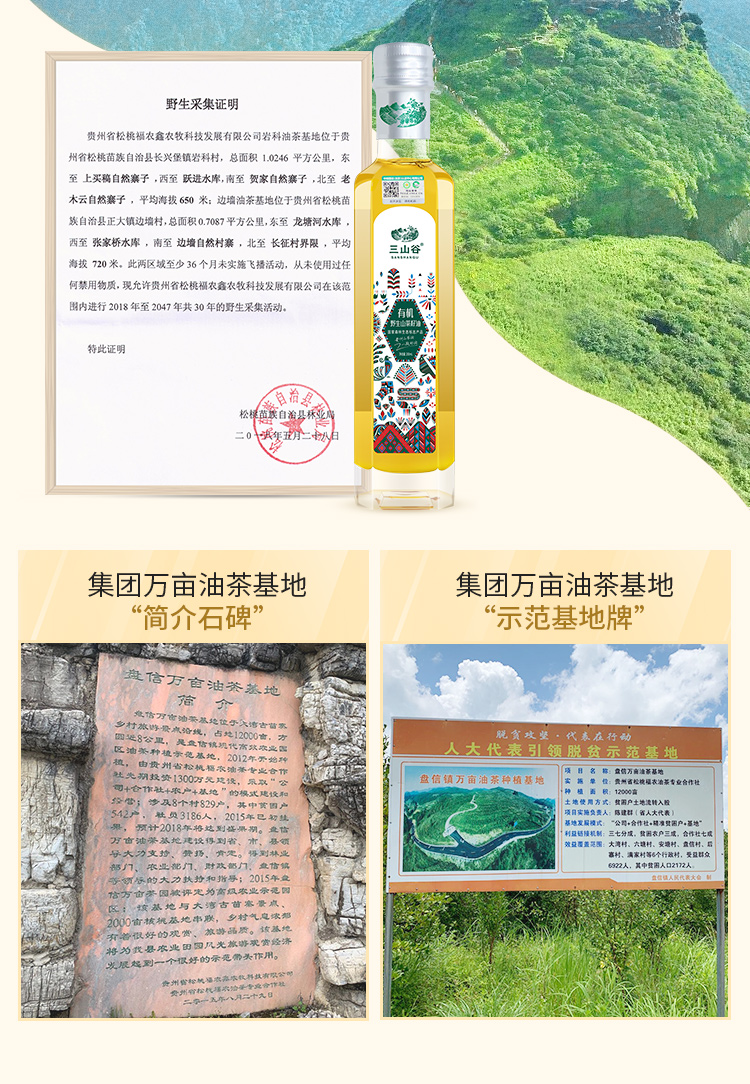 贵州铜仁三山谷有机野生山茶籽油250ml