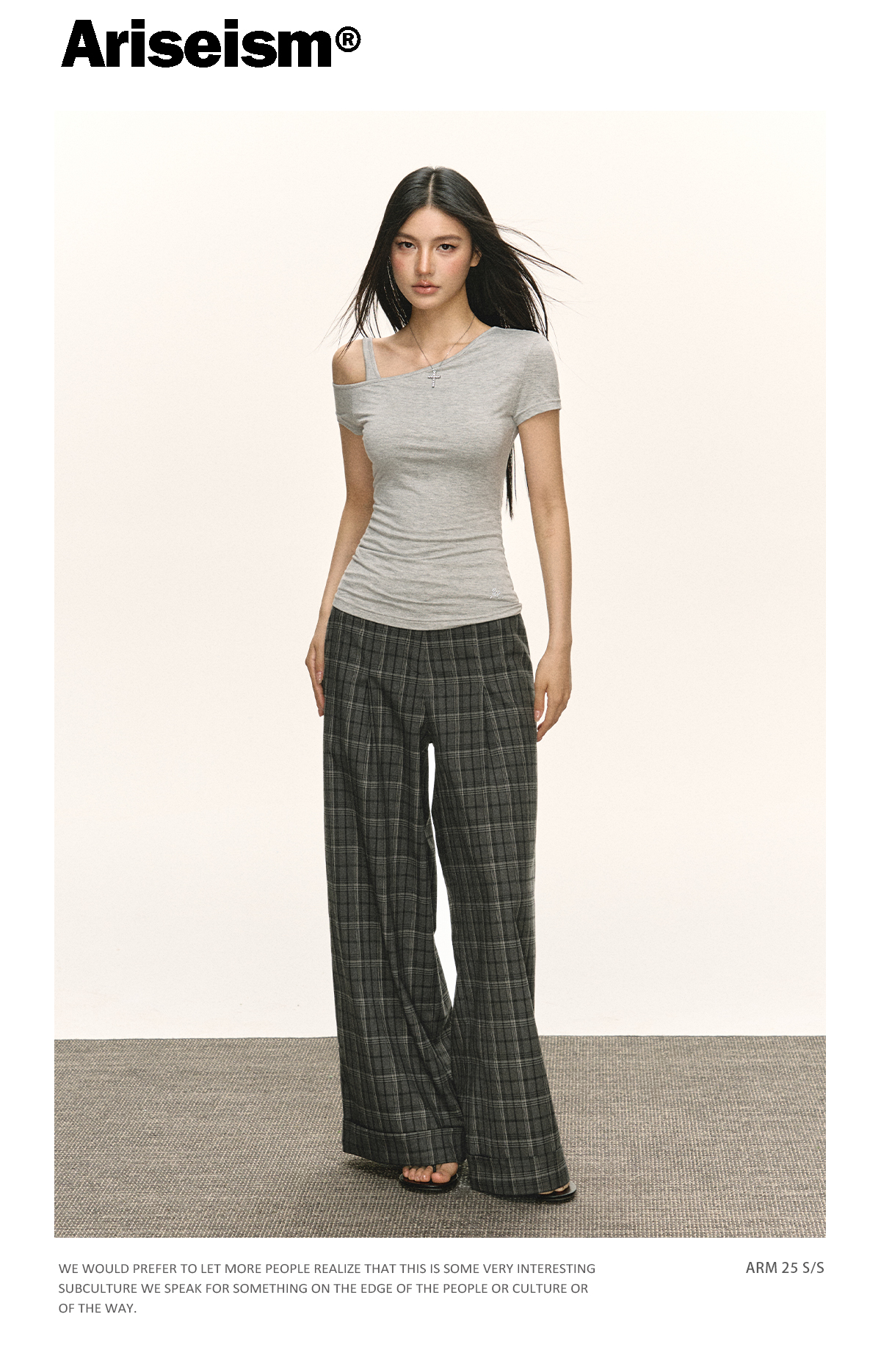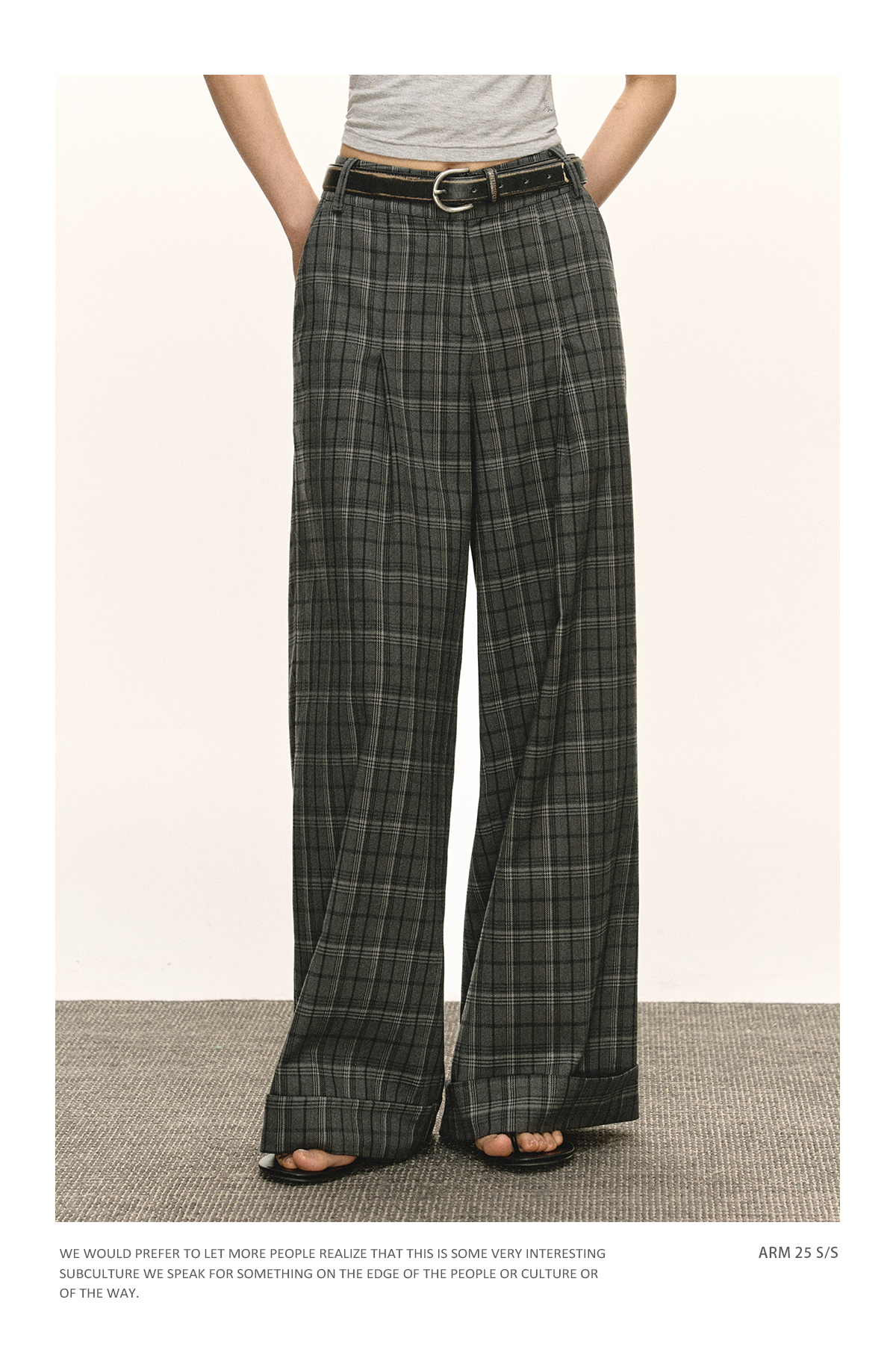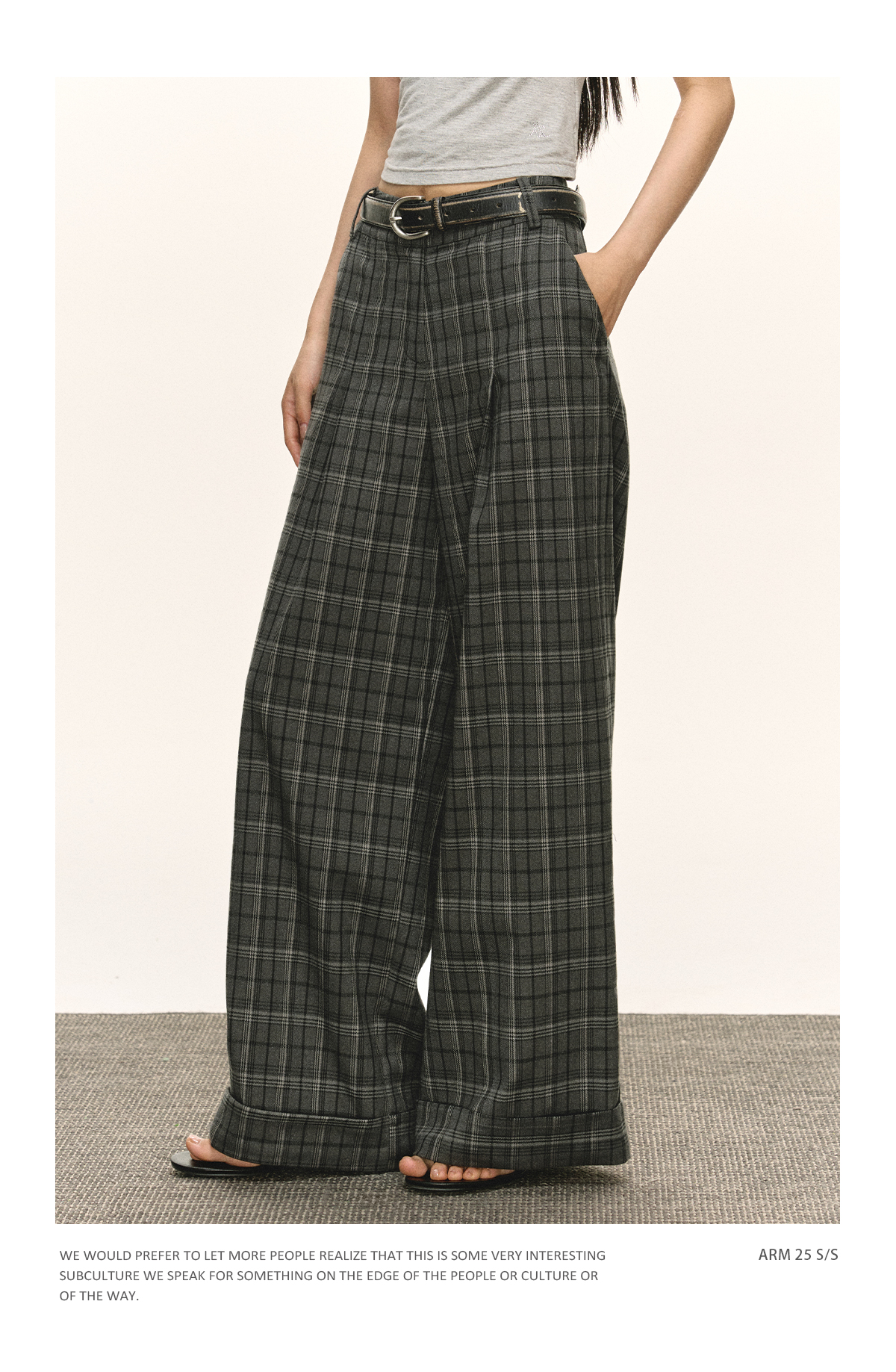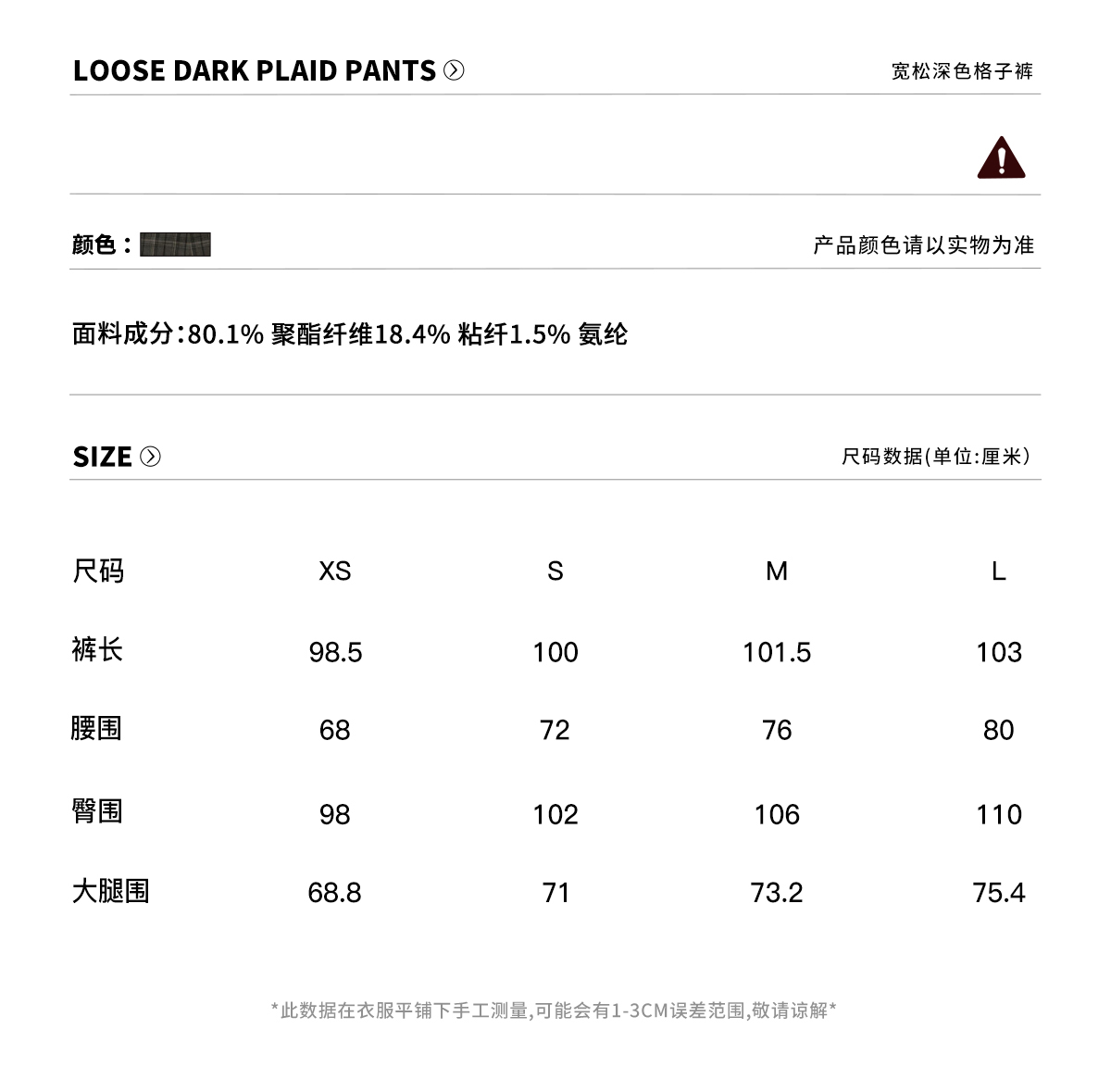 Ariseism 美式复古设计感宽松深色格子裤女秋季新款长裤子