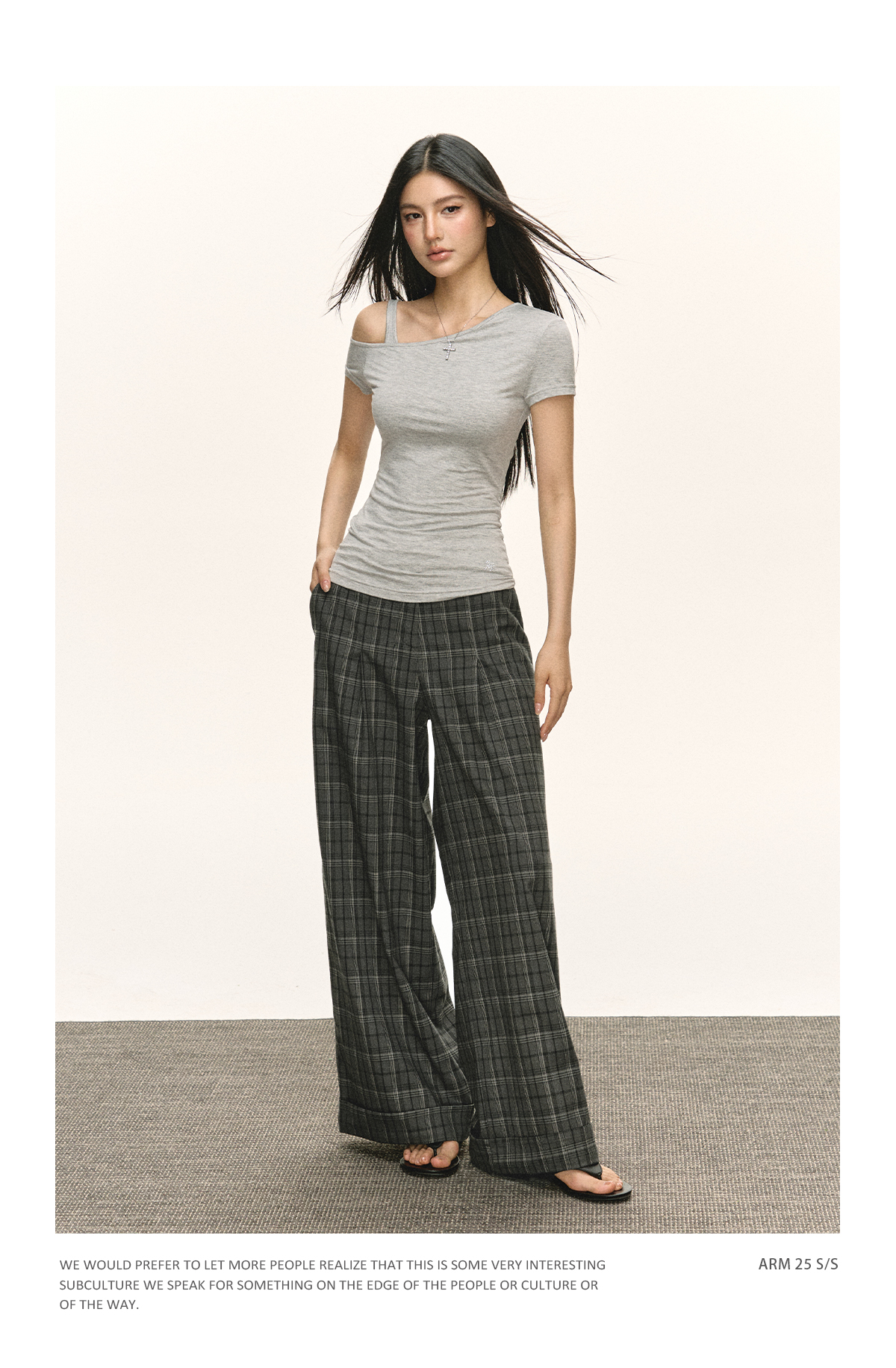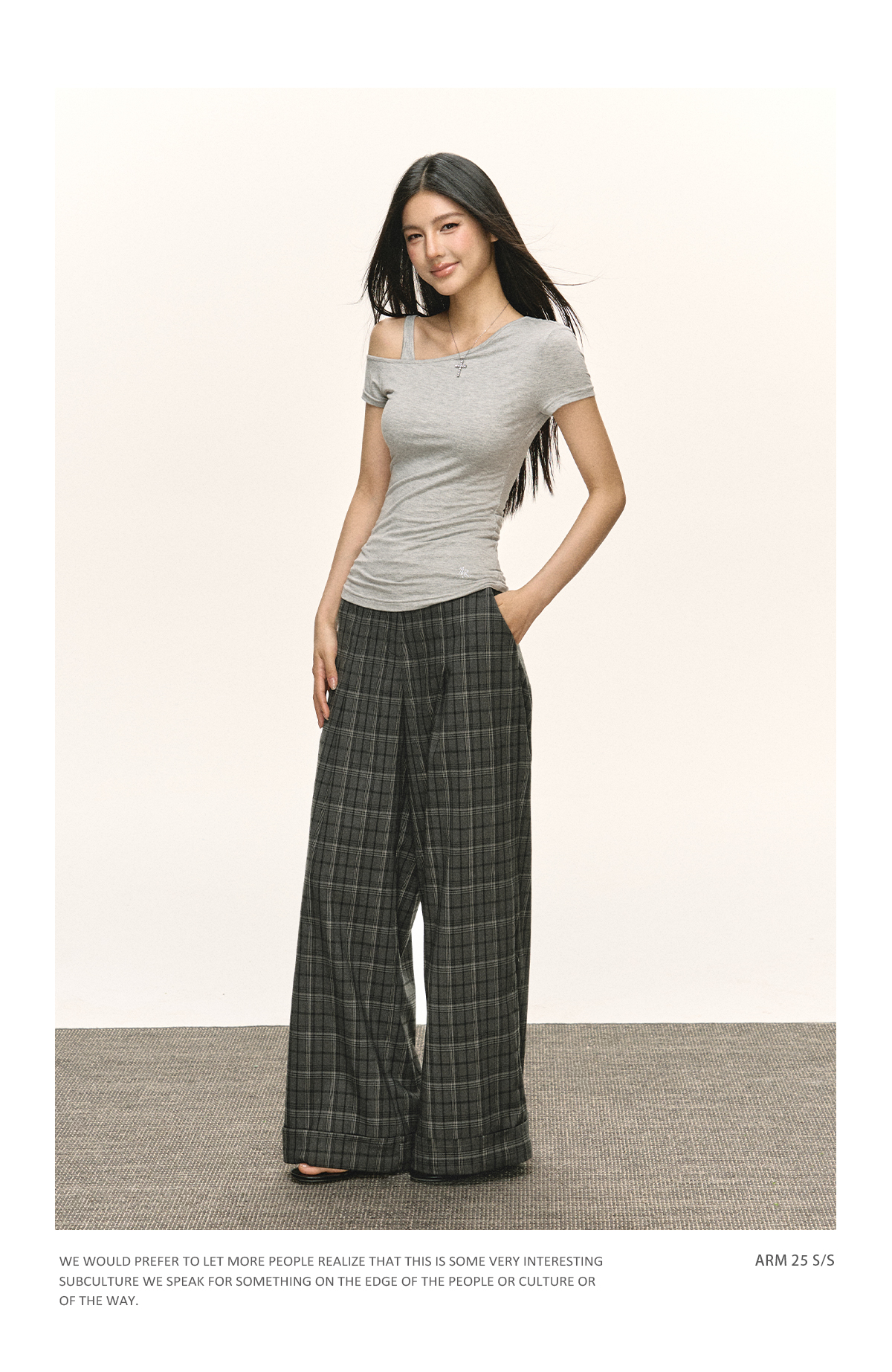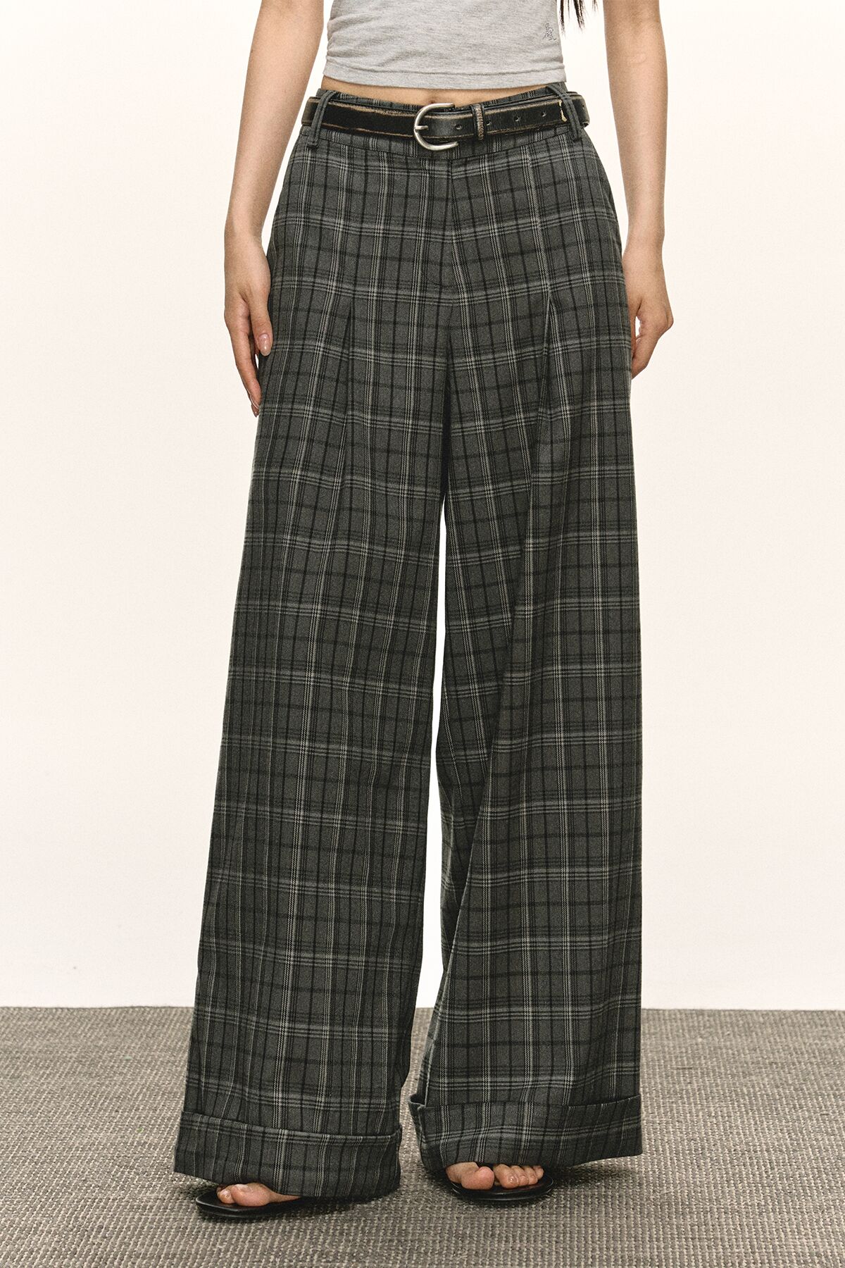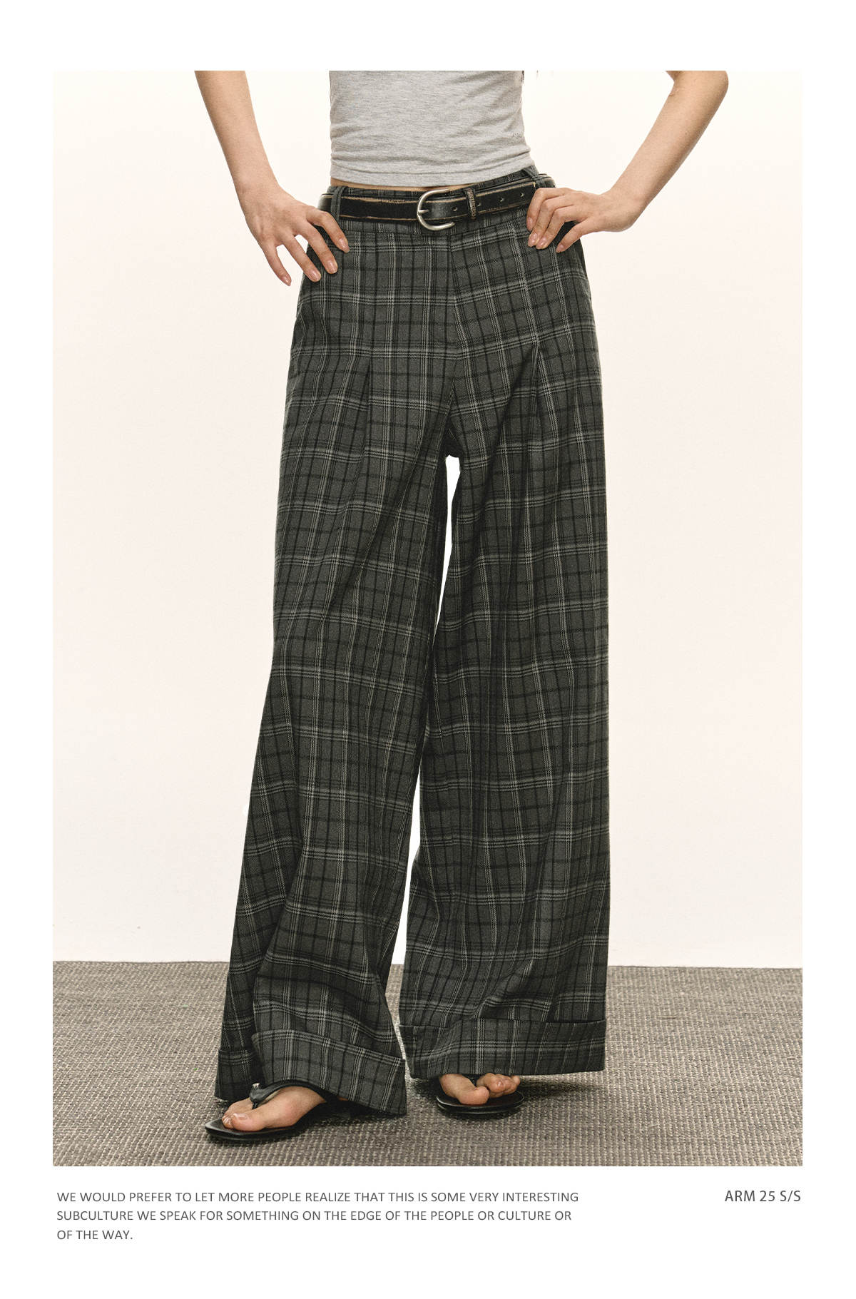 Ariseism 美式复古设计感宽松深色格子裤女秋季新款长裤子