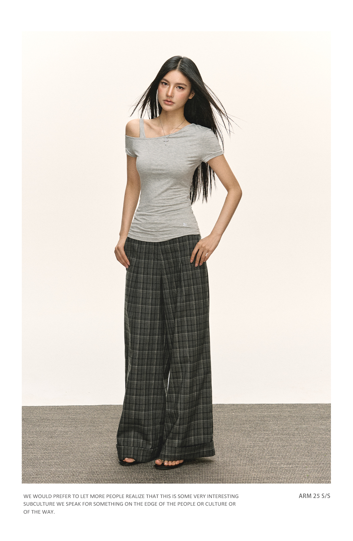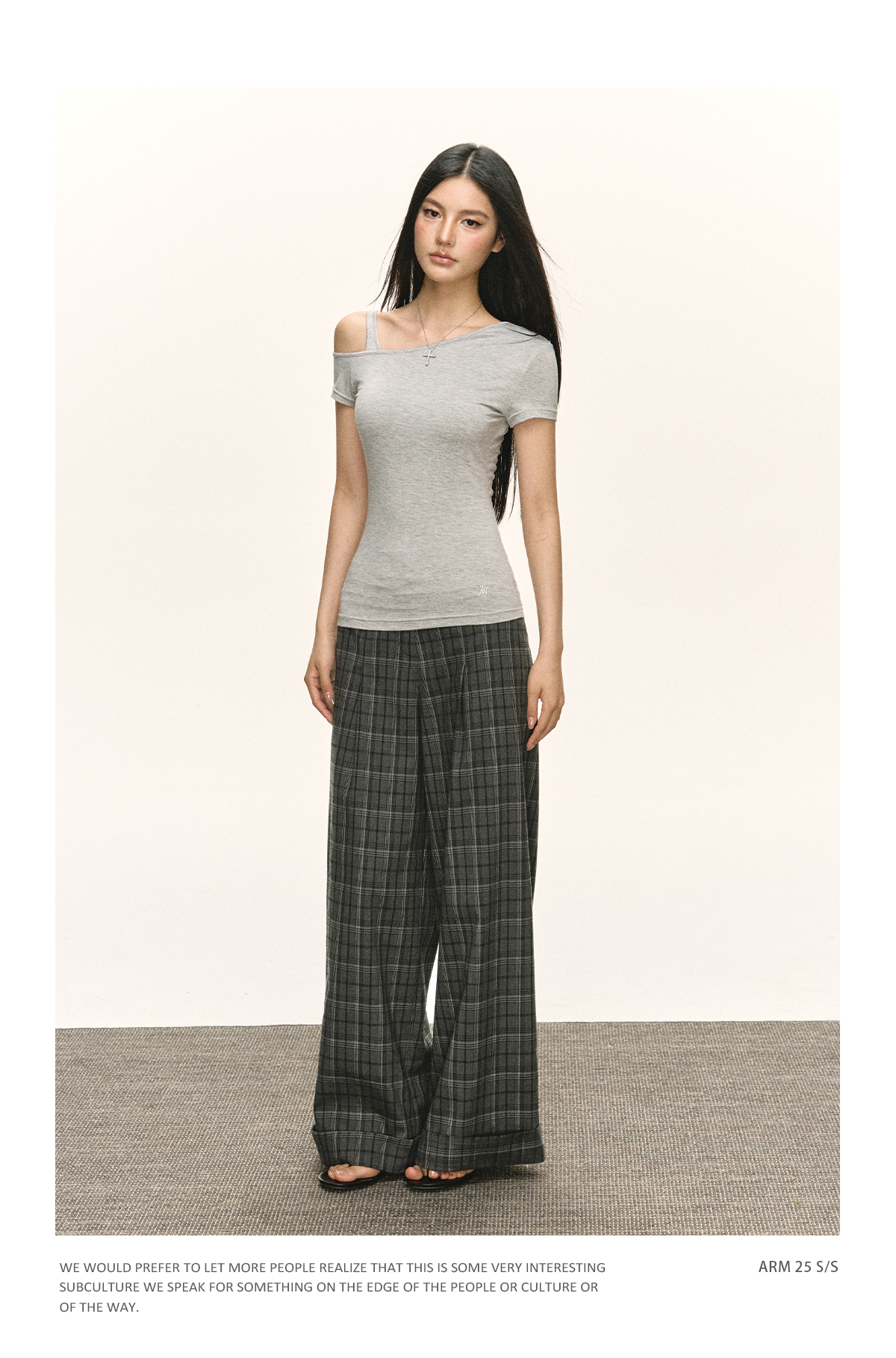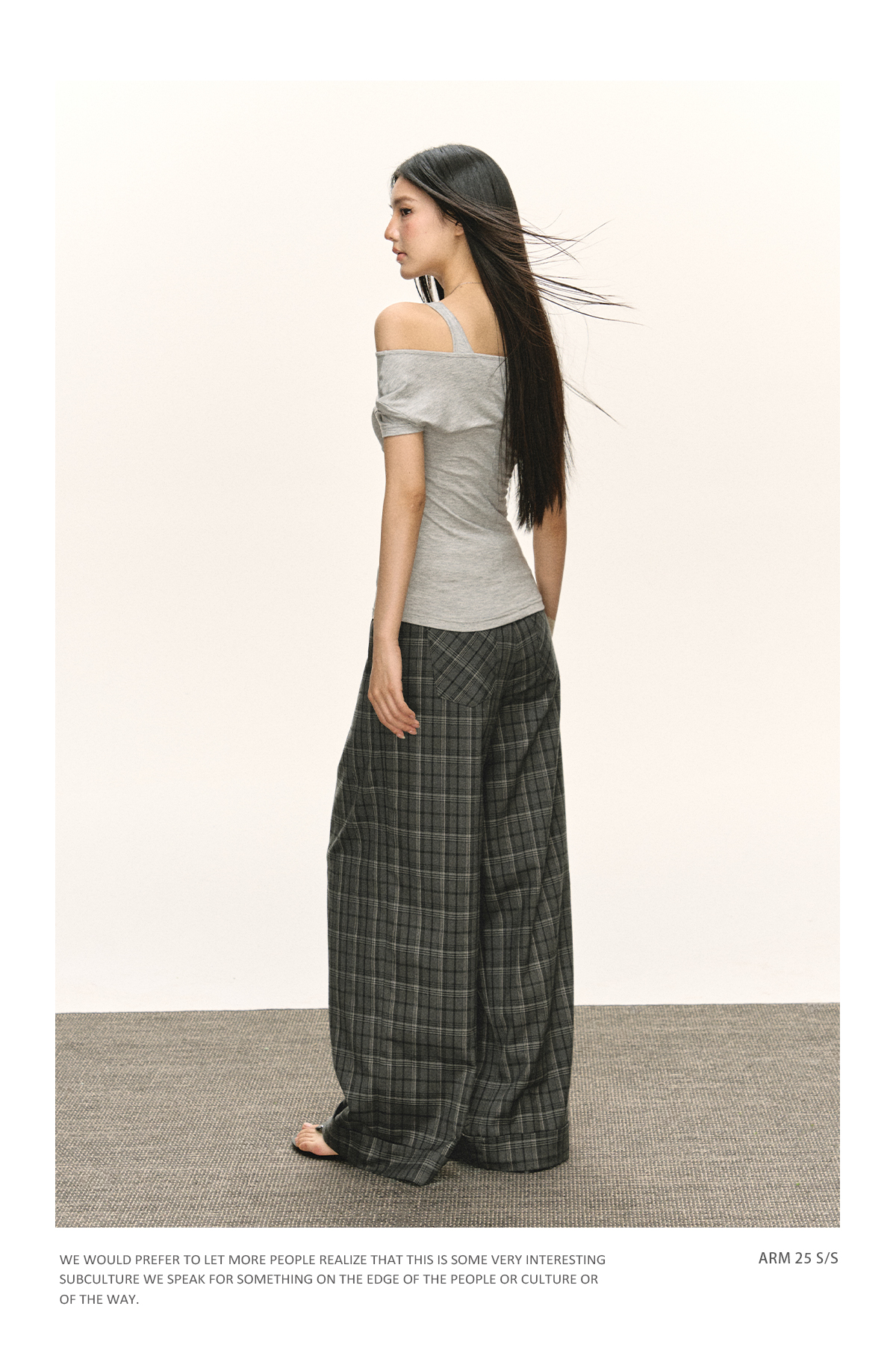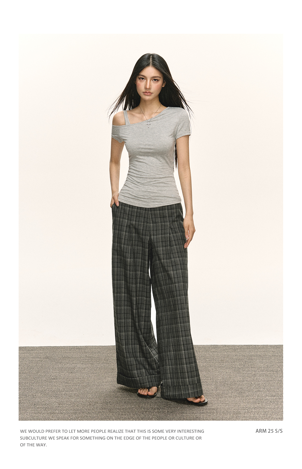 Ariseism 美式复古设计感宽松深色格子裤女秋季新款长裤子