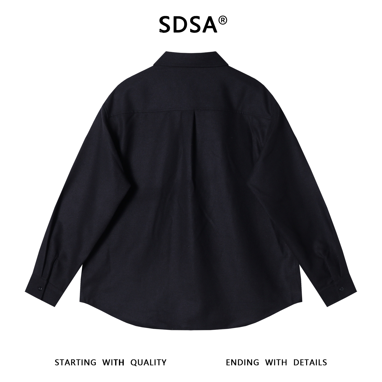 39607SDSA男士秋冬新款痞帅男装休闲口袋拼接翻领长袖衬衫百搭宽松衬衣