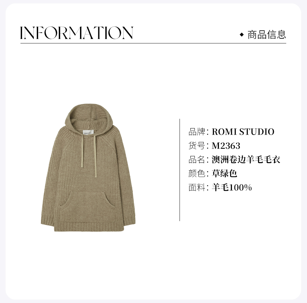 ROMI STUDIO"秋冬美拉德"连帽宽松草绿毛衣M2363
