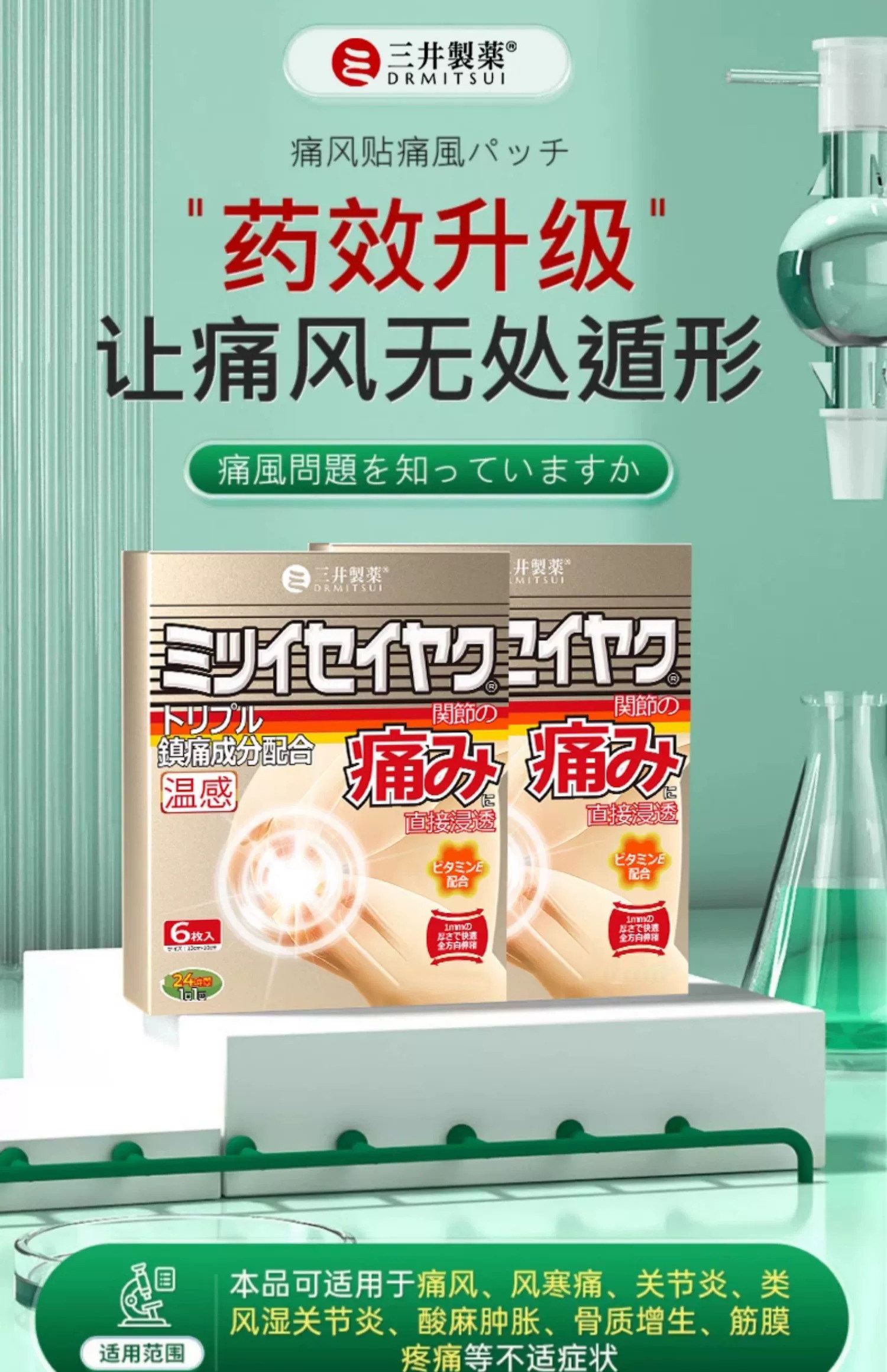 三井制药关节肩周颈椎酸风膏药贴尿酸红肿关节疼缓解疼痛关节修复