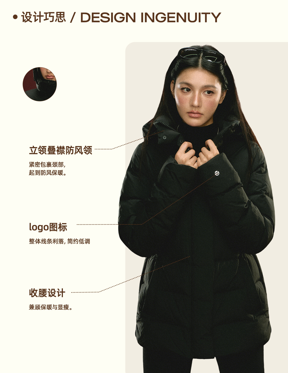 Ariseism 美式复古设计感中长款羽绒服冬季新款上衣