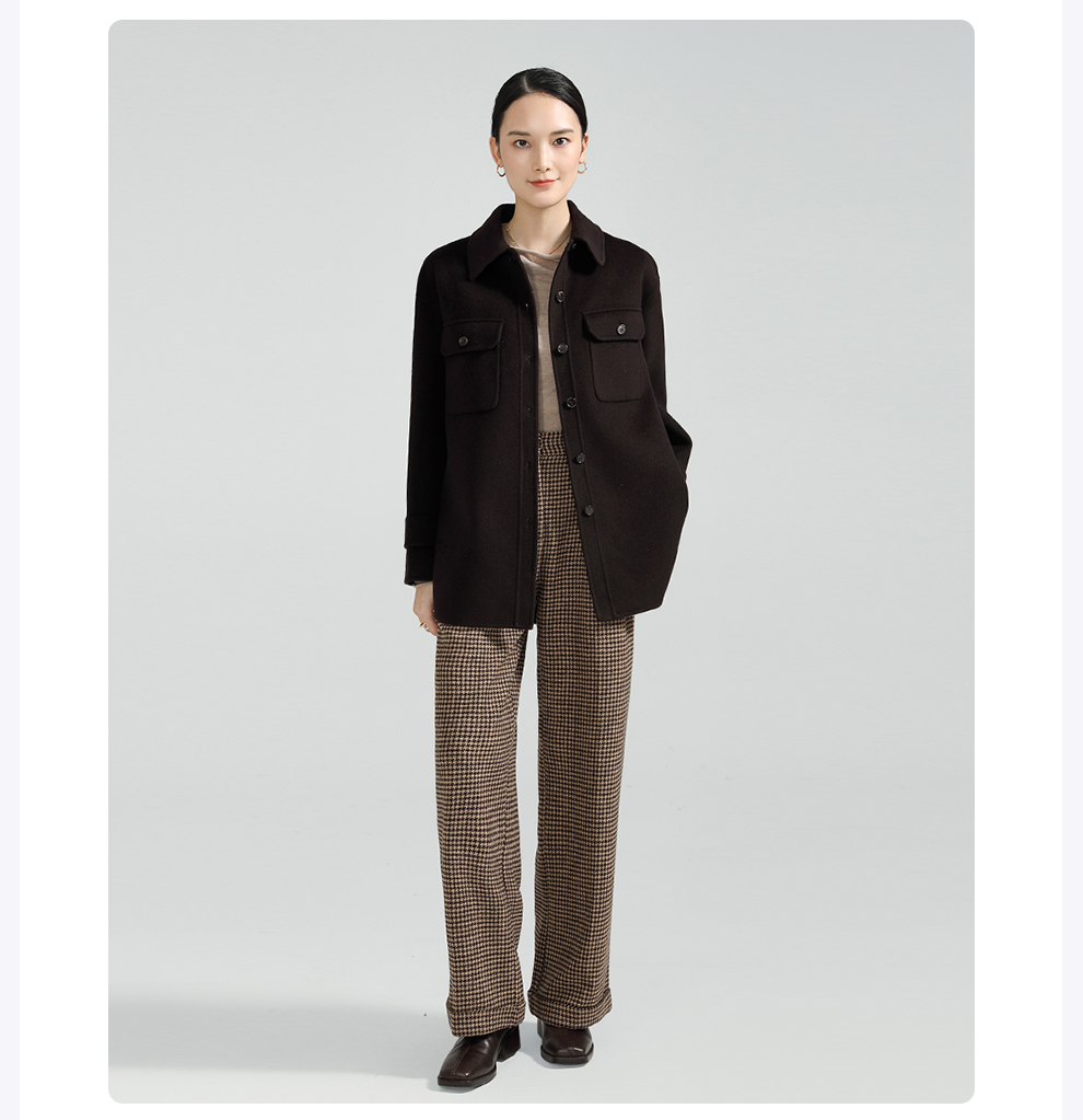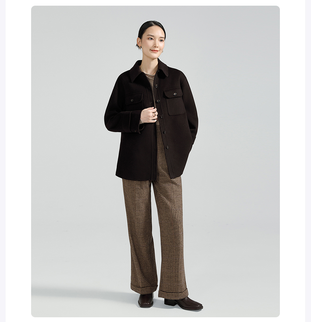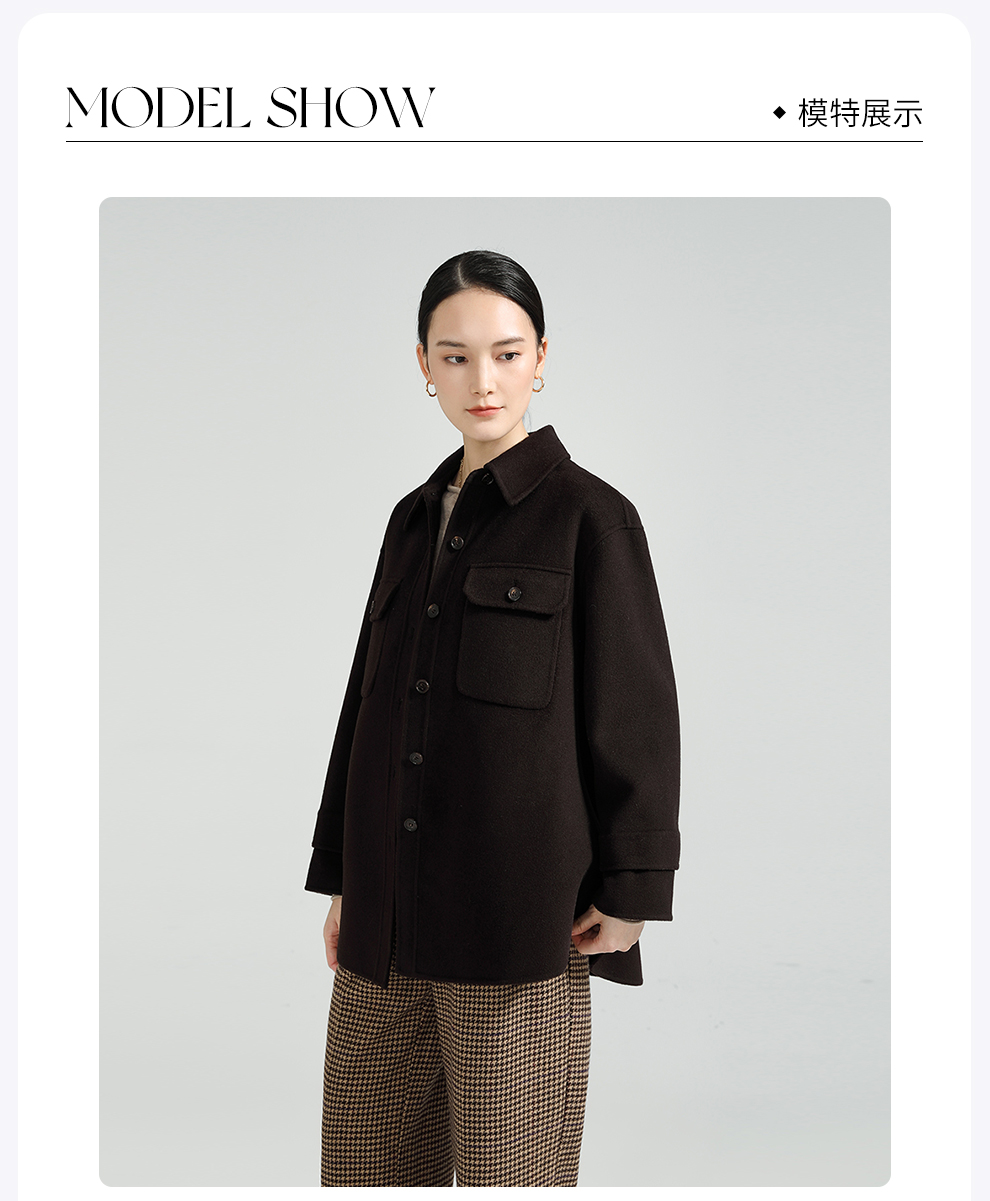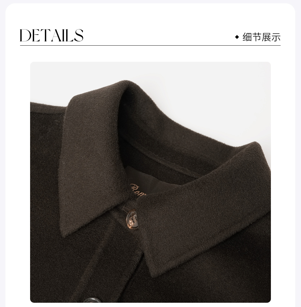 ROMI STUDIO“秋冬美拉德”腔调穿搭羊绒混纺可可棕短大衣23AWW516