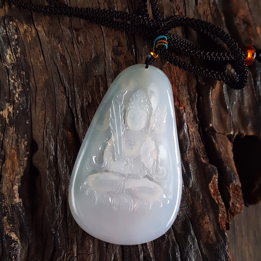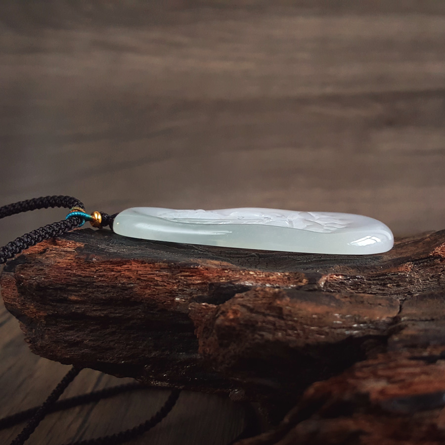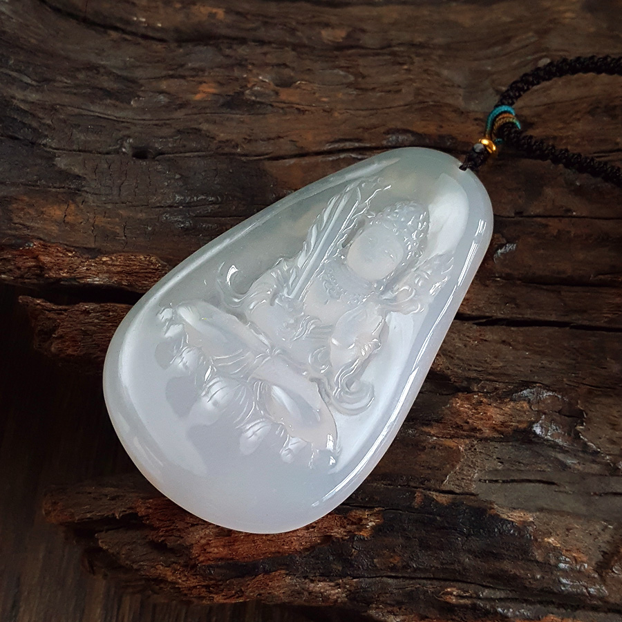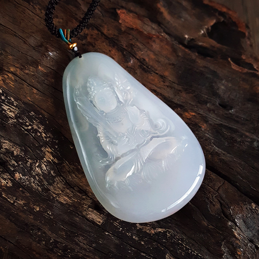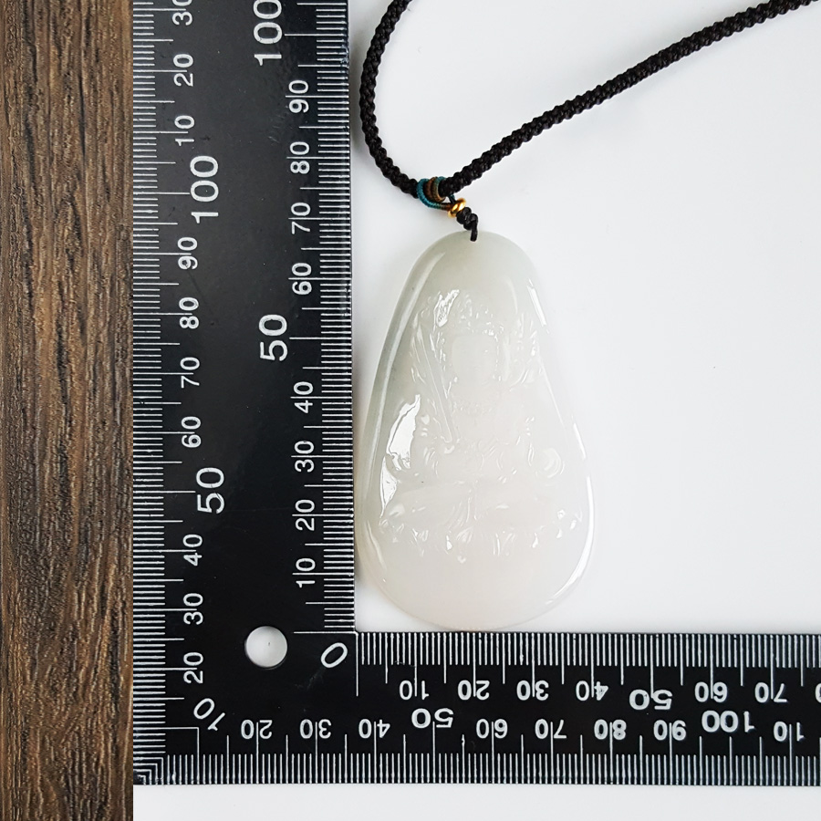 名称 | 天然精品无纹裂冰种老坑种白色观音牌造型翡翠(吉祥、平安)吊坠项链 |