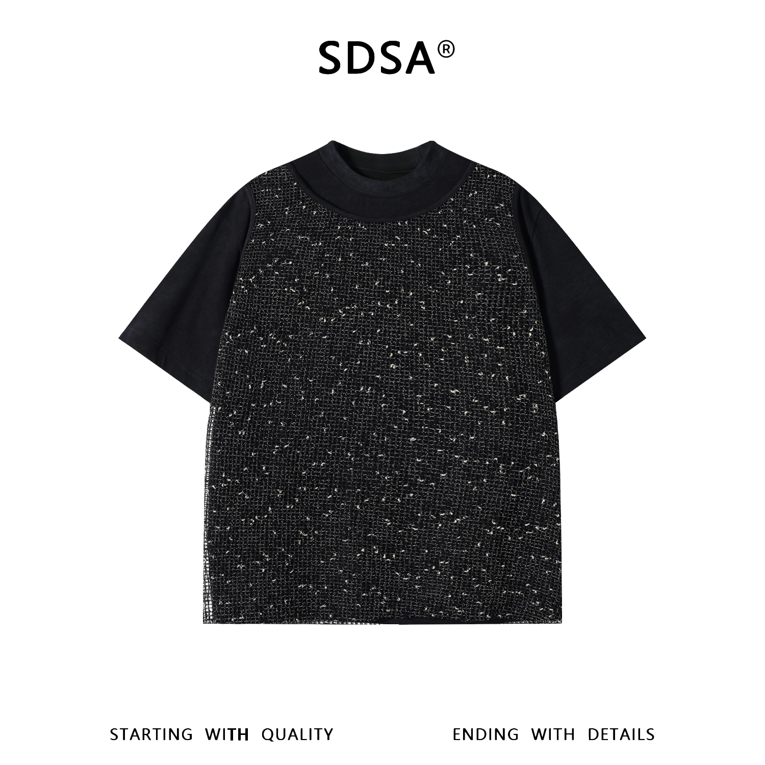 SDSA男装2026新款高贵轻奢潮牌网格马甲拼接假两件圆领短袖T恤潮