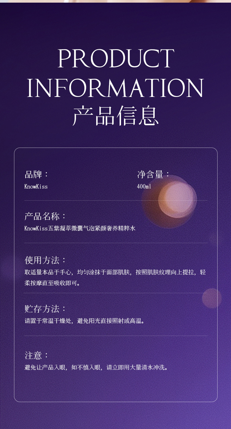 KnowKiss五紫凝萃微囊气泡紧颜奢养精粹水400ml*3
