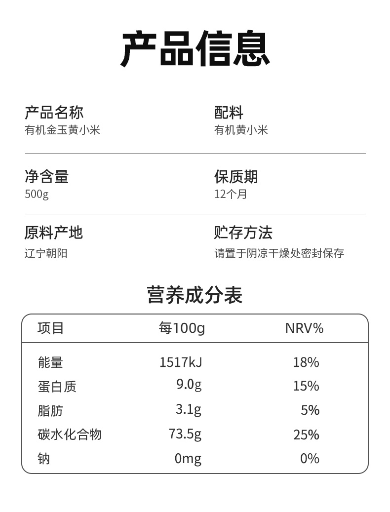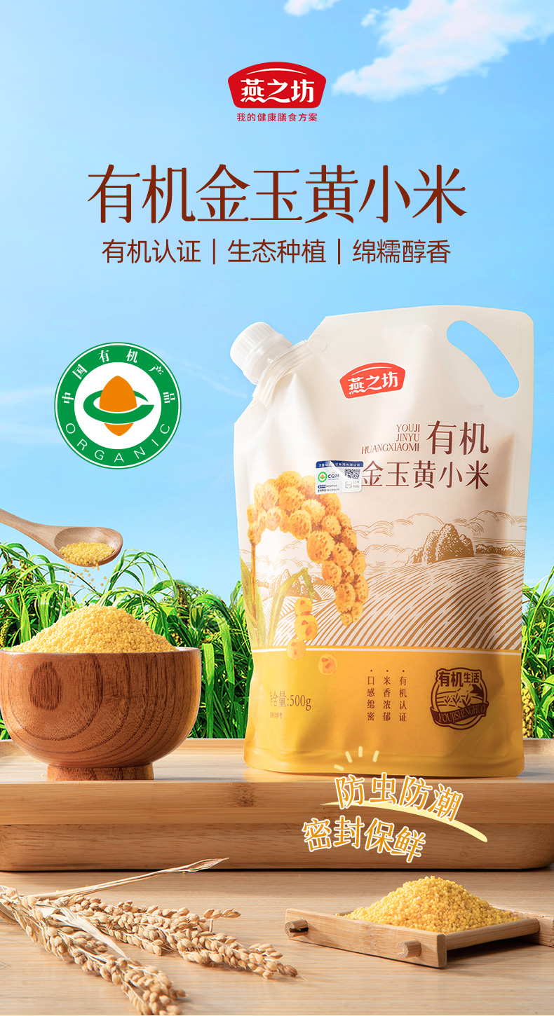 燕之坊 有机金玉黄小米 500g 东北辽宁黄金产地易煮 商超甄选
