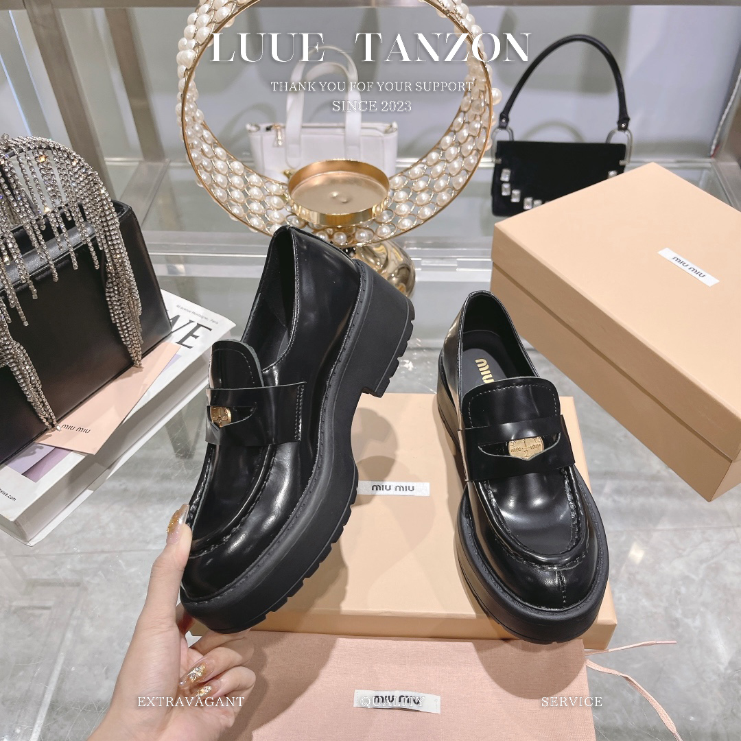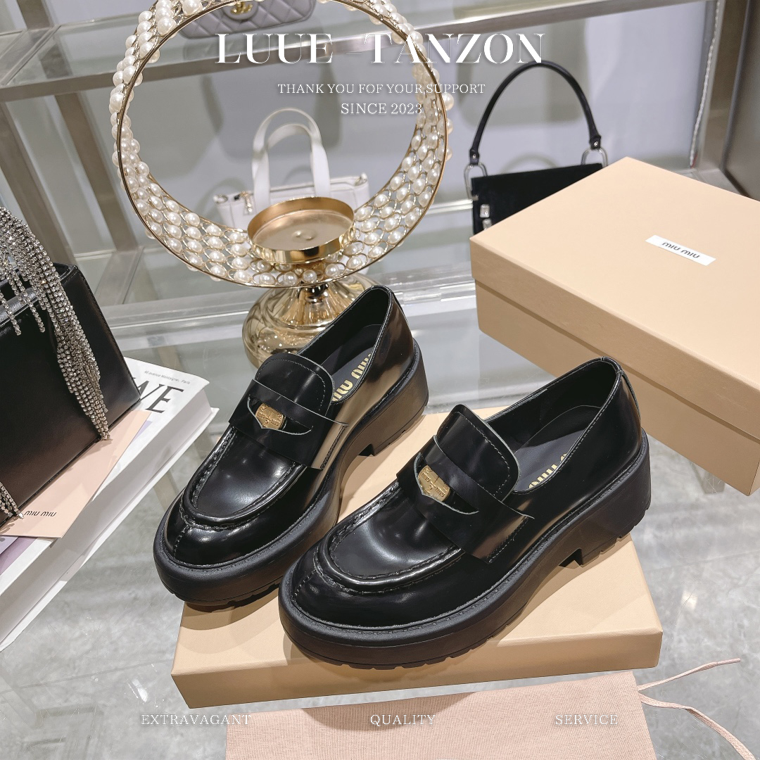 MiuMiu 2023ss 新款?新款 复古厚底钱币乐福单鞋