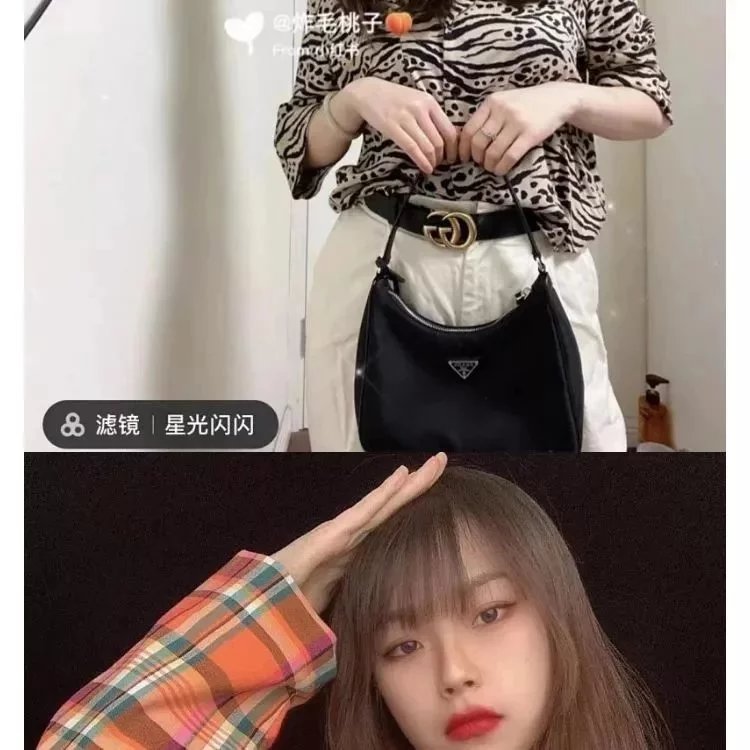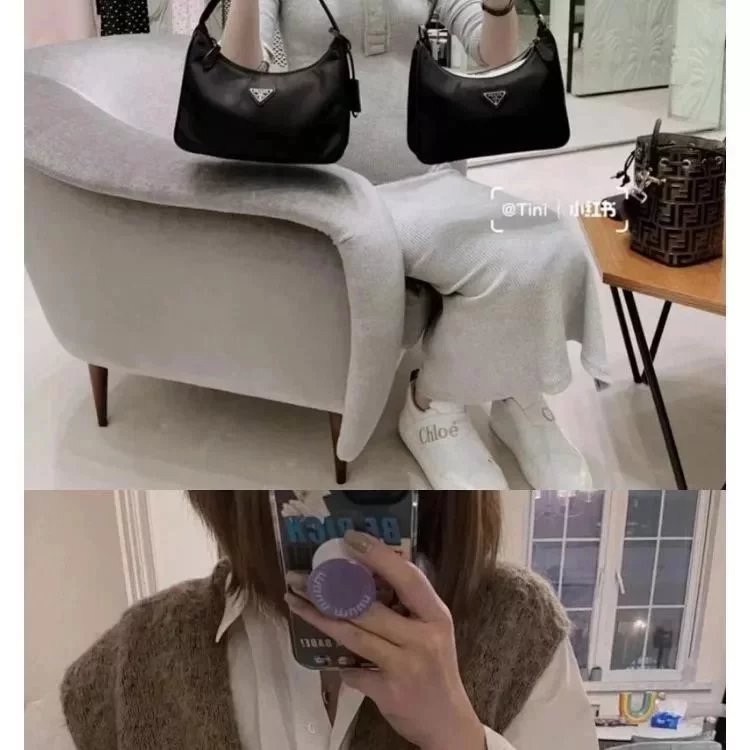 普拉D PRADA |Re-Edition 2000 尼龙手袋 黑色/豆沙 (CB)