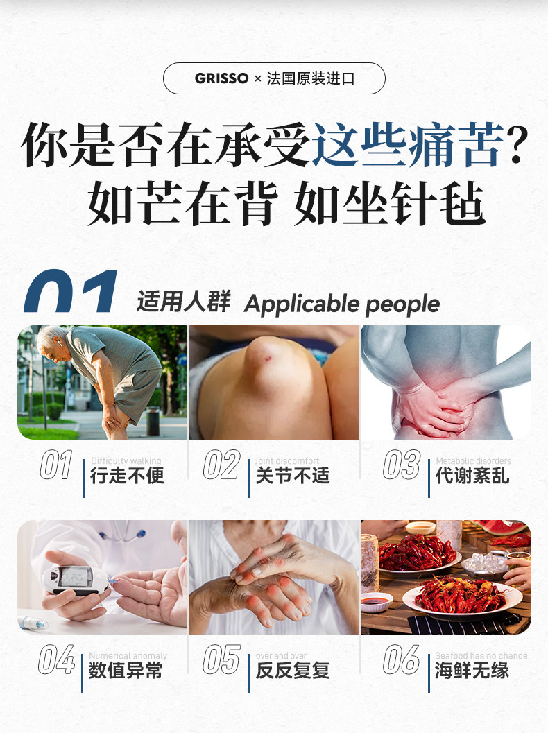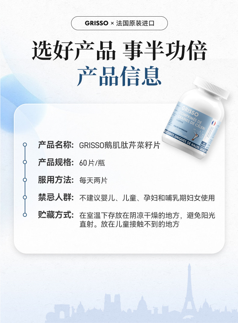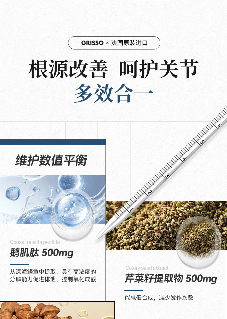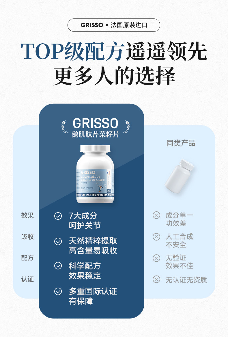 GRISSO鹅肌肽芹菜籽片红关肿节尿代酸谢关节轻松