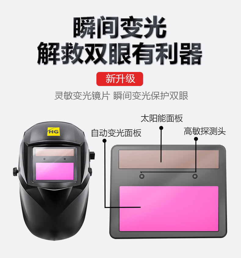 上海沪工自动变光面罩【HG1PRO 小钢盾入门款】氩弧焊太阳能电焊帽烧焊全脸防护面具焊接防护面罩