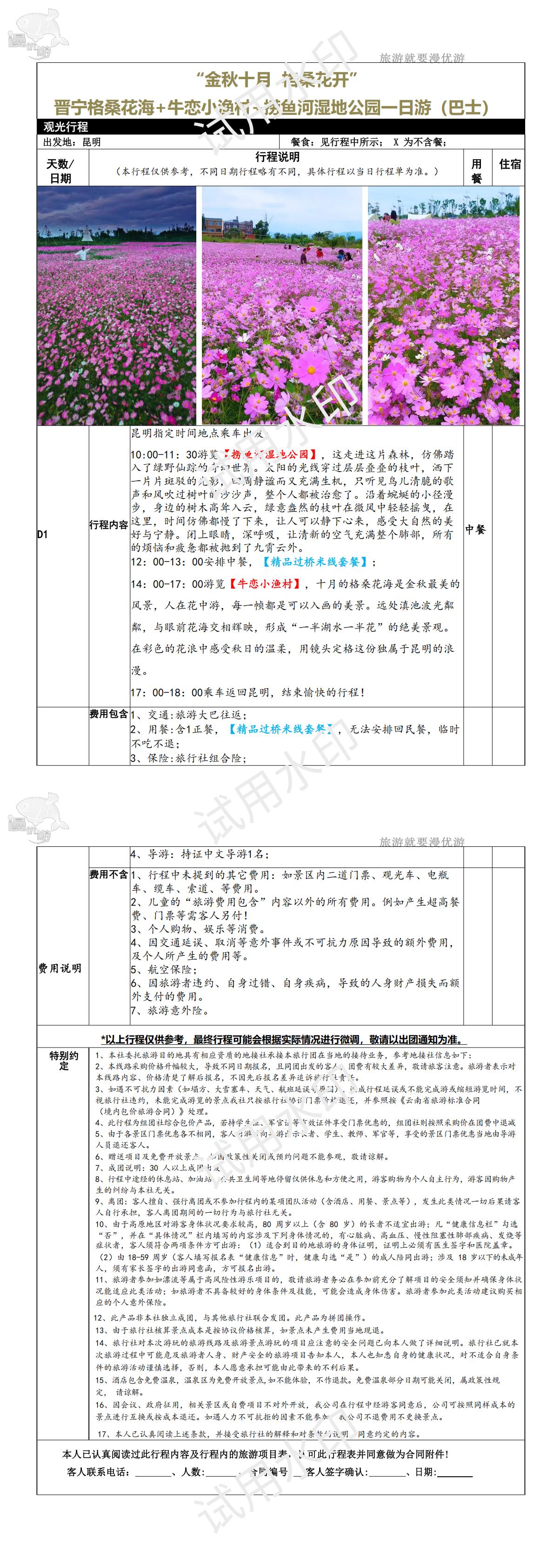 “金秋十月 格桑花开” 晋宁格桑花海+牛恋小渔村+捞鱼河湿地公园一日游(YX)