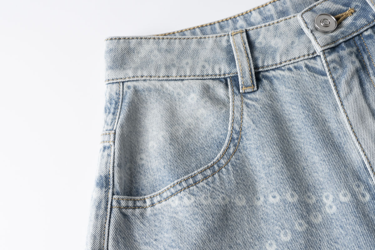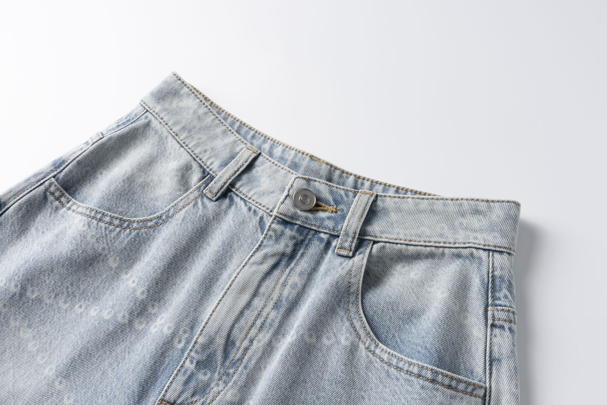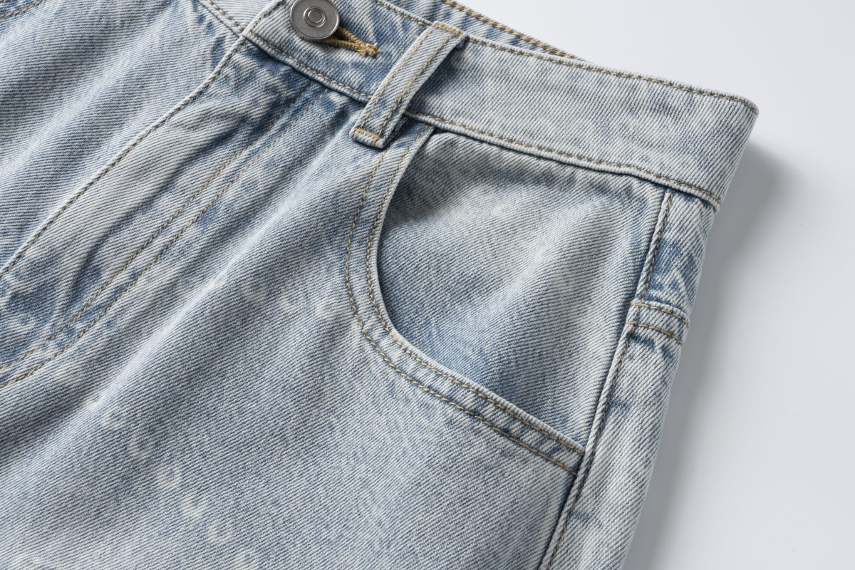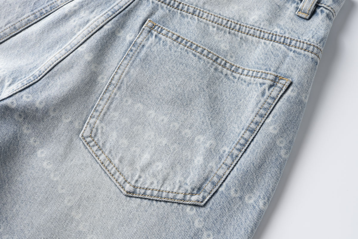 COCO ZONE 刘 一一 侧边弧形拼接做旧牛仔裤 CD1A1677