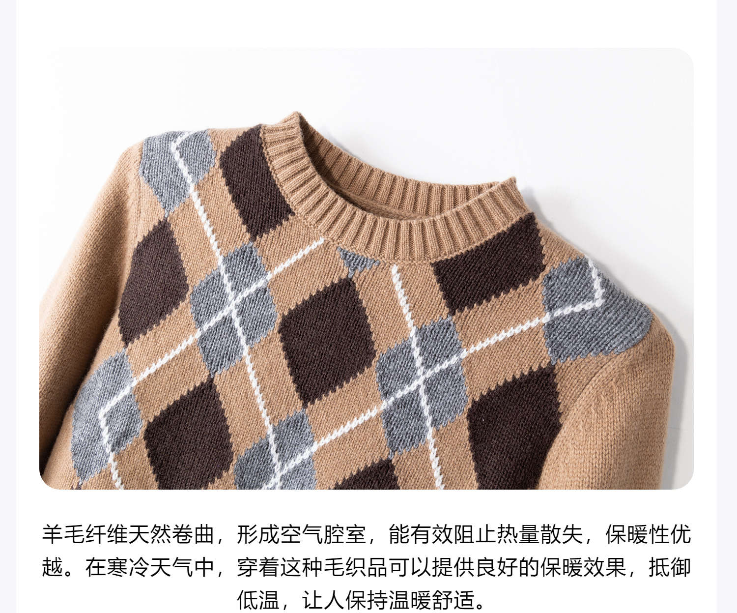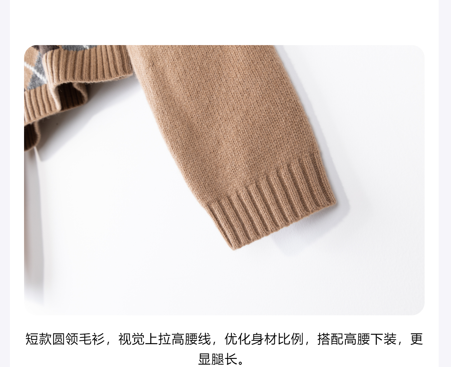 COCO ZONE 刘一一 “几何毛衣”100绵羊毛菱形拼接羊毛衫CD1A1442