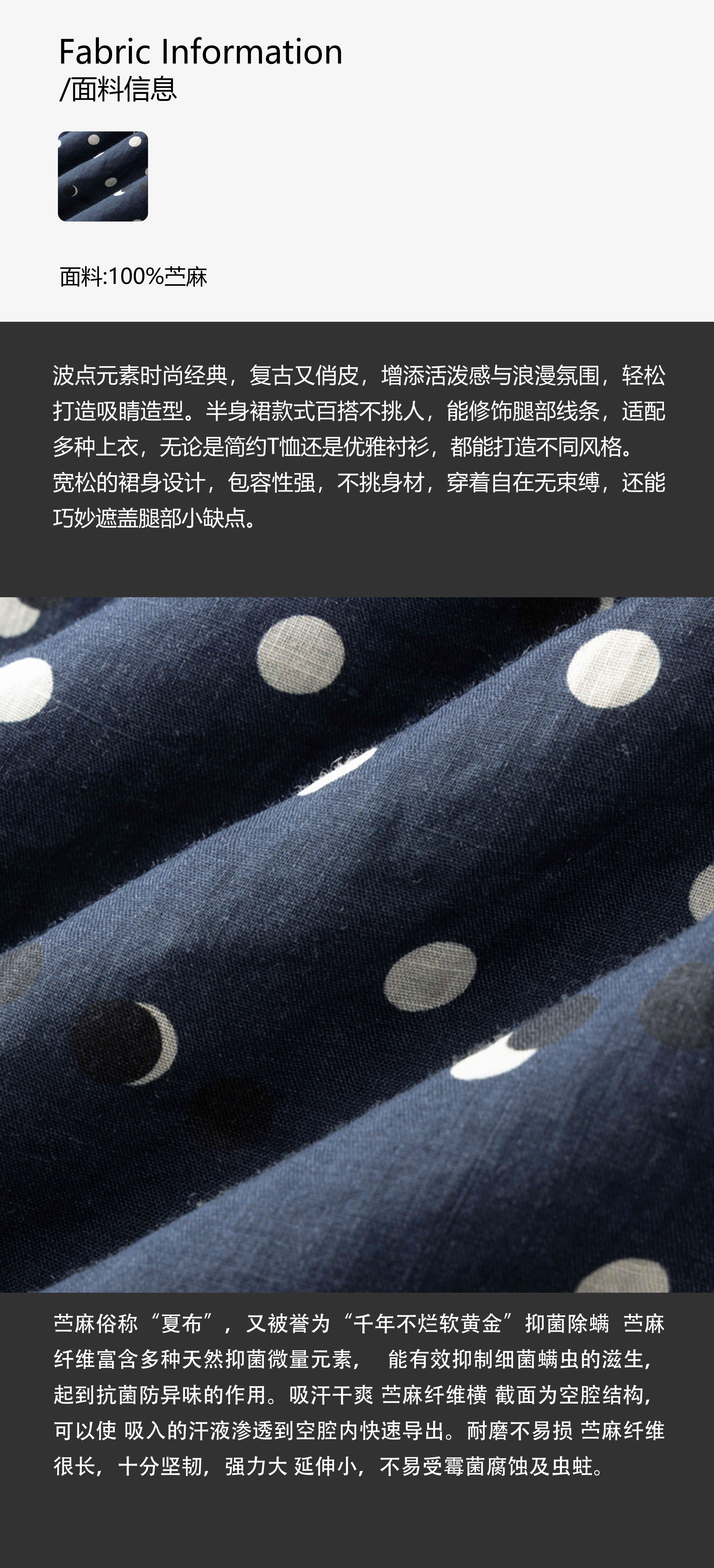 COCO ZONE 刘一一【100苎麻】波点遮肉简约松紧半身裙CD1A0684
