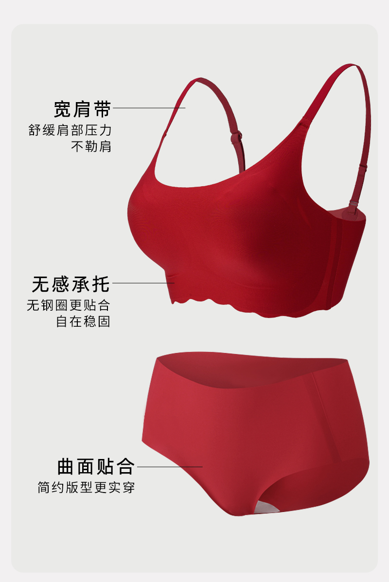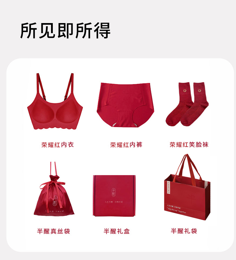 半醒本命年内衣礼盒4件套荣耀红限定吊带文胸无痕内裤羊毛保暖袜循环收纳袋