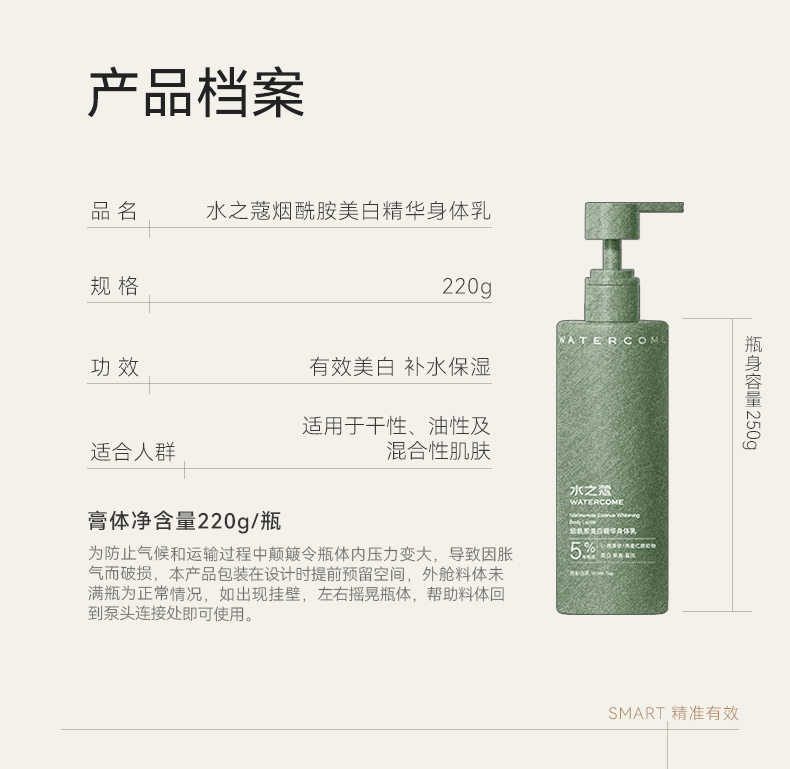【绮】水之蔻烟酰胺美白身体乳220g