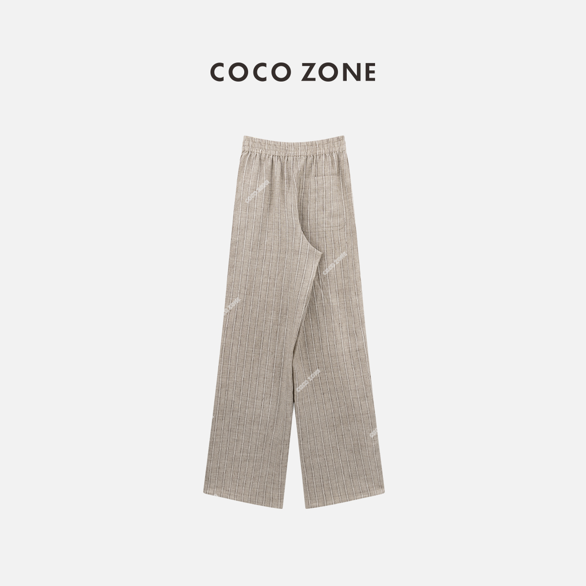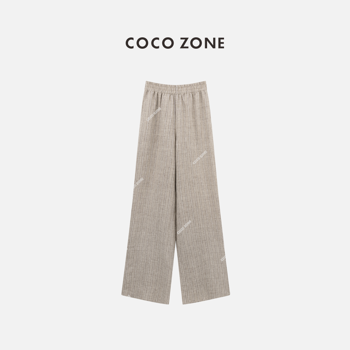 COCO ZONE2024新款女士条纹宽松休闲裤百搭复古直筒裤CC1B0652