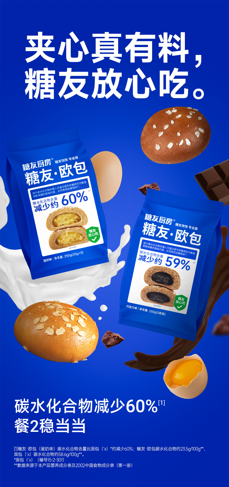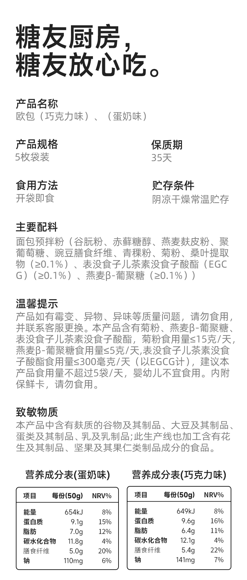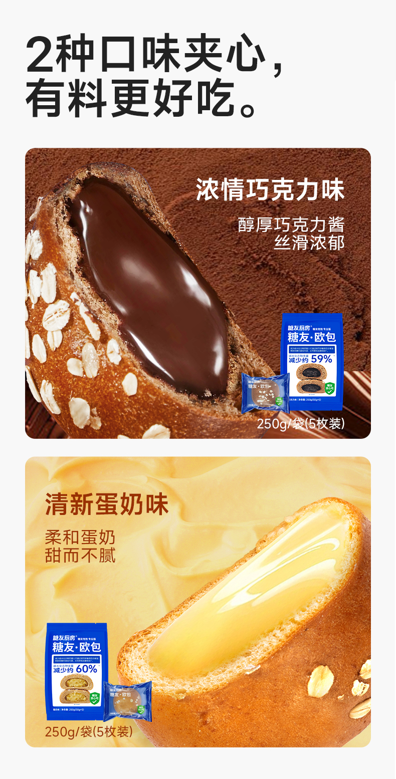 【9两健康】糖友厨房欧包蛋奶味巧克力味