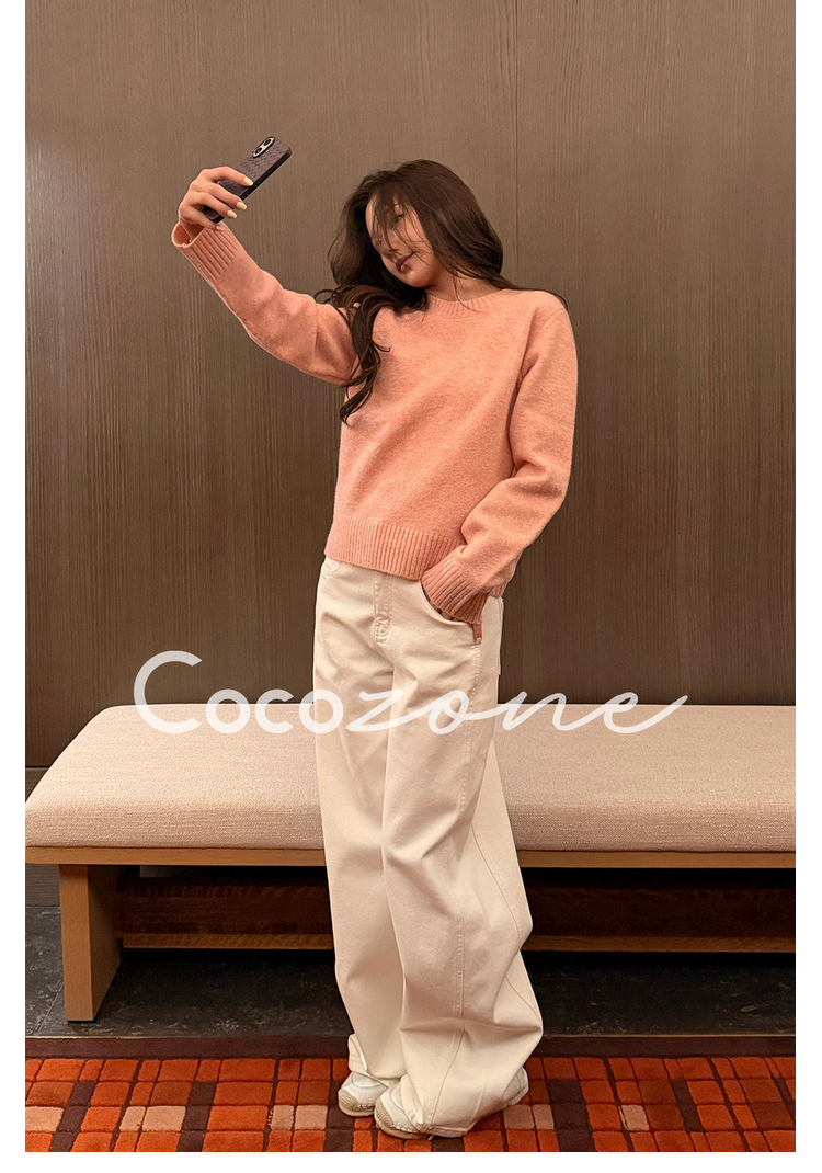 COCO ZONE 刘 一一 “撞色打底”绵羊毛混纺圆领长袖T恤 CD1A1765