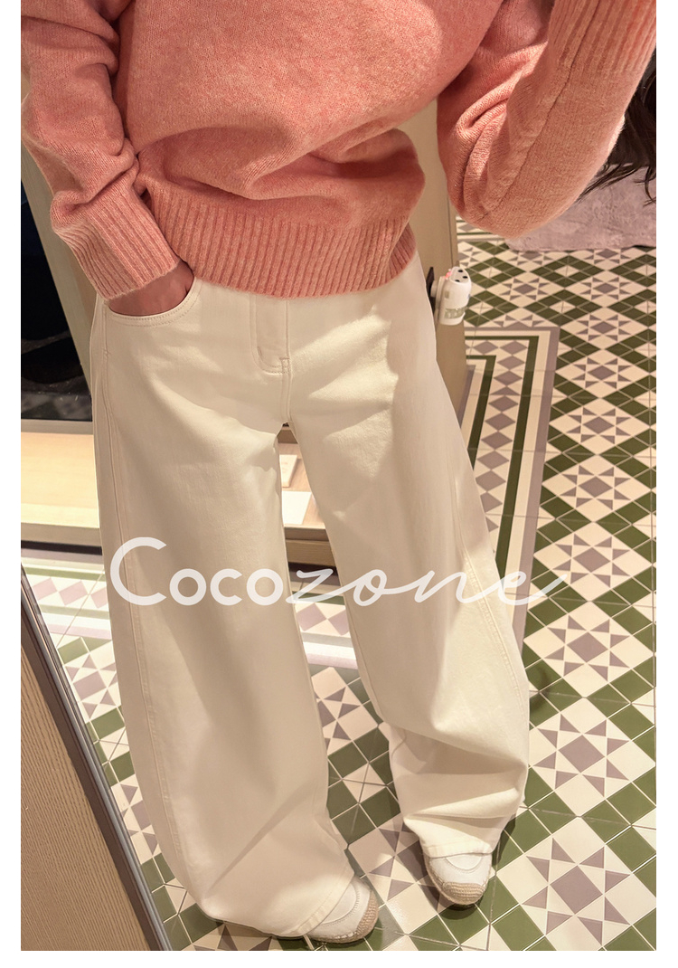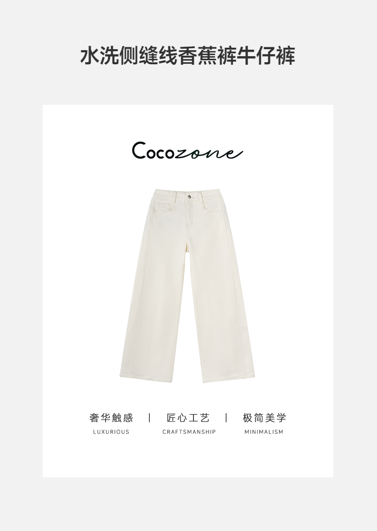 COCO ZONE 刘 一一 “暖白”水洗侧缝线香蕉裤牛仔裤 CD2A3065