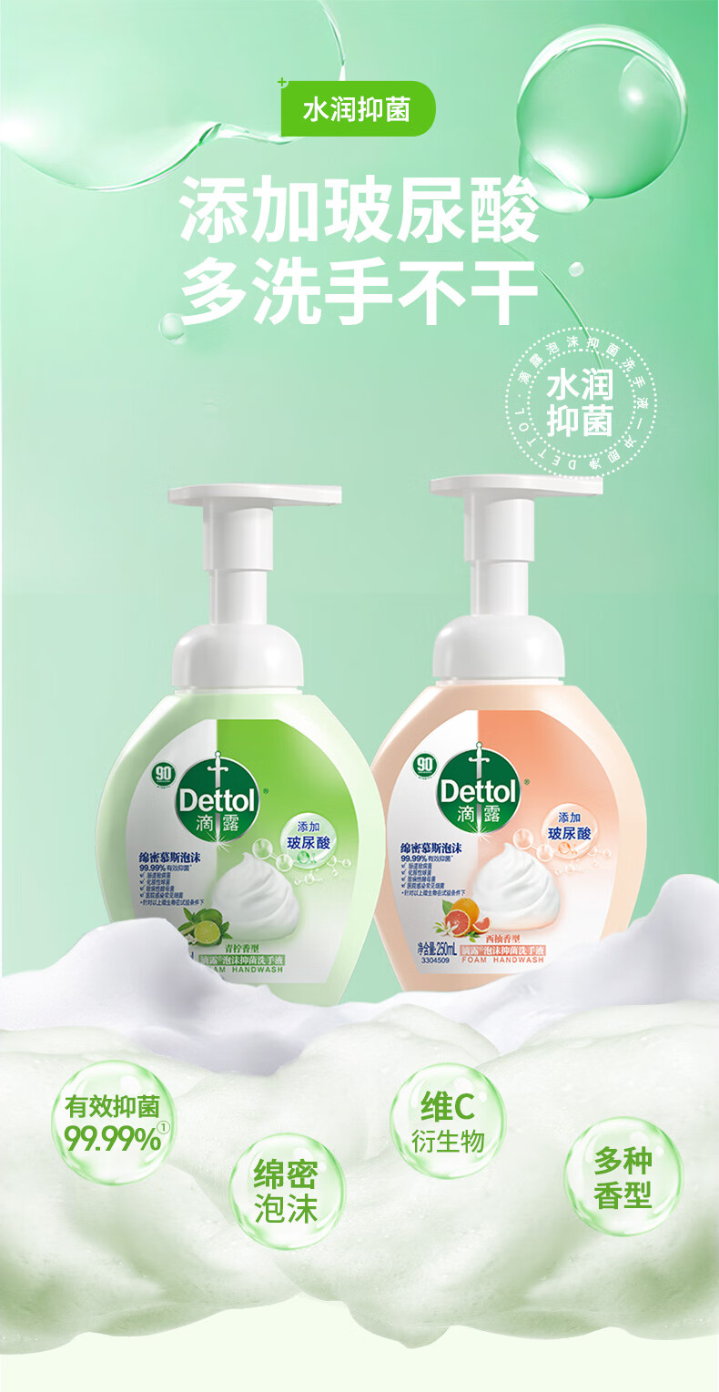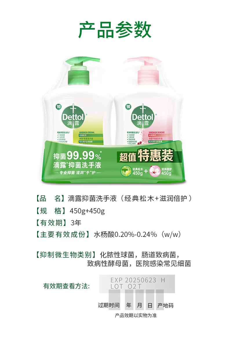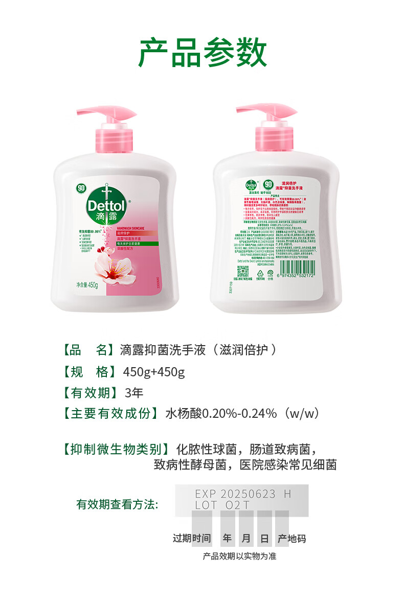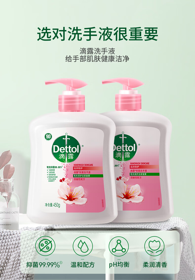 滴露洗手液滋润450g+松木450g*2