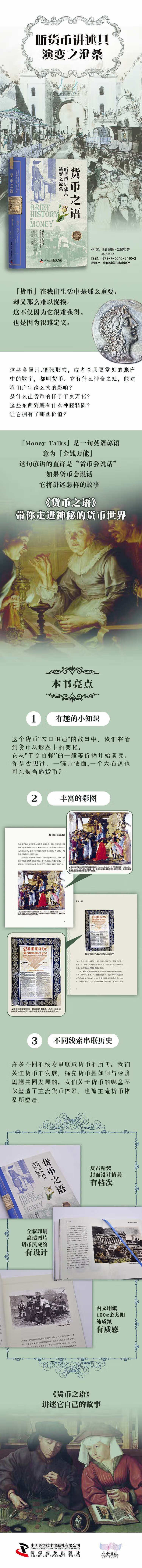 “Money talks”是一句英语谚语,意为“金钱万能”。 这句谚语的直译是“货币会说话”,不禁引人遐想,如果货币会说话,它将讲述怎样的故事。 那一定是一个饱含历史沧桑的故事,那里有它的演变、它出现在的和影响着的市场、它带来的债务与危机……段段往事如历史长廊上的石板,几经风雨,引人深思。 在这个货币“亲口讲述”的故事中,我们将看到货币从形态上的变化。它从“千奇百怪”的一般等价物开始演变。你是否想过,一碗方便面、一个大石盘也可以被当做货币? 当货币逐渐拥有了自己特别、漂亮的样子后,它不单是一种交易手段,还成了一种宣传工具。这样的货币,也间接记载了数个王朝的兴衰。 当货币逐渐带来了银行和更成熟的商业模式时,它的演变逐渐串起了商业史。 当货币的价值被越来越多的人追捧和炒作时,狂热与荒唐开始出现。 货币的演变让其从没有统一形态的一般等价物变为实体法定货币,Z终又将演变为无形。在未来,没有实体货币的日子又会是什么样子? 在这个故事中,货币还没有讲到的,便是留给我们畅想的空间。