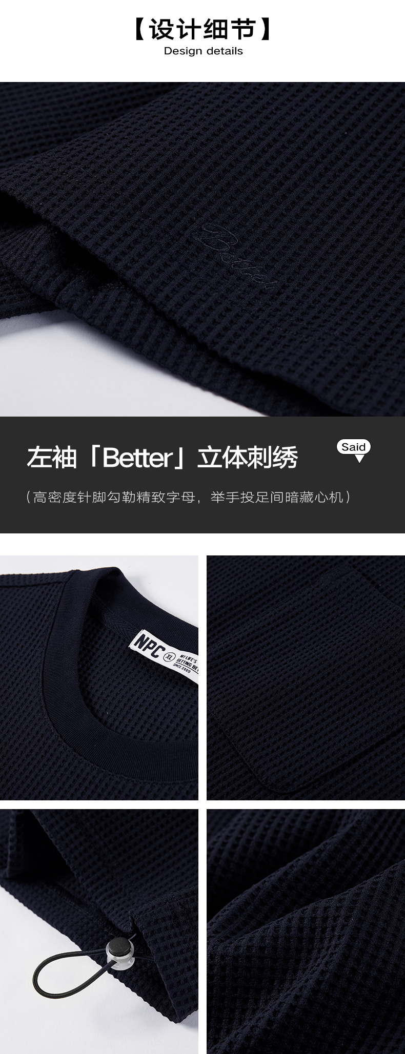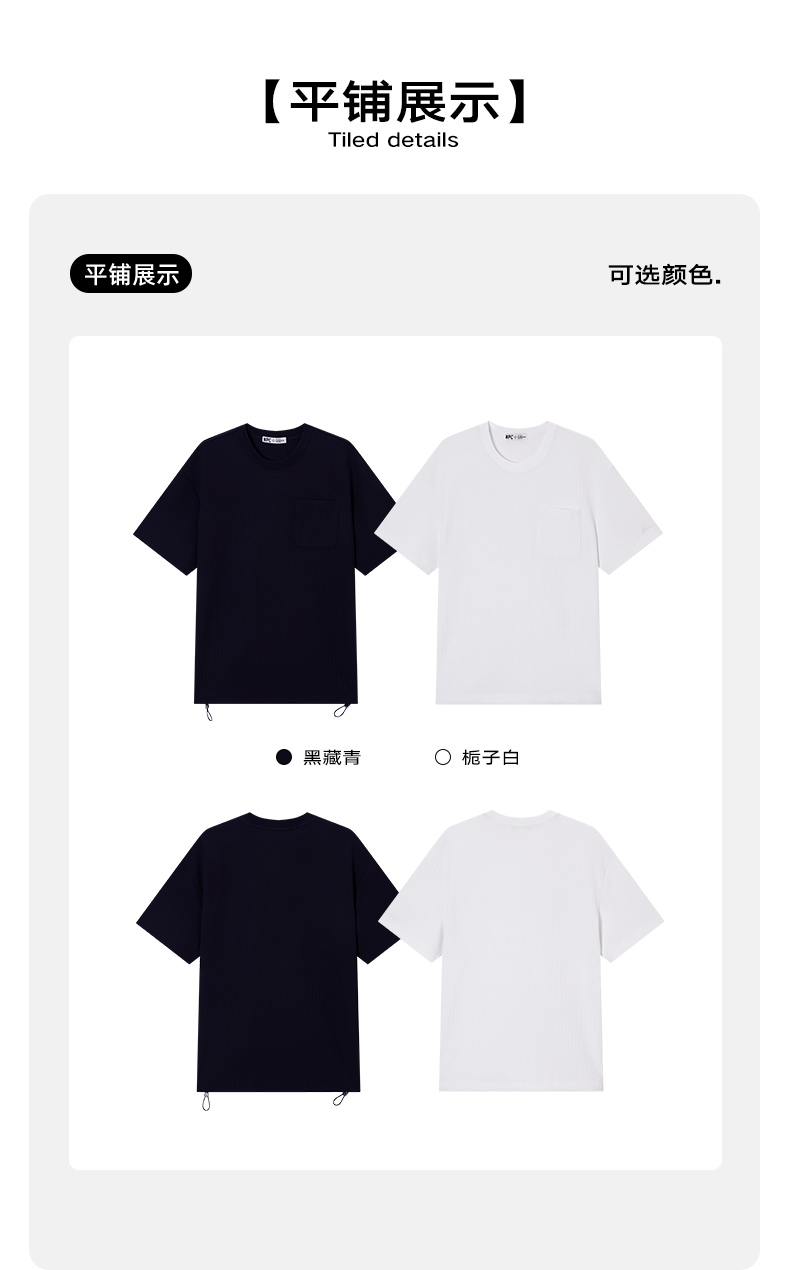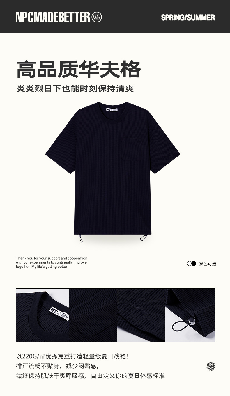 NPC潮牌小字母刺绣华夫格口袋短袖T恤男挺括抽绳可调节NP55TE68