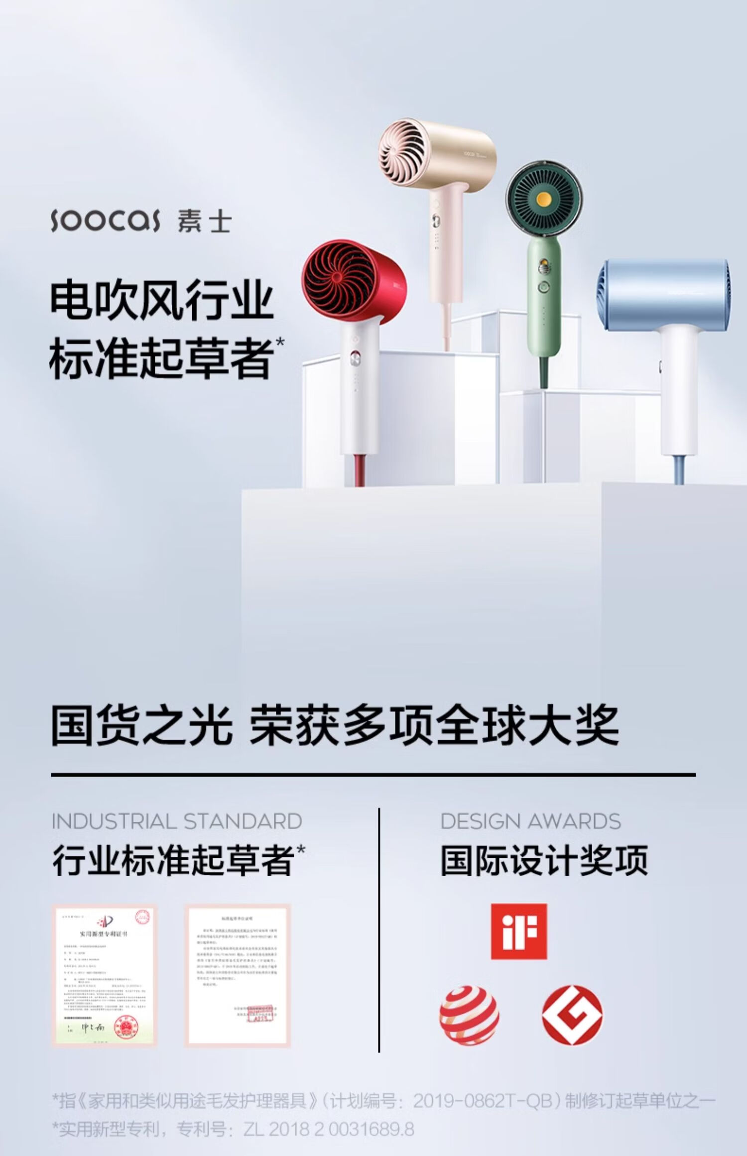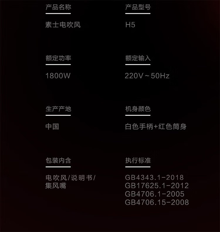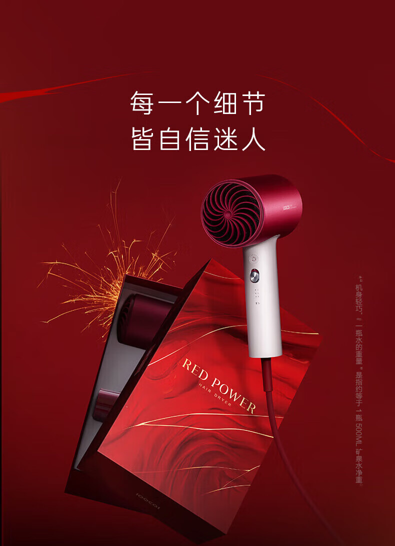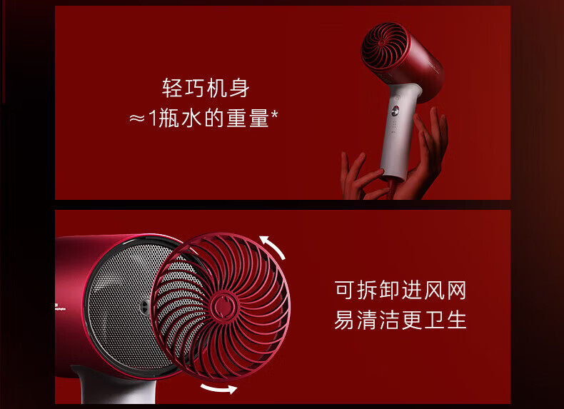 素士负离子速干电吹风 H5 女神红