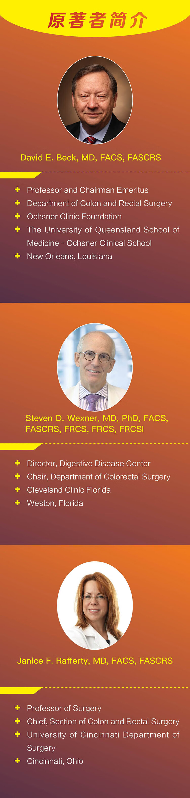 本书的亮点在于更新了直肠肛门生理学的研究进展和新型检查方式的应用,如 MRI、CT 血管造影和肠造影。加速康复外科理念使围术期管理发生了巨大变革。新增加的章节重点强调了肛肠外科向门诊化管理的转变,吻合器痔切除术的局限性和痔的新型治疗方式亦有所提及。括约肌间型肛瘘结扎术(ligation of intersphincteric fistula tract,LIFT)等新型手术方式被纳入肛瘘的章节。在本版中还更新了性传播疾病和 HIV 的药物治疗,以及有关大便失禁的*新治疗经验总结,包括人工括约肌、高压氧治疗、射频组织重塑和骶神经调节术。