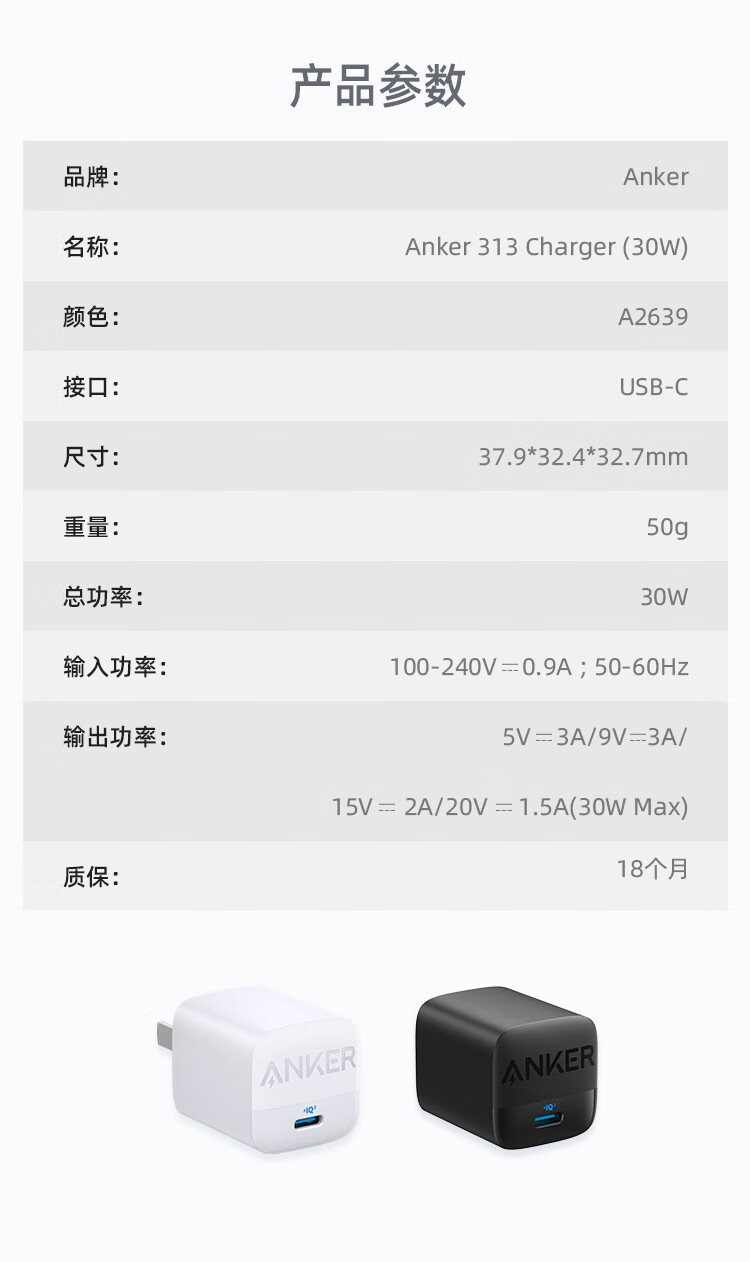 Anker 313 Charger(30W)白 A2639P21