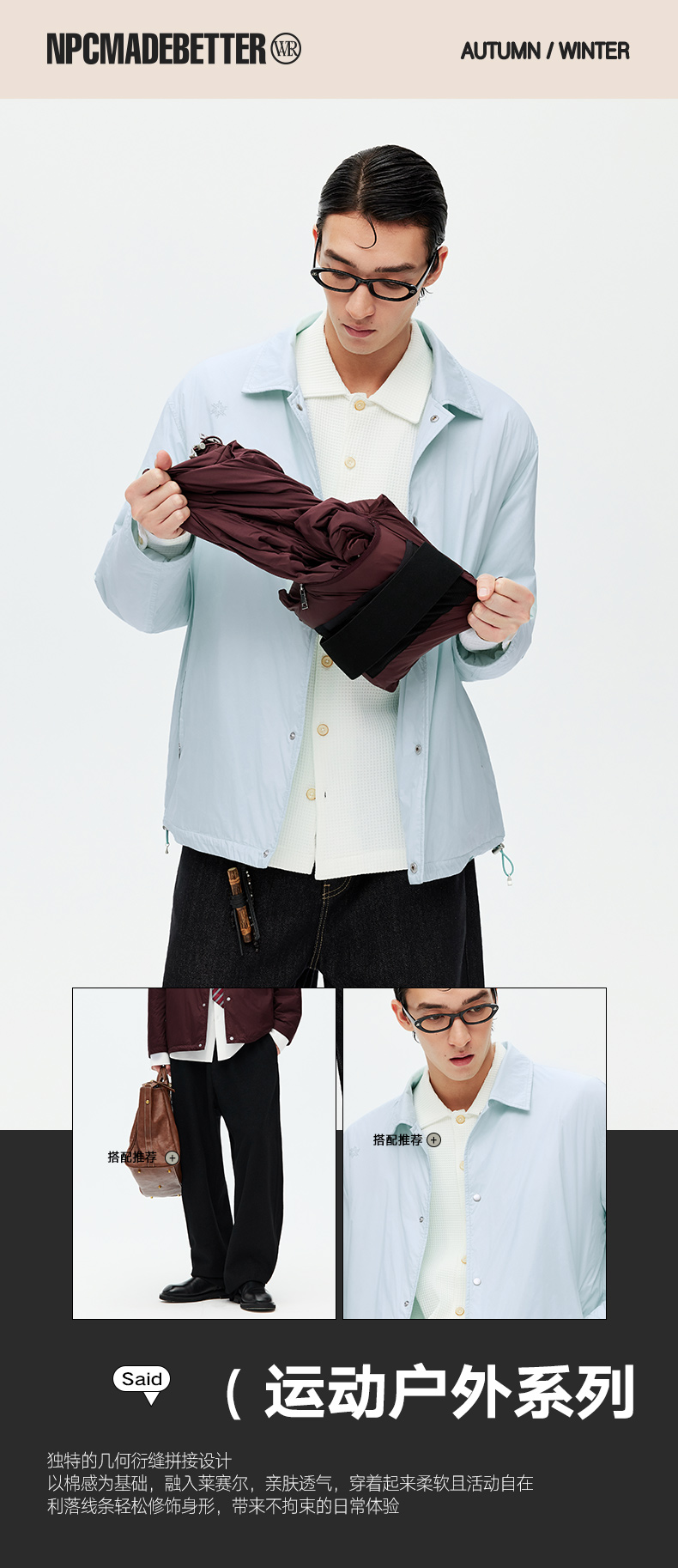 NPC潮牌翻领外套【发热棉】保暖夹克户外休闲轻便男款NP58PJ48