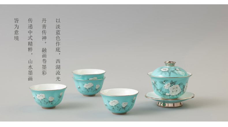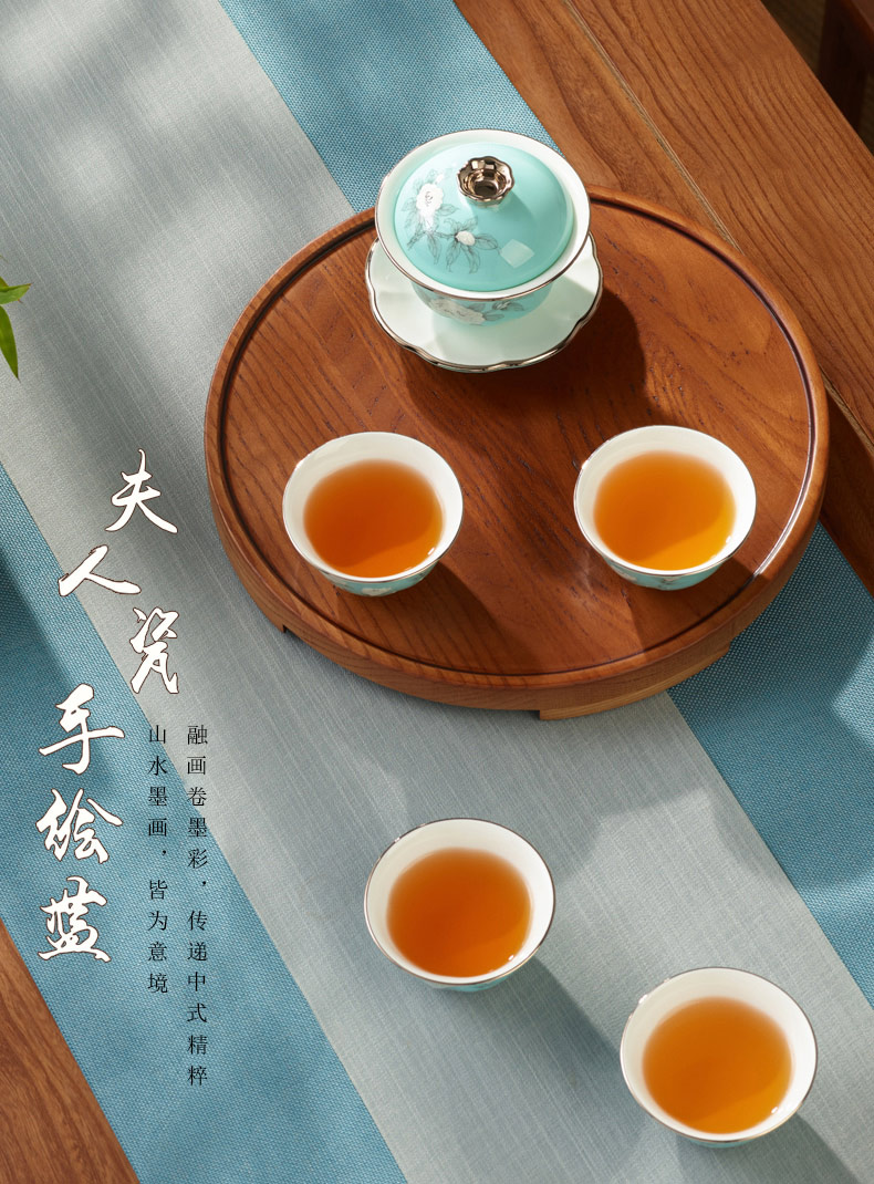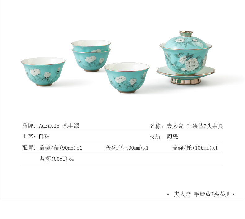 【6F】国瓷永丰源 手绘蓝7头茶具