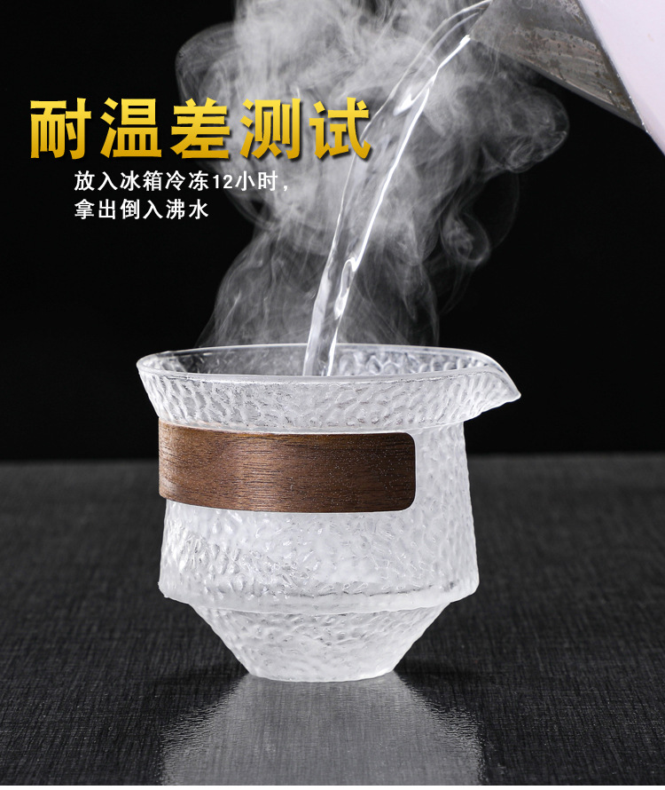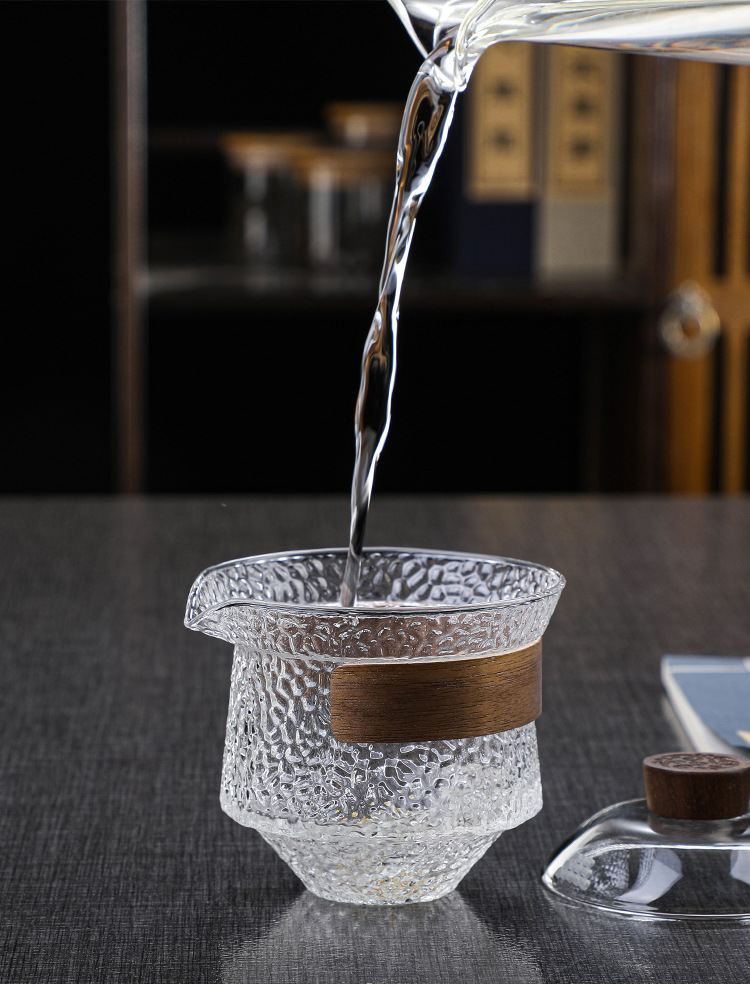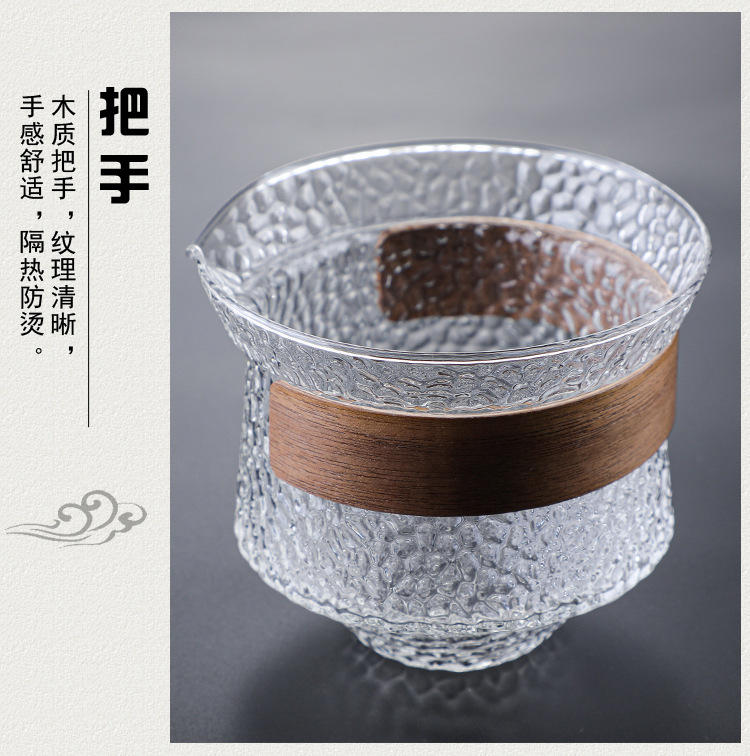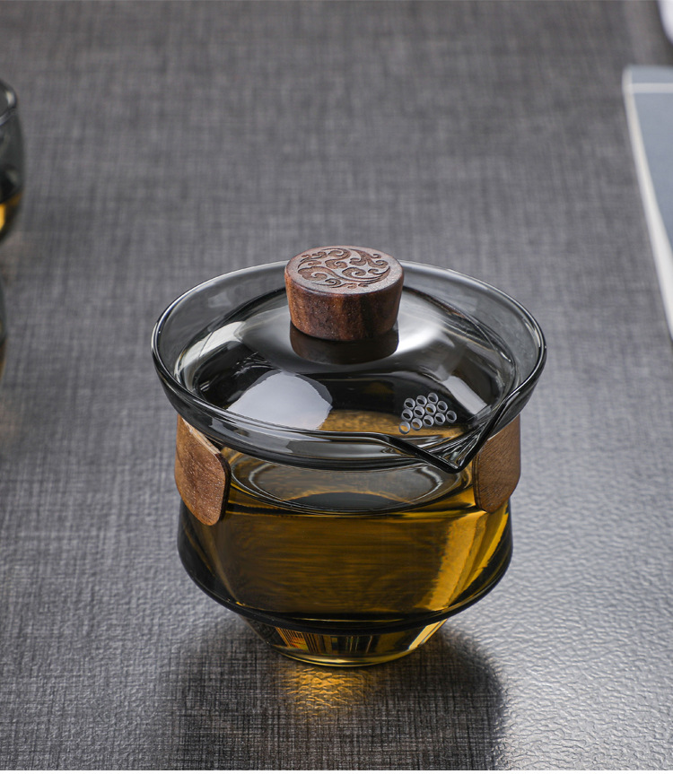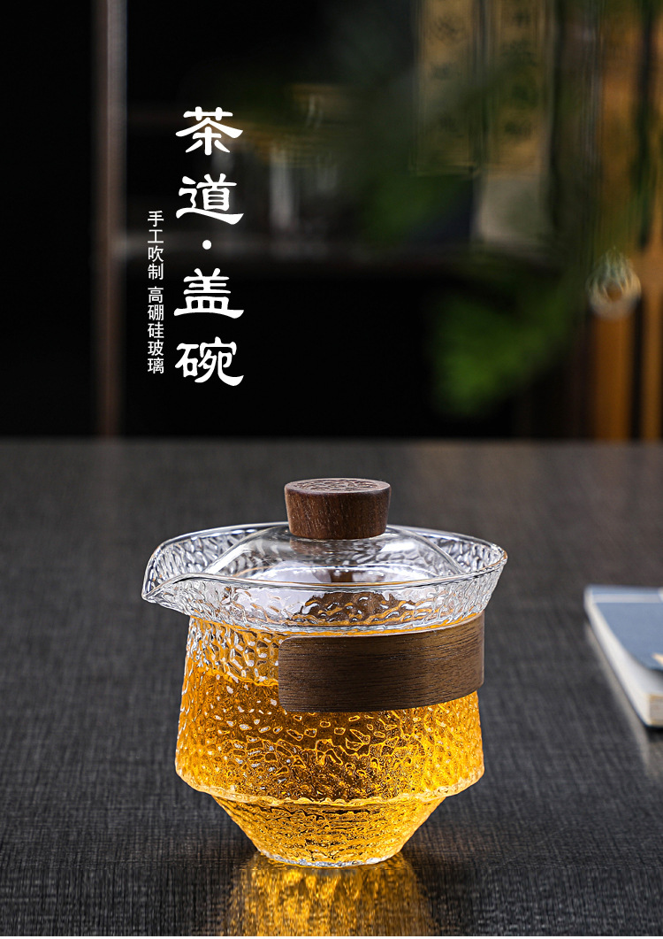 益思泉丨暮雨 锤纹盖碗 高硼硅玻璃 茶具 约230ml 胡桃木 透明/烟灰