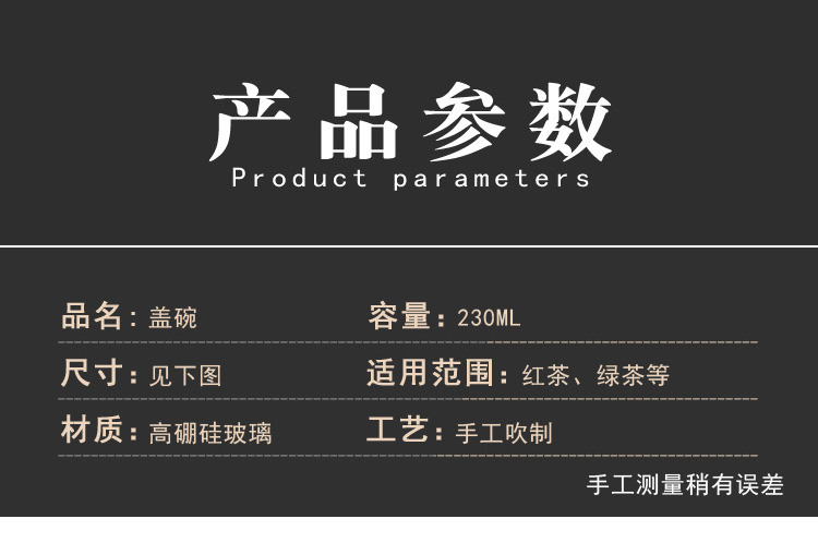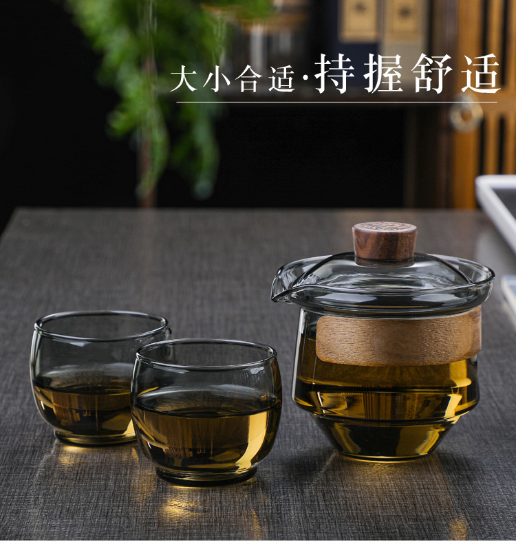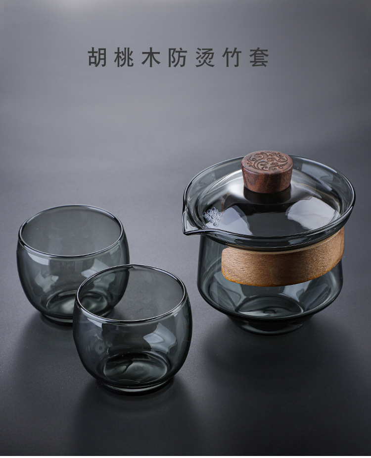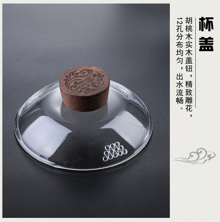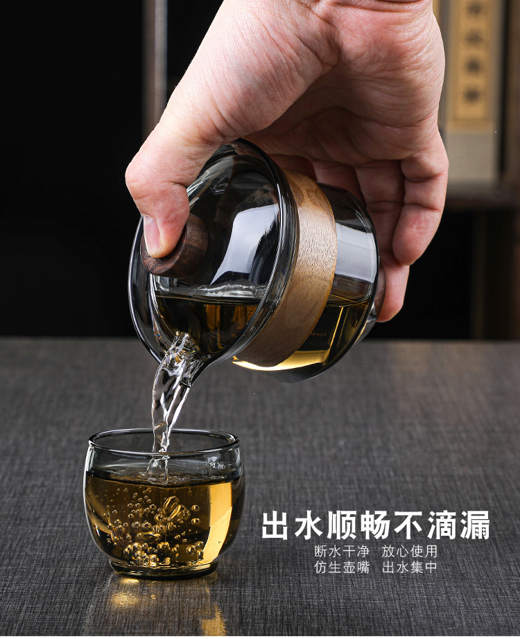 益思泉丨暮雨 锤纹盖碗 高硼硅玻璃 茶具 约230ml 胡桃木 透明/烟灰