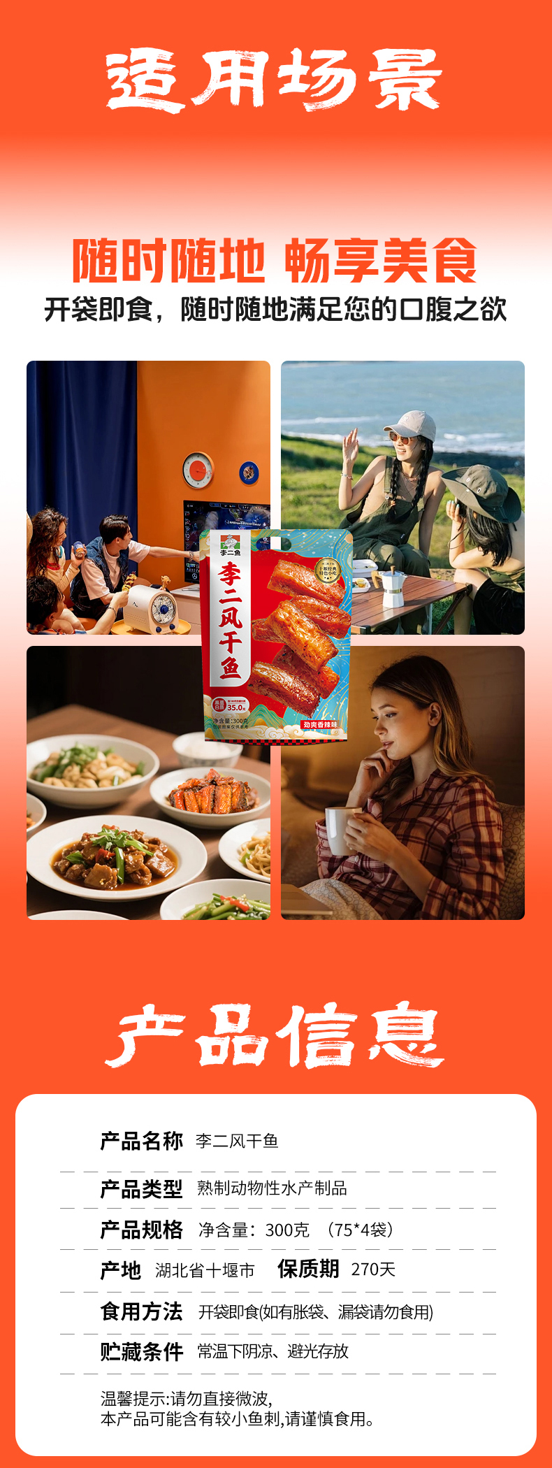【休闲零食】李二风干鱼劲爽香辣味 300g/袋