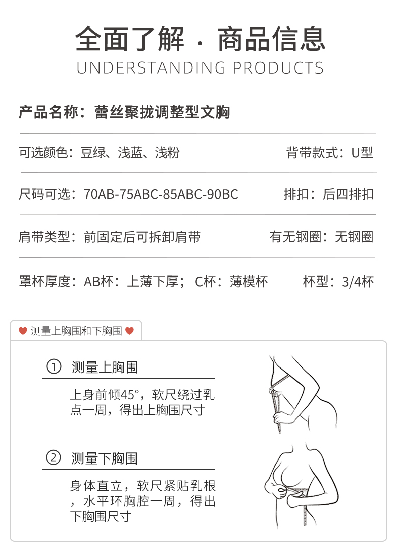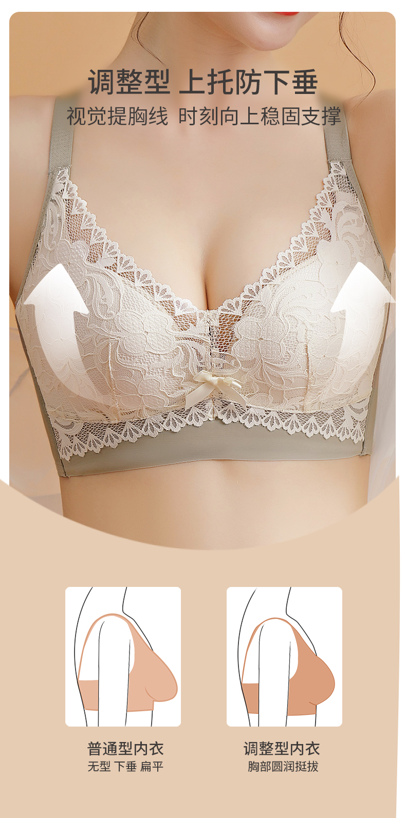雅黛丽内衣女小胸聚拢显大文胸无钢圈收副乳防下垂调整型美背文胸